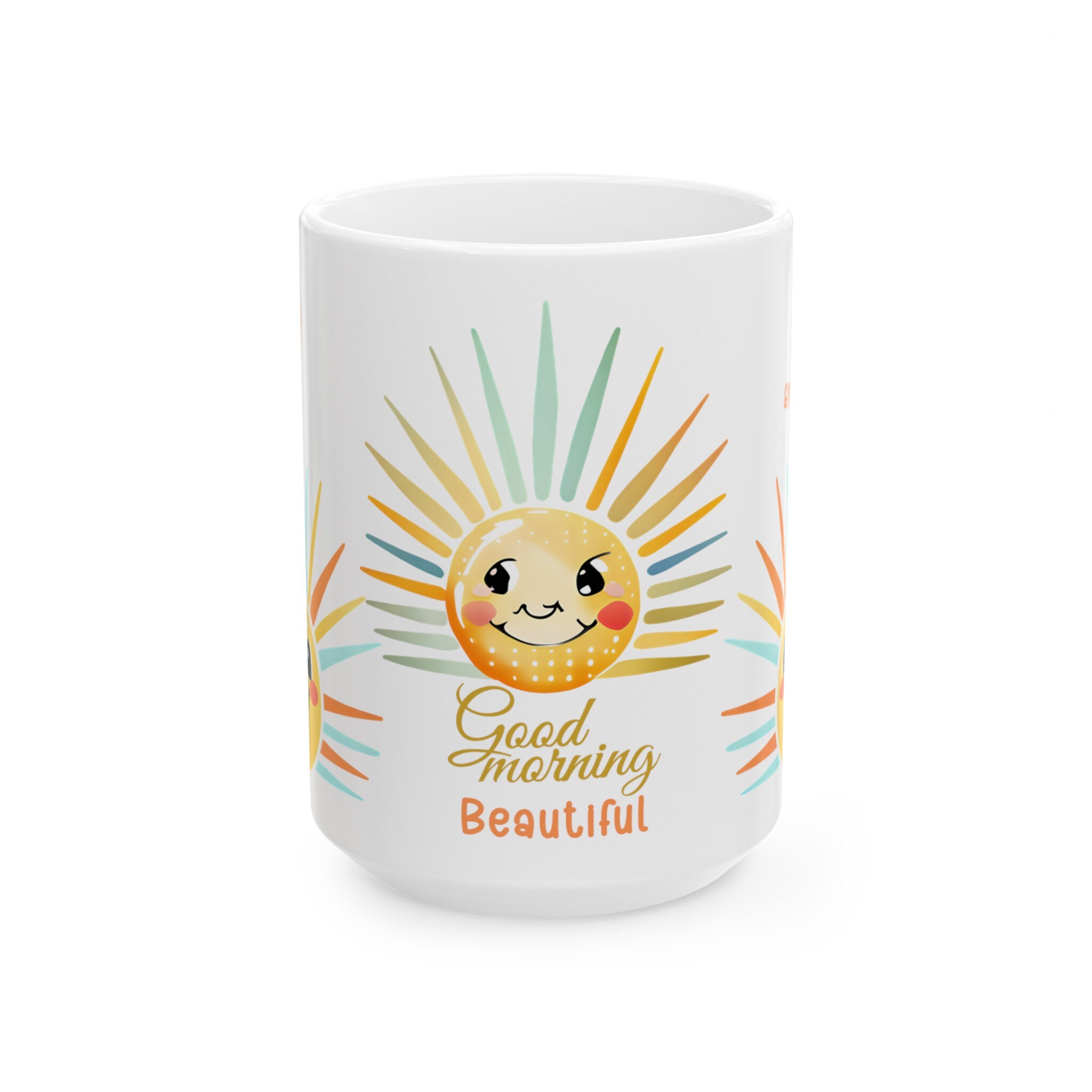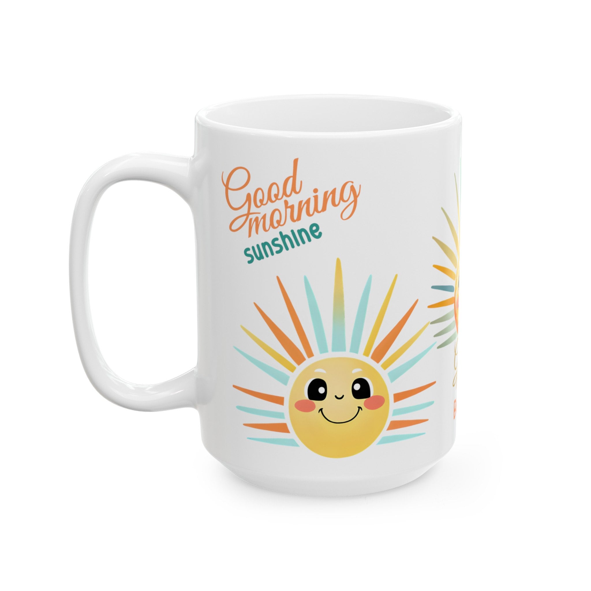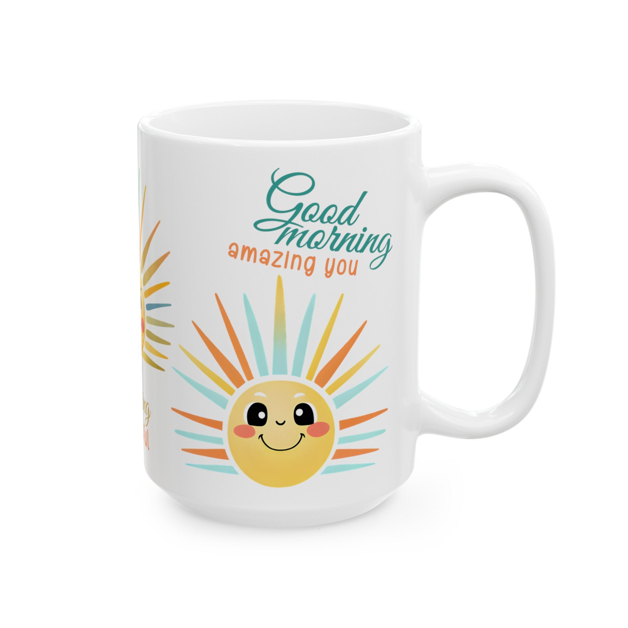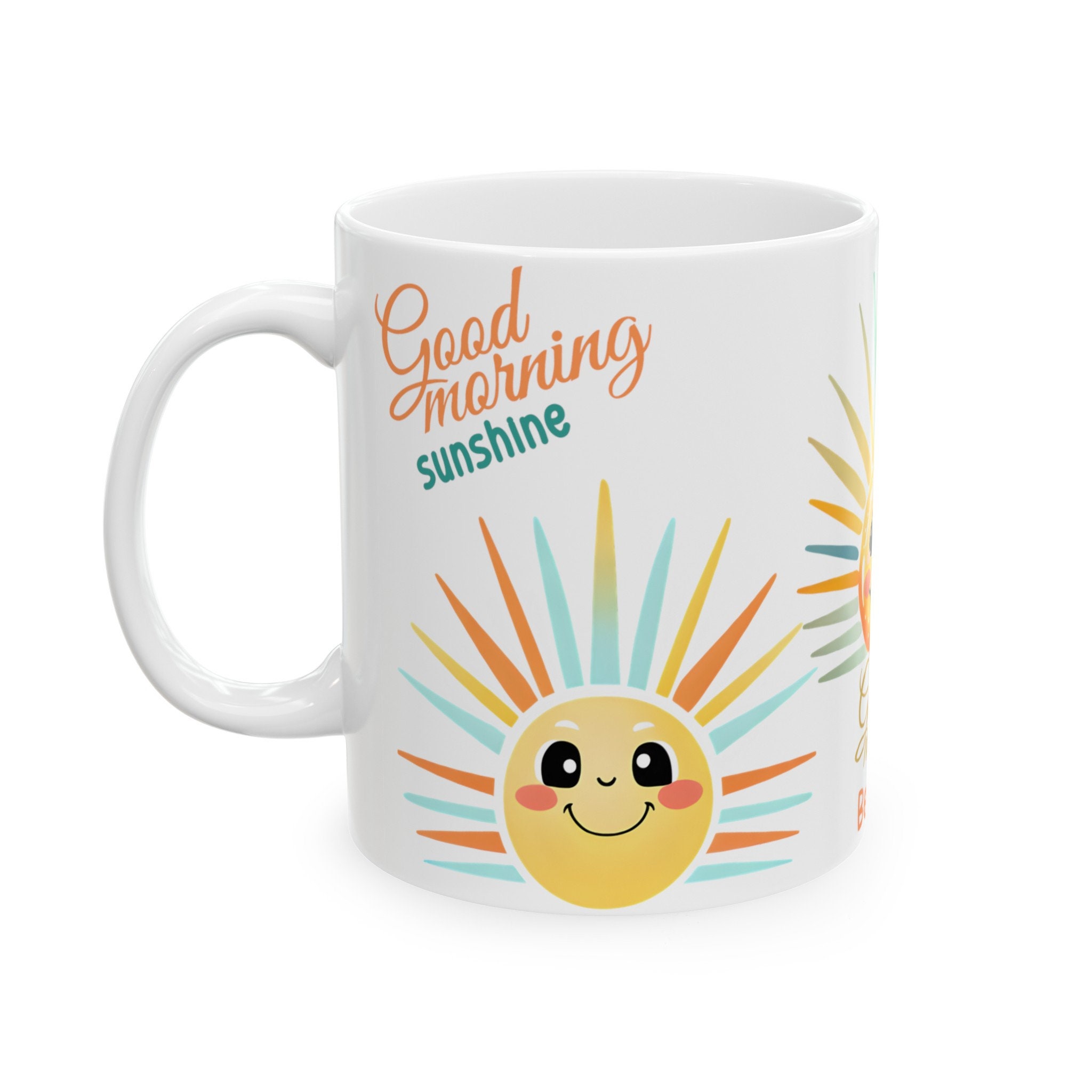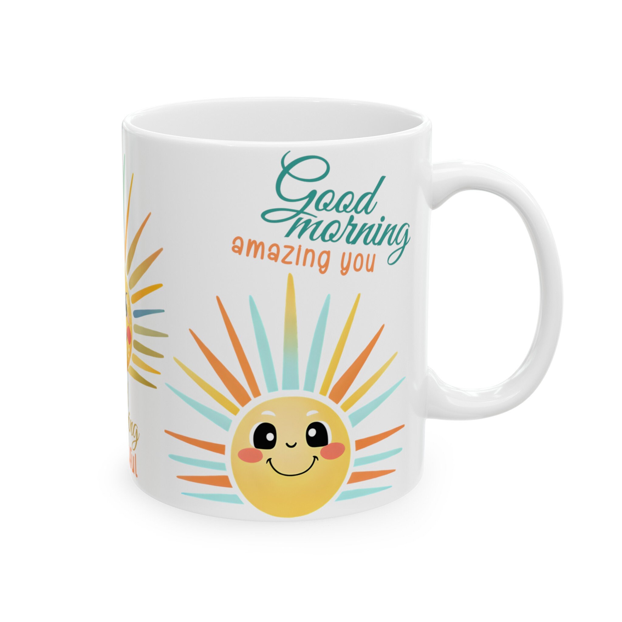 βοΈ This vibrant sunray design exudes happiness and is accompanied by the inspiring quotes "Good Morning Sunshine," "Good Morning Beautiful," and "Good Morning Amazing You." Imagine sipping your coffee or tea from this mug as you start your day with a smile.