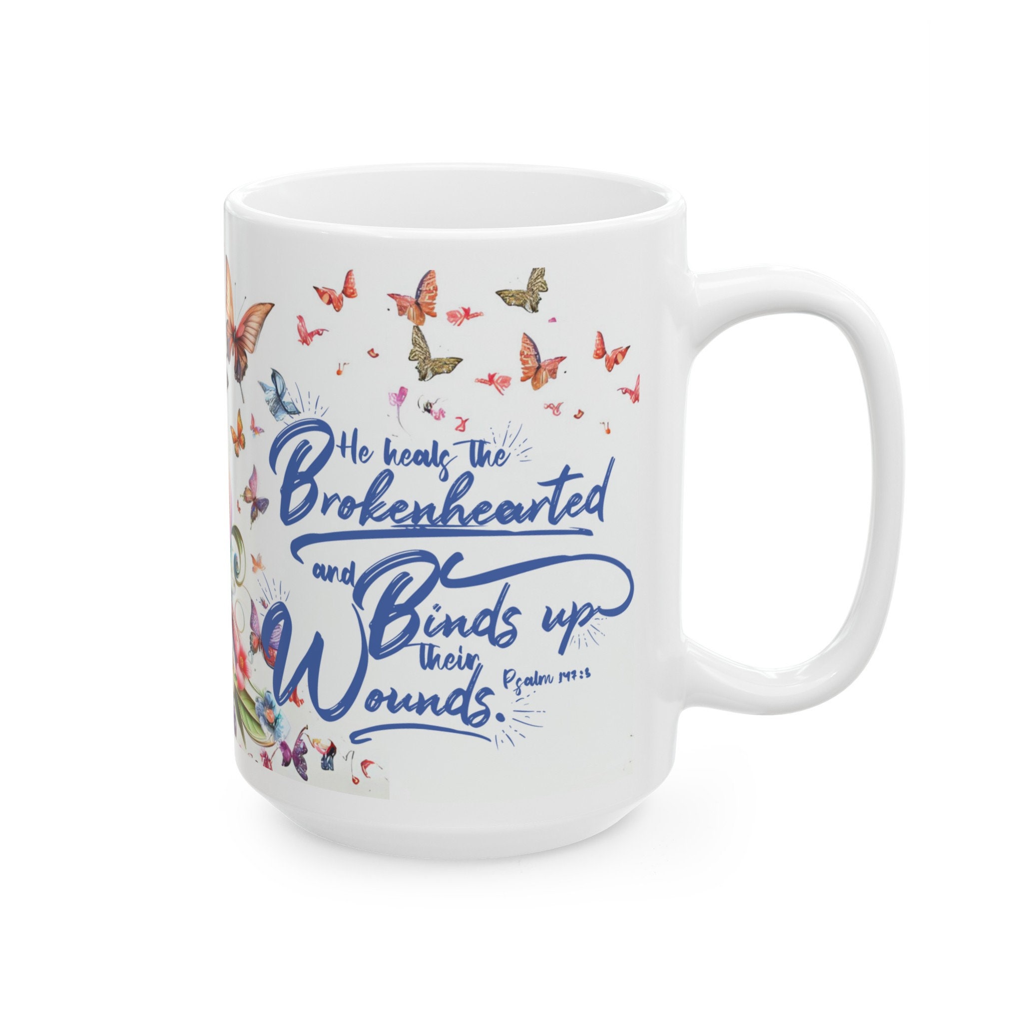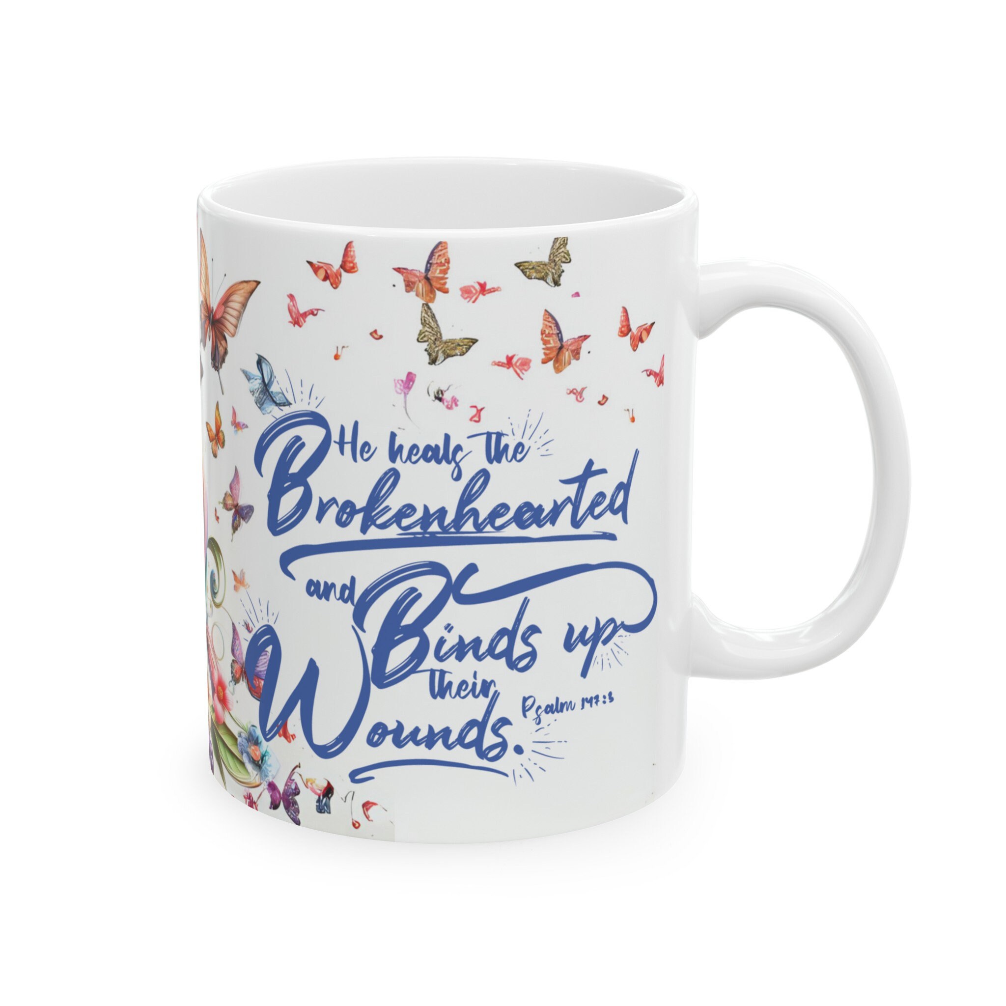 β¨ Our "He Heals The Brokenhearted and Binds Up Their Wounds" Mug is a thoughtful gift for those in need of encouragement or a serene addition to your daily routine. Let the scripture serve as a gentle reminder of healing and restoration.