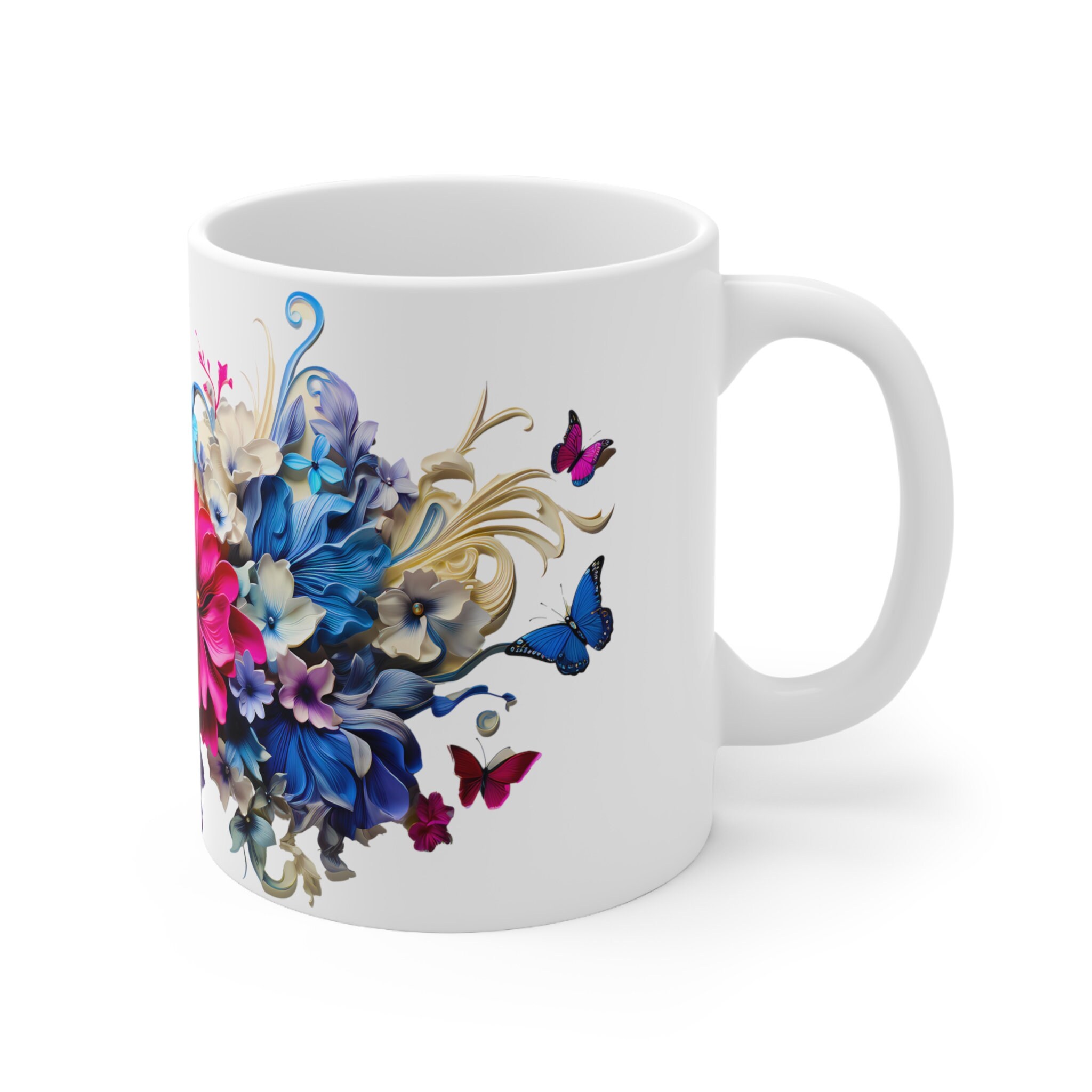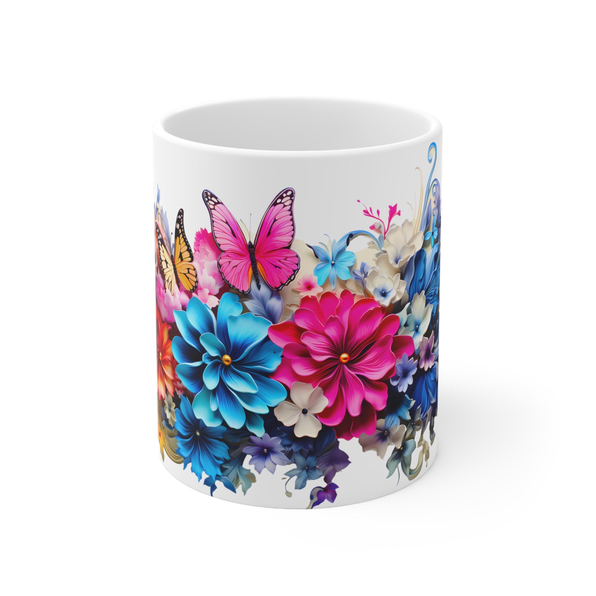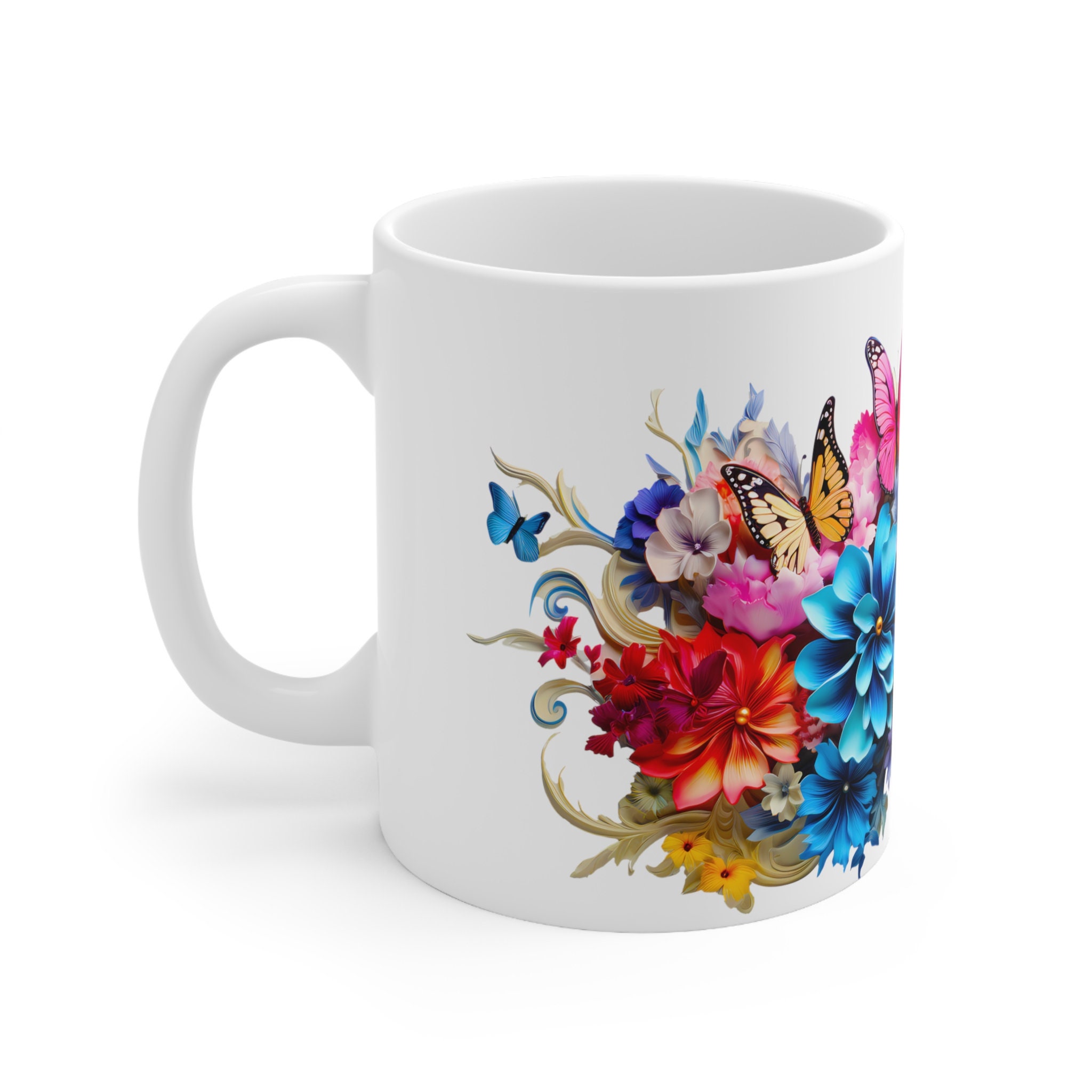 Escape into a world of natural beauty with our Artistic Butterflies and Flowers Mug, an 11-ounce or 15-ounce ceramic masterpiece. Delicate wings gracefully dance amidst a garden of vibrant blooms, turning each sip into a delightful celebration of nature's elegance and serenity.