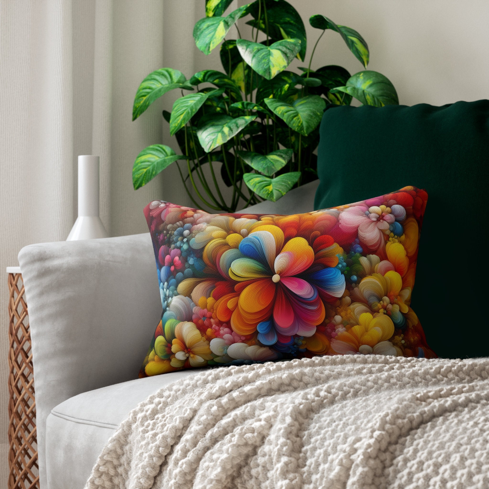 Bring a burst of color and style into your home with our Abstract Colorful Lumbar Pillow. Shop now and transform your space with this exceptional blend of art and comfort.