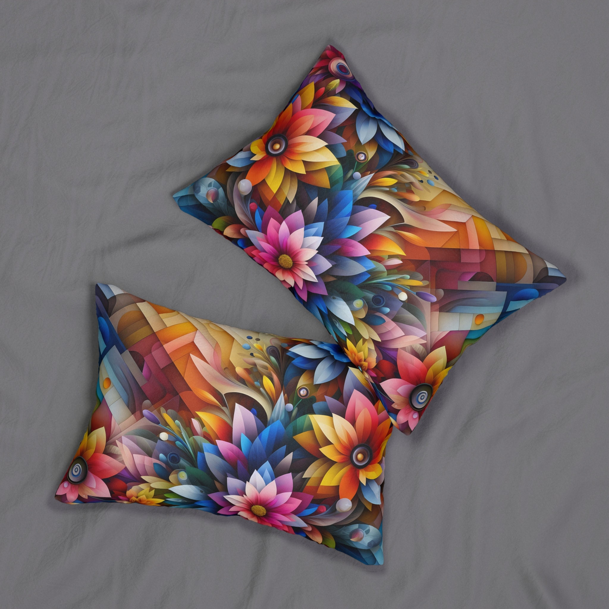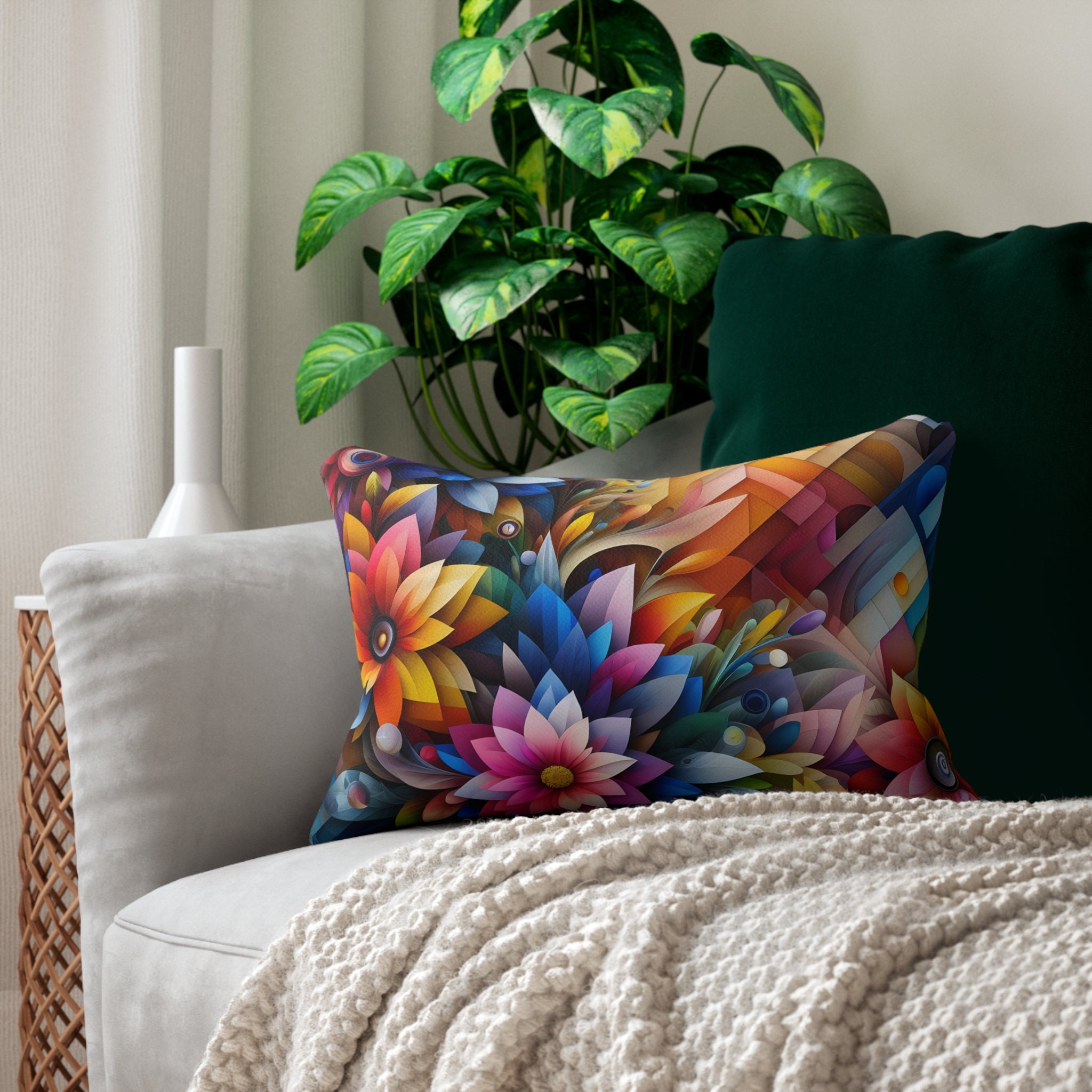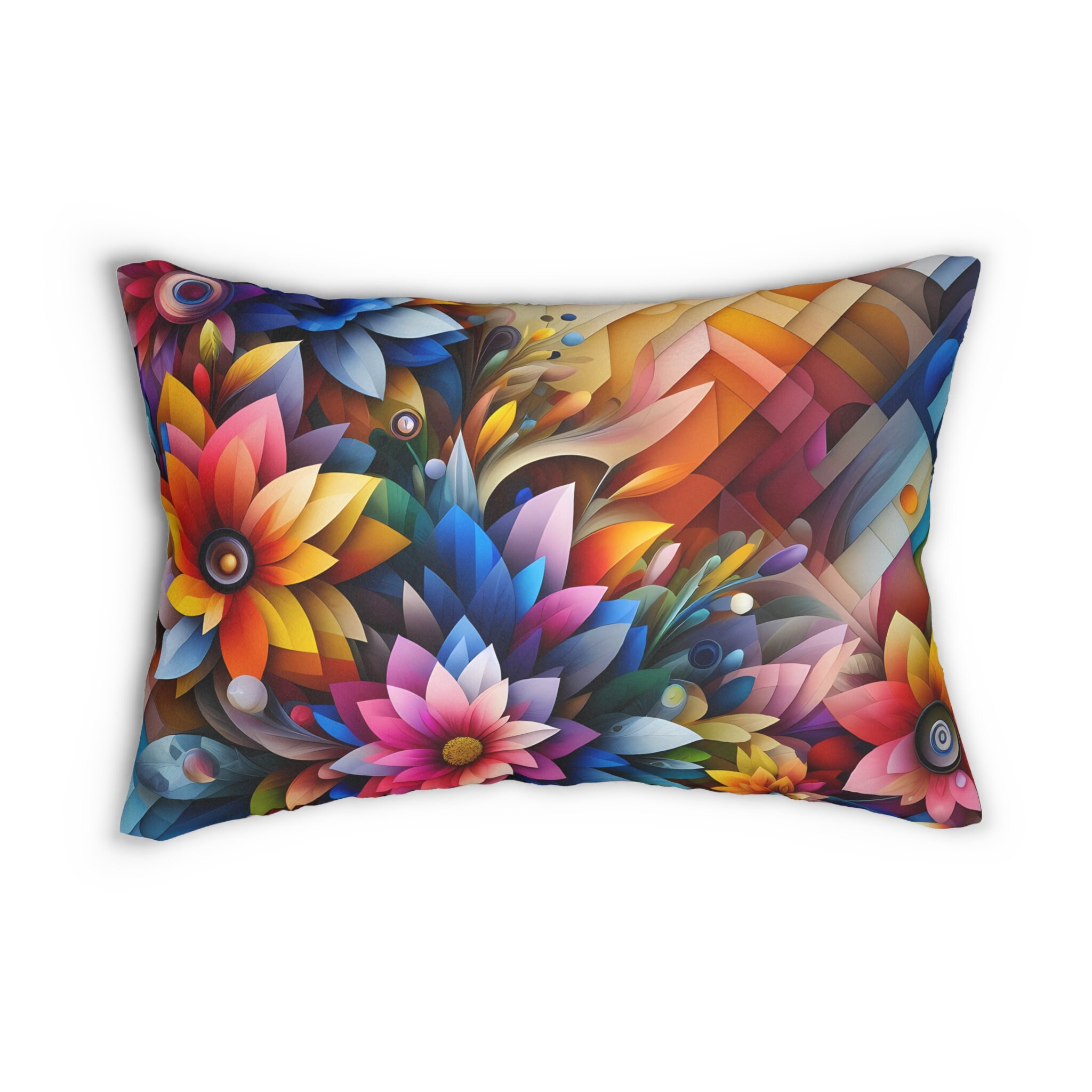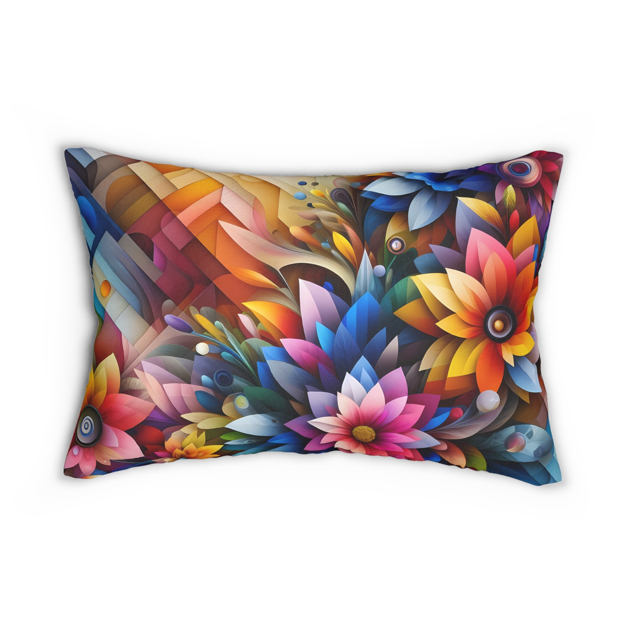 Botanical Delight: Abstract Flowers Lumbar Pillow in Bold Colors