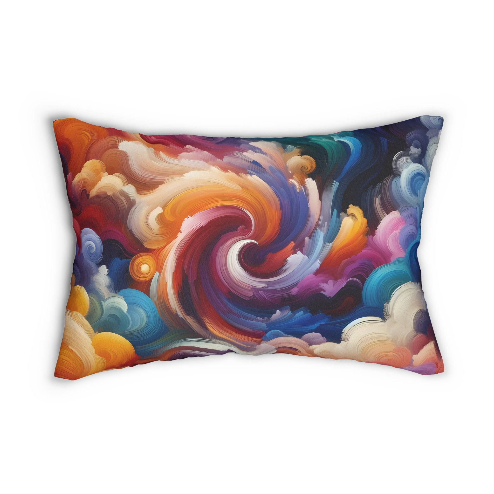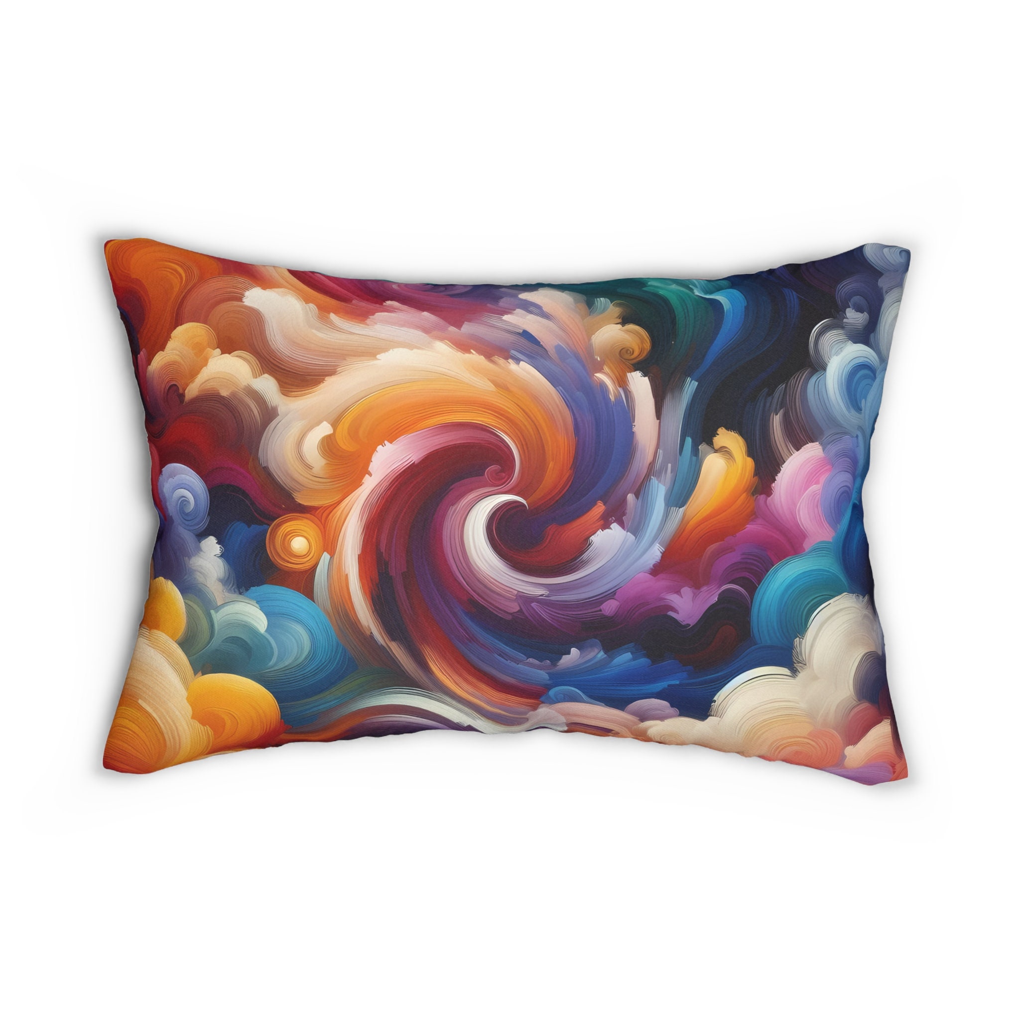 Elevate your home decor with our Burst Of Color Abstract Lumbar Pillow – a stunning addition to your living space. This spun-polyester lumbar pillow effortlessly blends style and comfort, making it a must-have for any design-conscious home. The pillow comes complete with a stuffing pillow included, ensuring instant coziness and appeal.