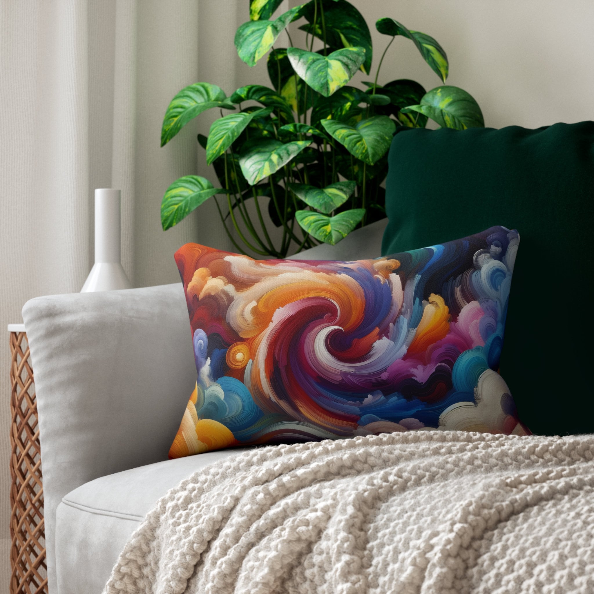 Bring a burst of color and style into your home with our Abstract Colorful Lumbar Pillow. Shop now and transform your space with this exceptional blend of art and comfort.
