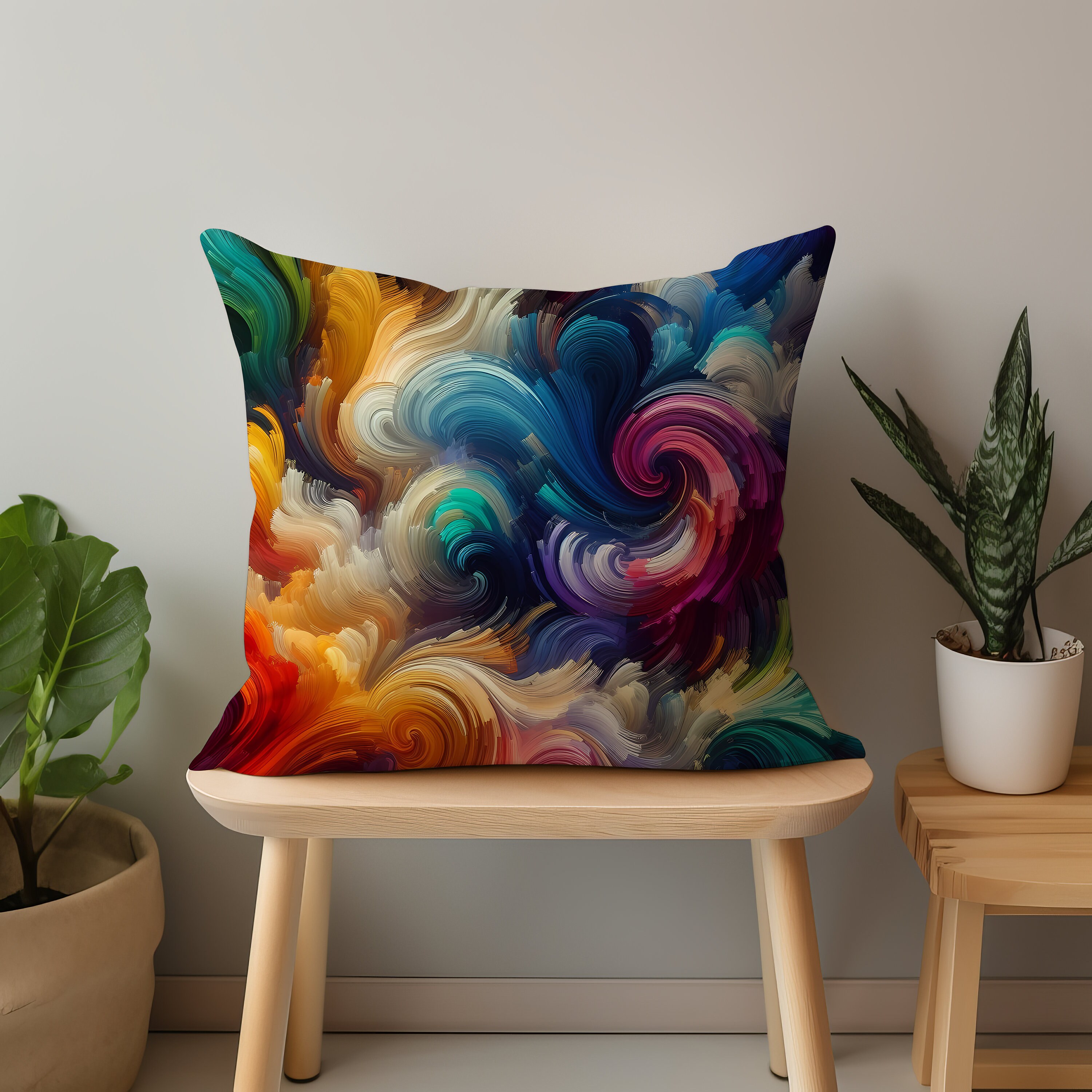 Abstract Bliss: Infuse Your Home with Radiant Hues – Colorful Square Pillow.