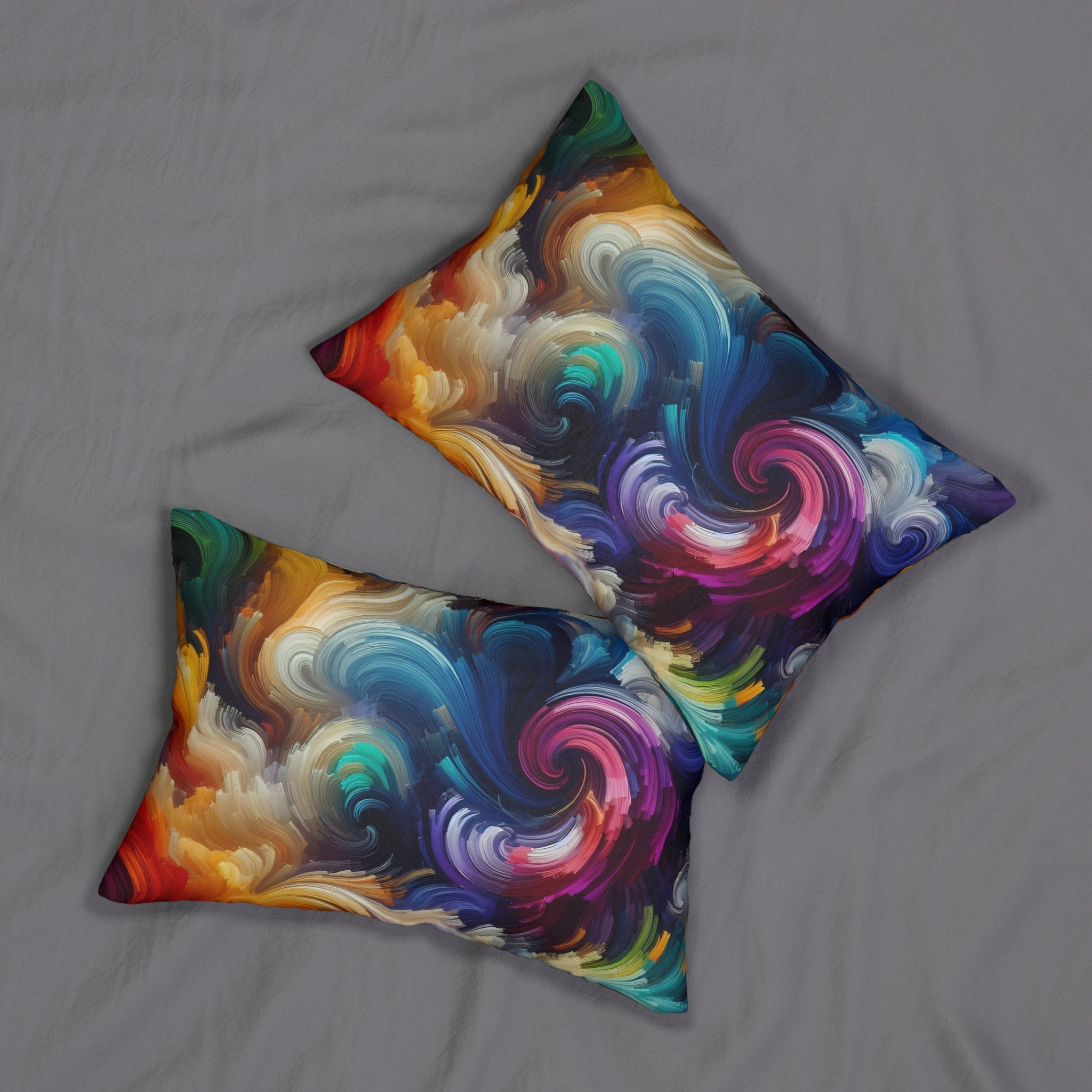 Bring a burst of color and style into your home with our Abstract Colorful Lumbar Pillow. Shop now and transform your space with this exceptional blend of art and comfort.