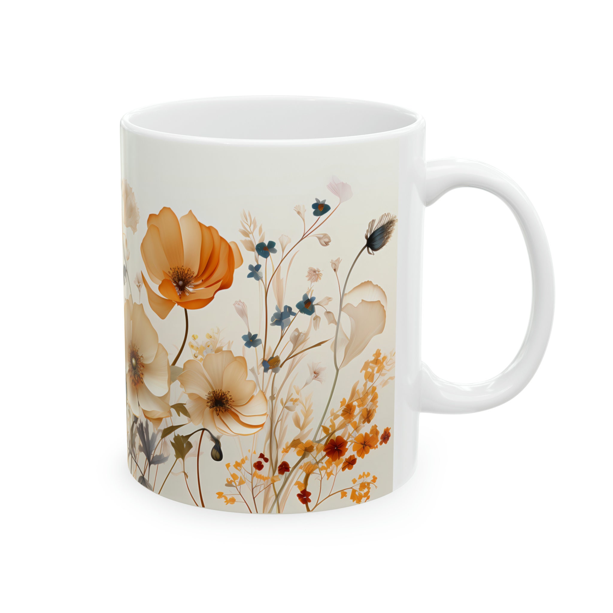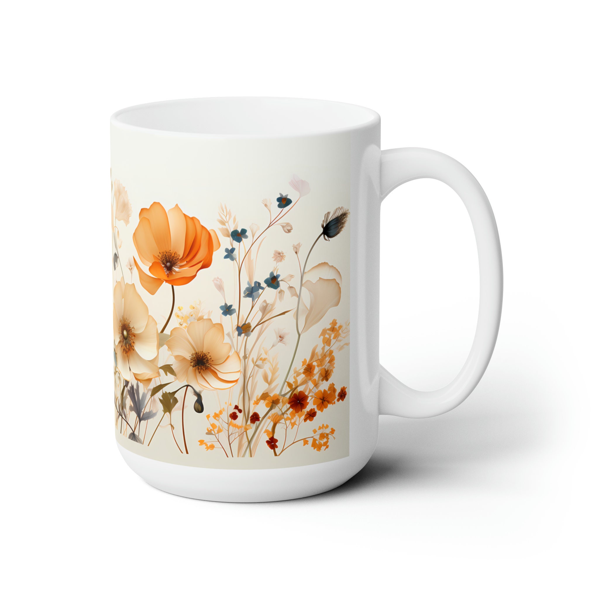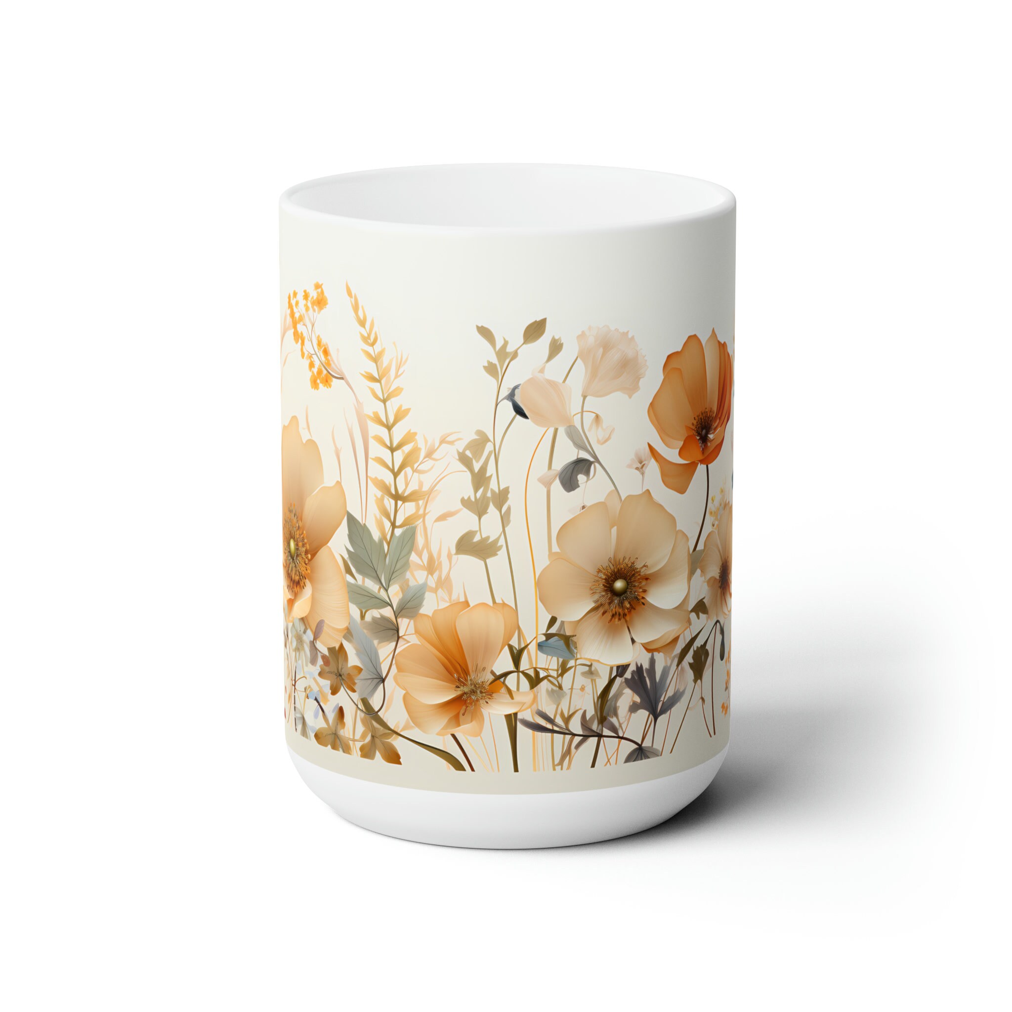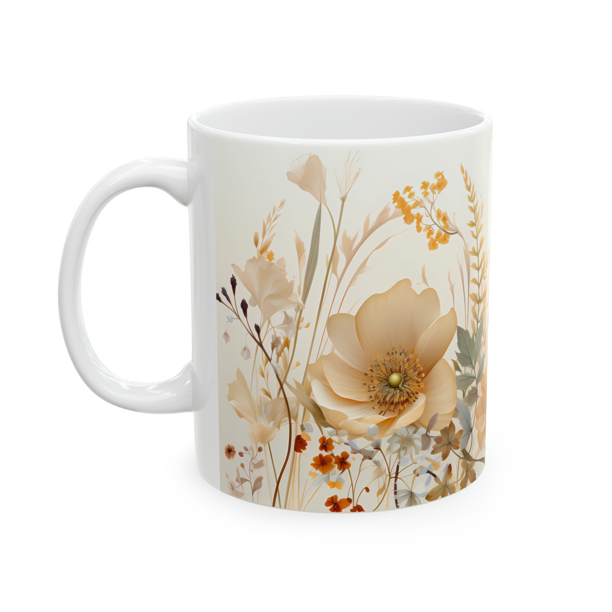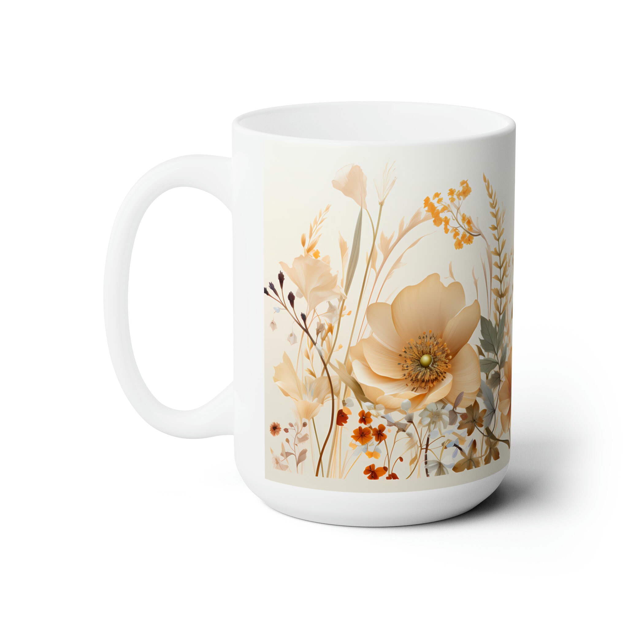 Sip in style with this vintage wildflower mug adorned with vintage wildflowers. A delightful fusion of beauty and functionality for your morning brew. Available in both 11-ounce and 15-ounce sizes, these white ceramic mugs bring a touch of vintage charm to your daily sips.
