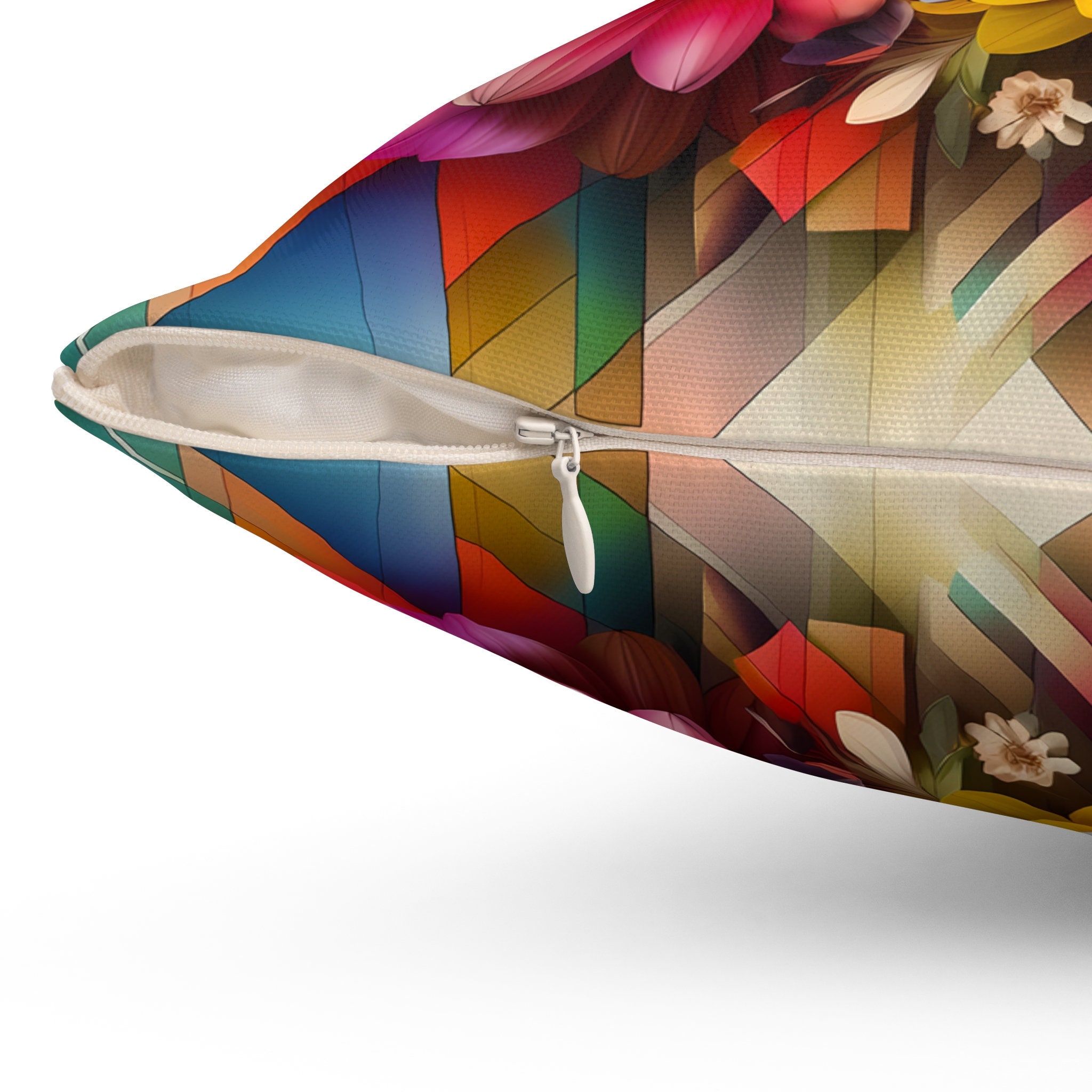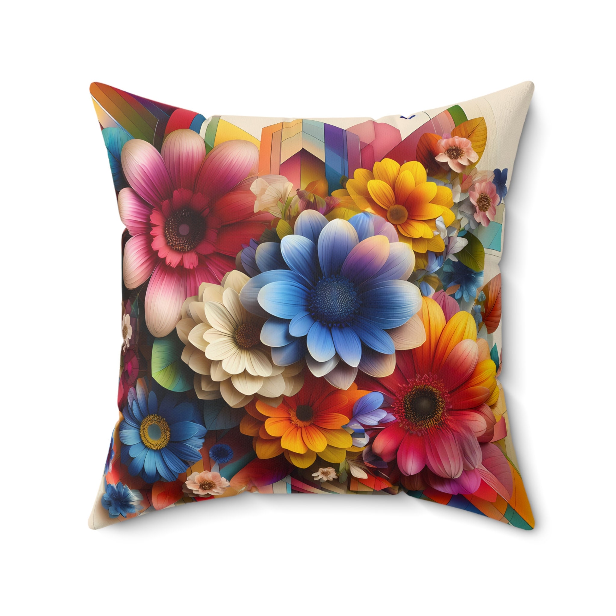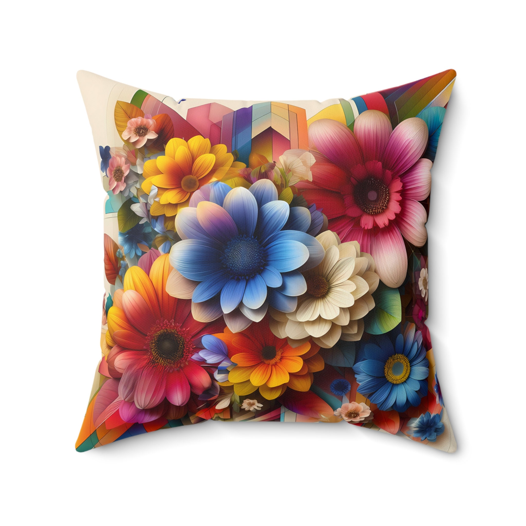 Chromatic Bloom Harmony: Bloom Harmony Abstract Square Pillow.