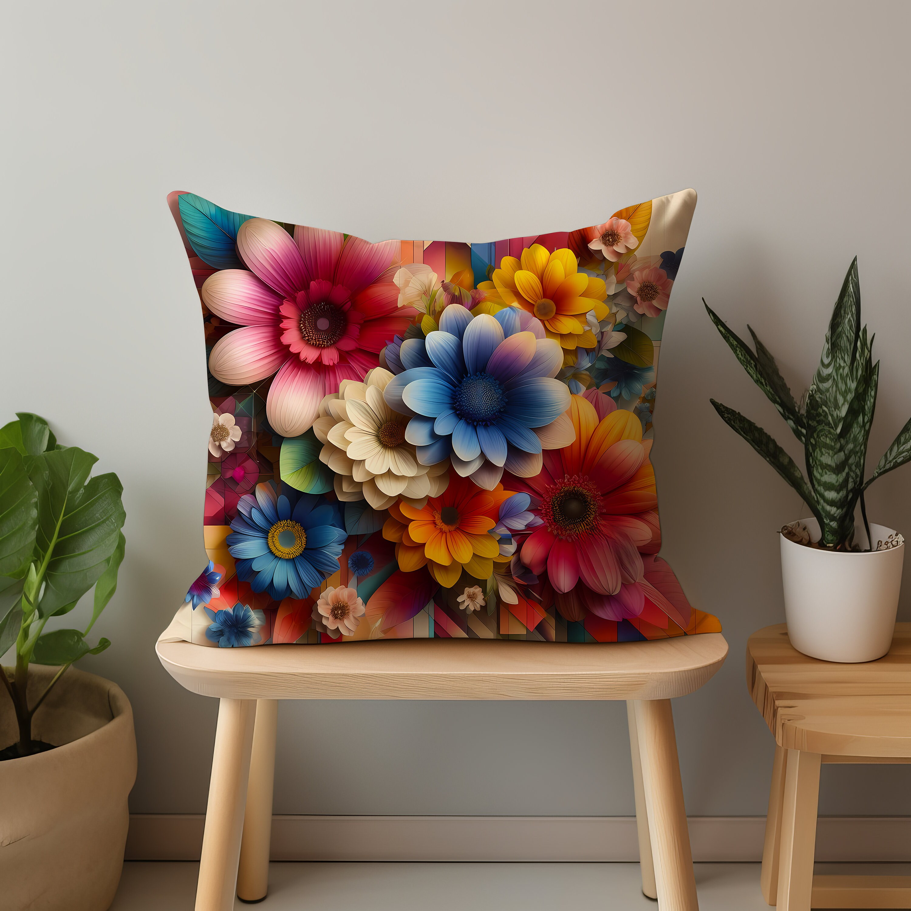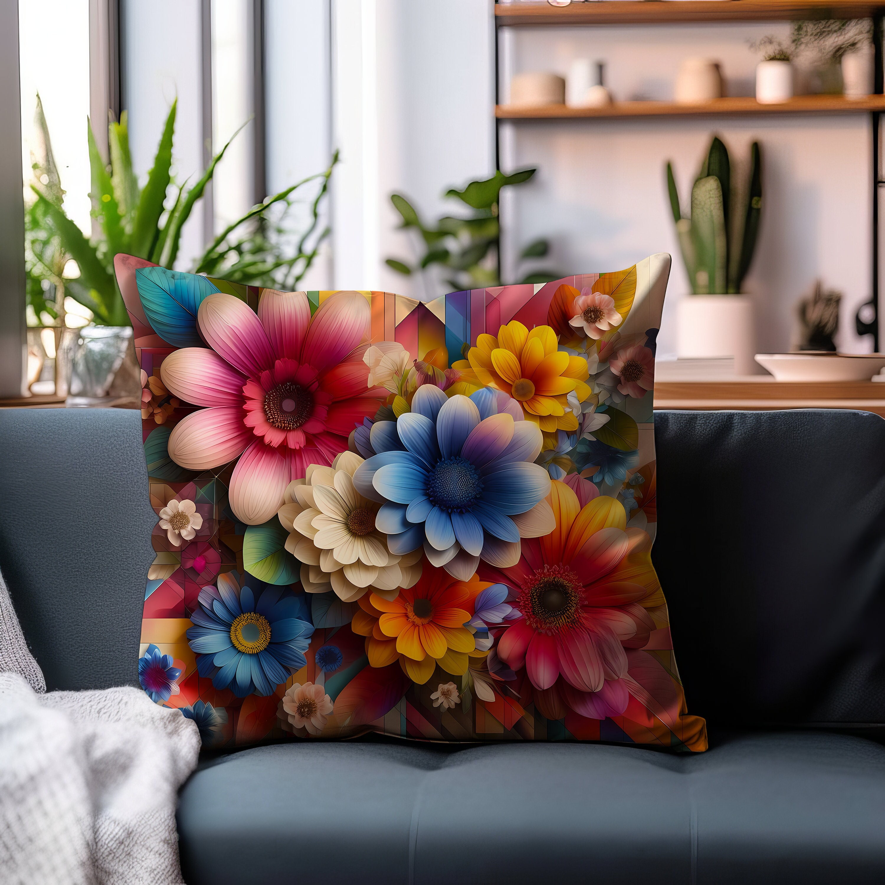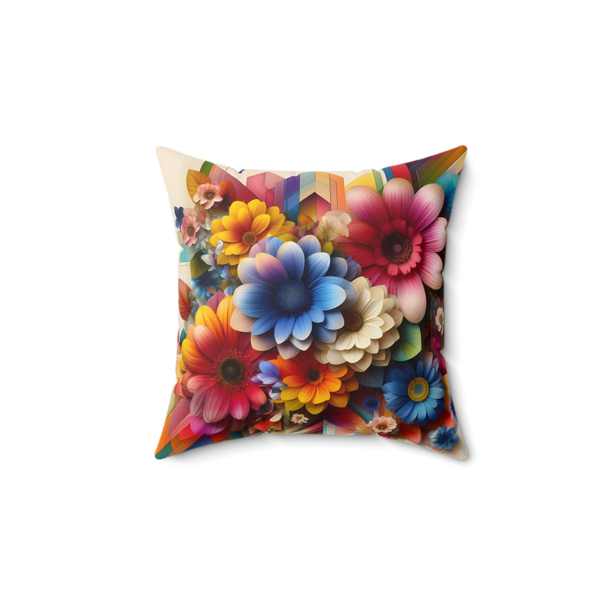 Chromatic Bloom Harmony: Bloom Harmony Abstract Square Pillow.