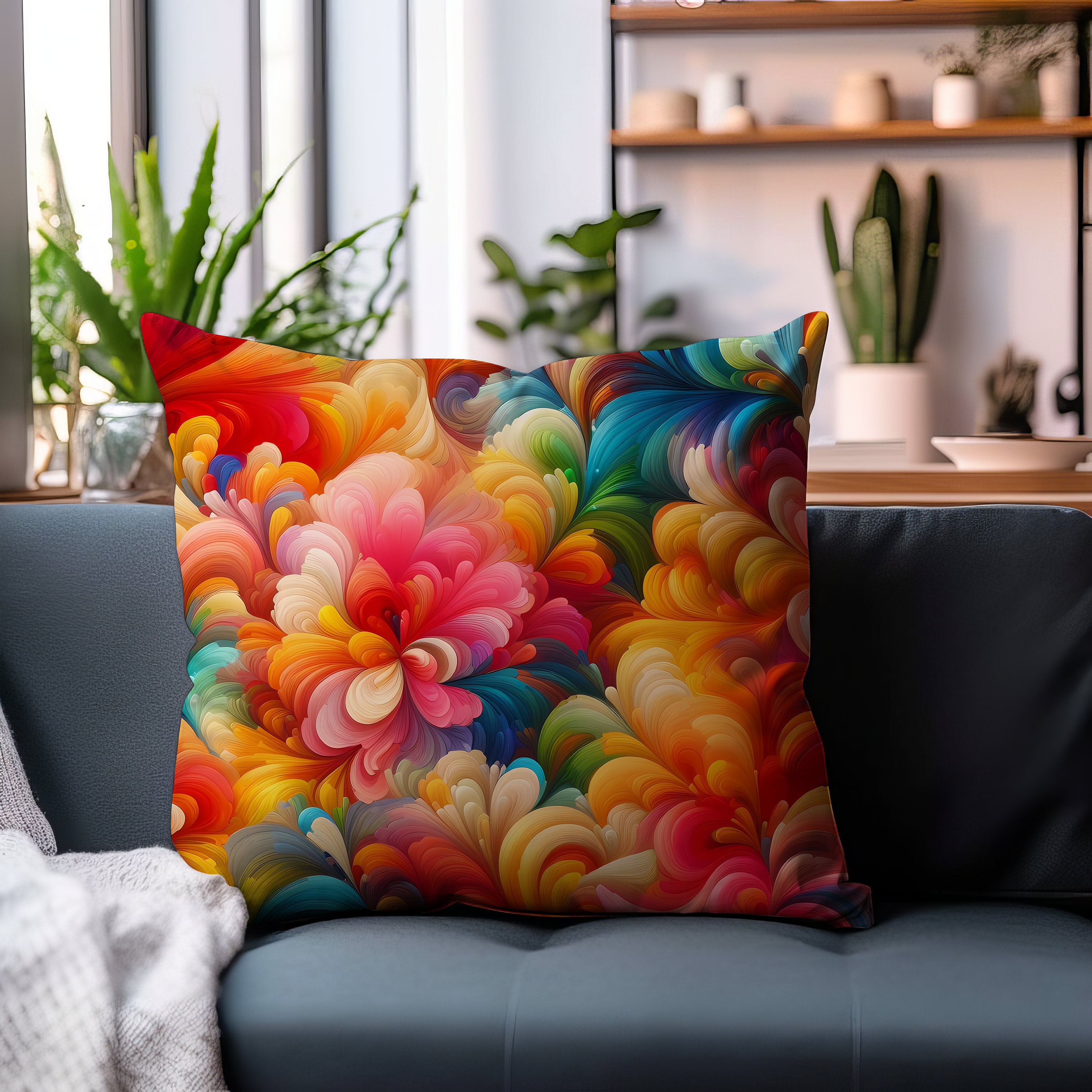 Introducing our Abstract Floral Blossom Square Pillow – a vibrant fusion of artistry and comfort that transcends ordinary room accents. Elevate your space with this statement piece, available in four sizes: 14x14, 16x16, 18x18, and 20x20 inches, to suit your personal style.