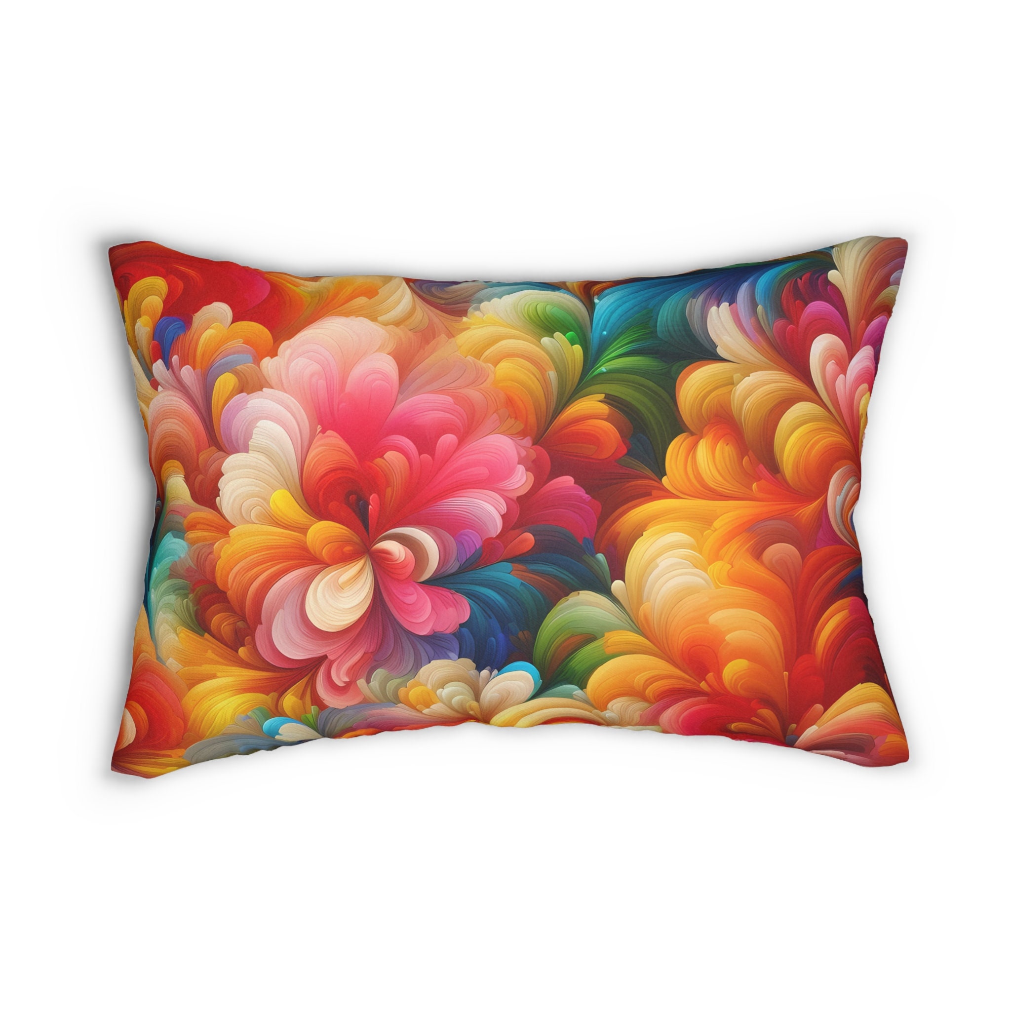 Elevate your home decor with our Abstract Floral Blossom Lumbar Pillow, a stunning addition to your living space. This spun-polyester lumbar pillow effortlessly blends style and comfort, making it a must-have for any design-conscious home. The pillow comes complete with a stuffing pillow included, ensuring instant coziness and appeal.