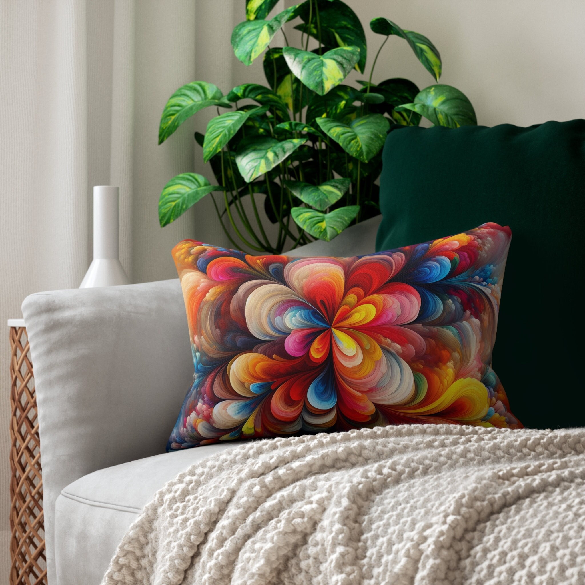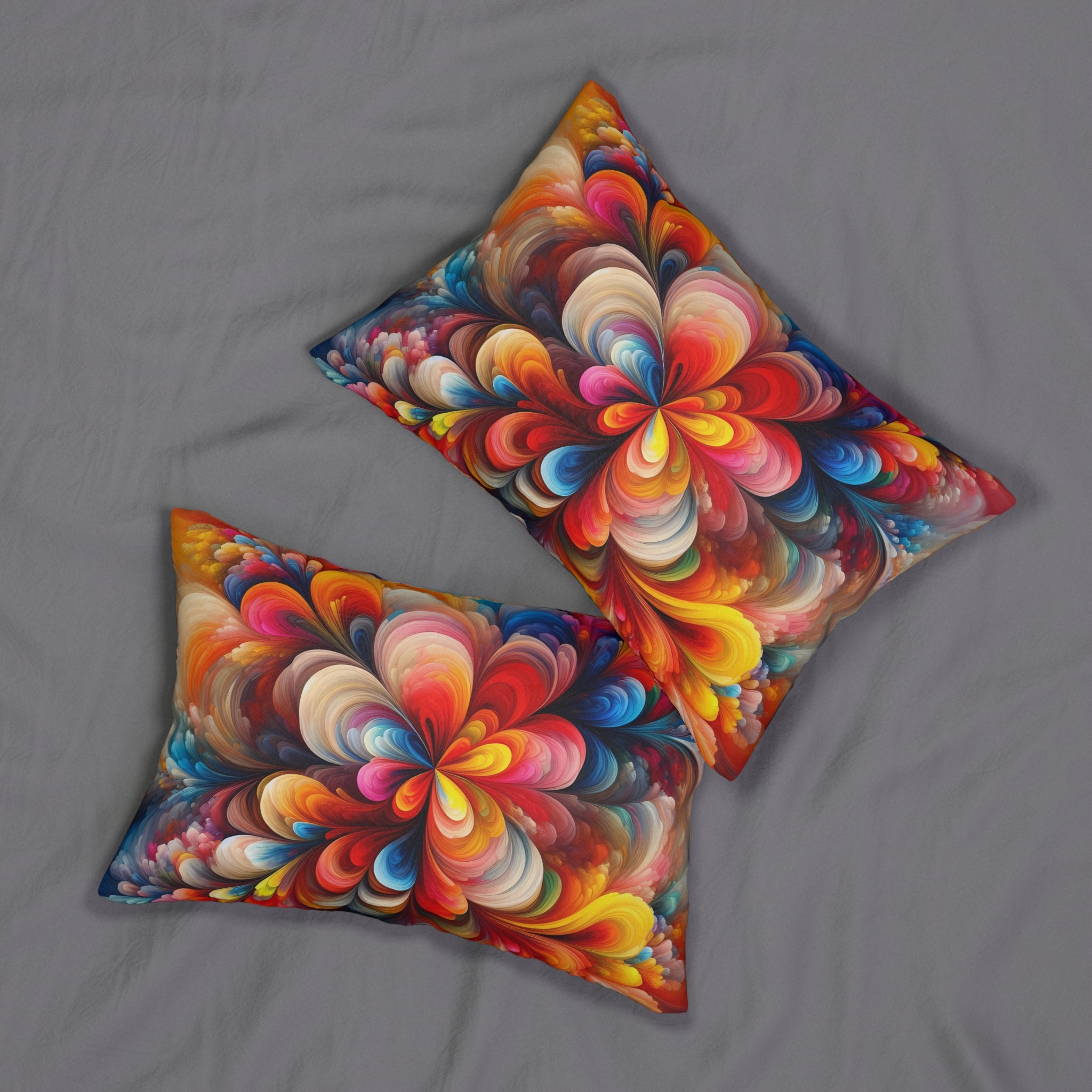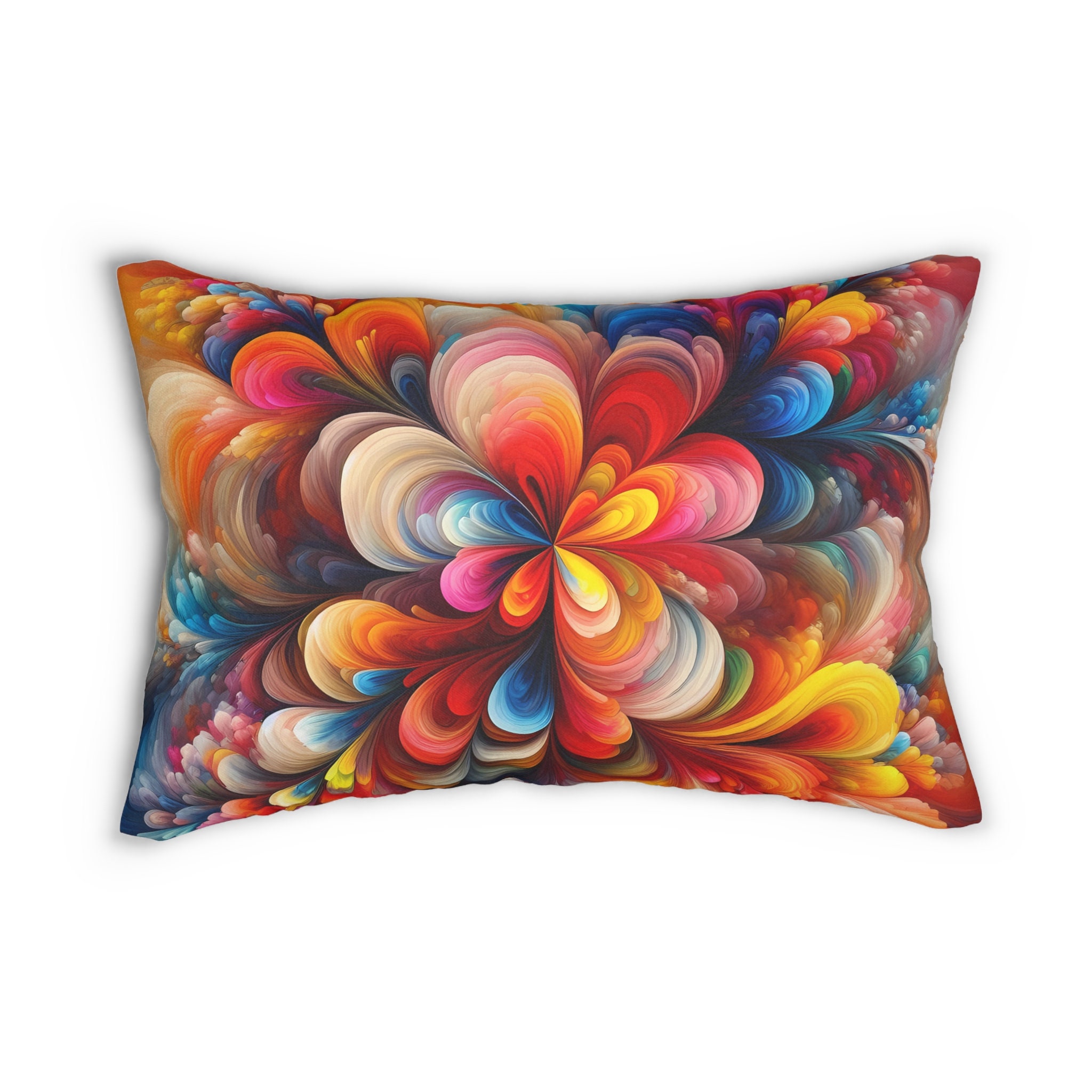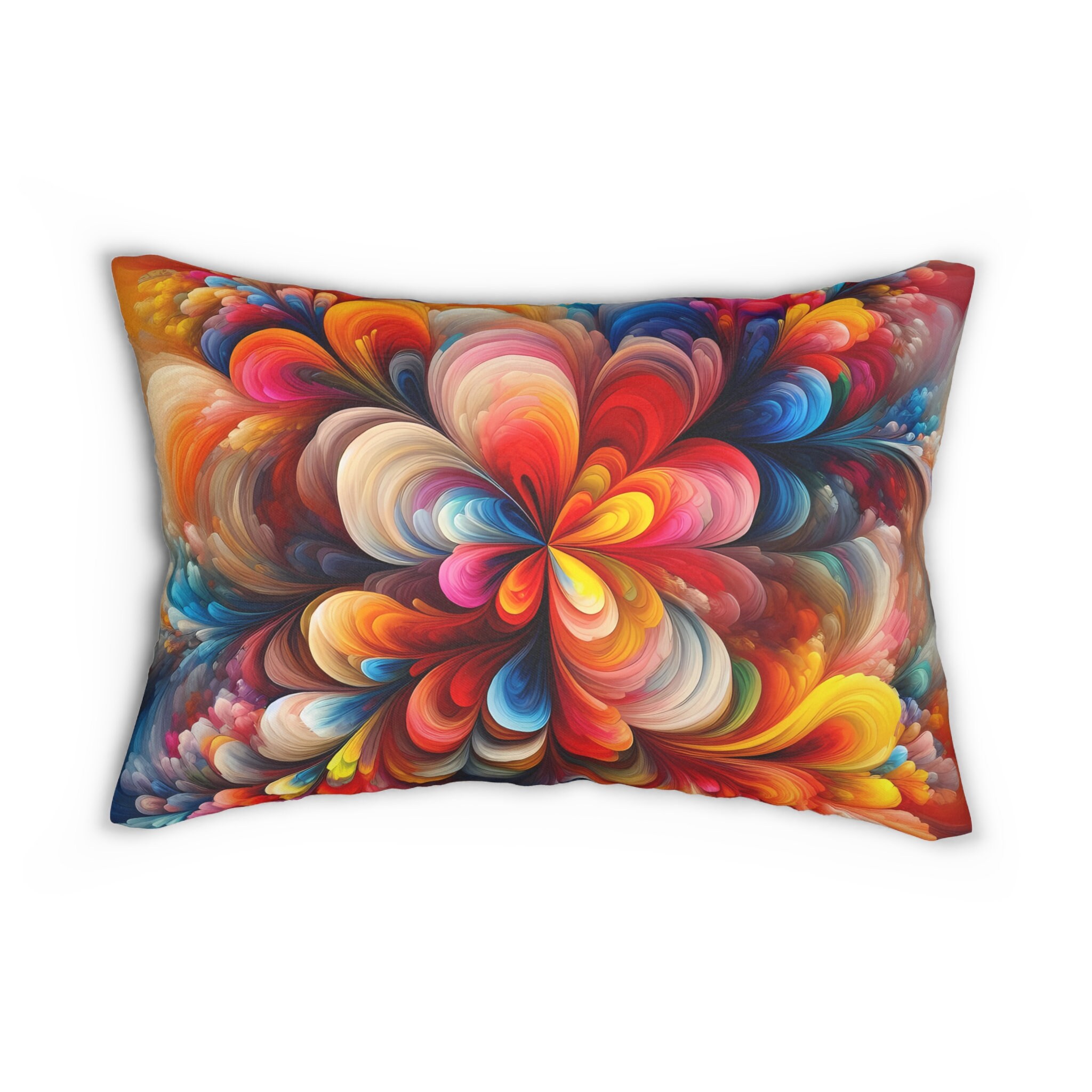Elevate your home decor with our Abstract Rainbow Flower Lumbar Pillow, a stunning addition to your living space. This spun-polyester lumbar pillow effortlessly blends style and comfort, making it a must-have for any design-conscious home. The pillow comes complete with a stuffing pillow included, ensuring instant coziness and appeal.
