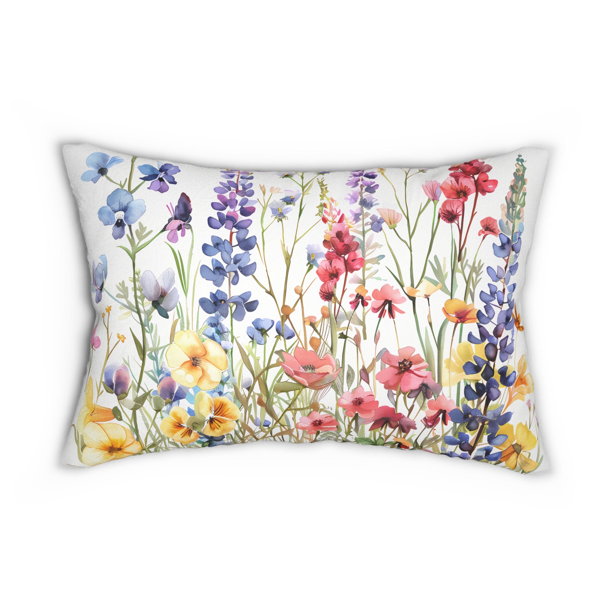 Elevate your home decor with our Nature's Embrace Wildflower Lumbar Pillow, a stunning addition to your living space. This spun-polyester lumbar pillow effortlessly blends style and comfort, making it a must-have for any design-conscious home. The pillow comes complete with a stuffing pillow included, ensuring instant coziness and appeal.