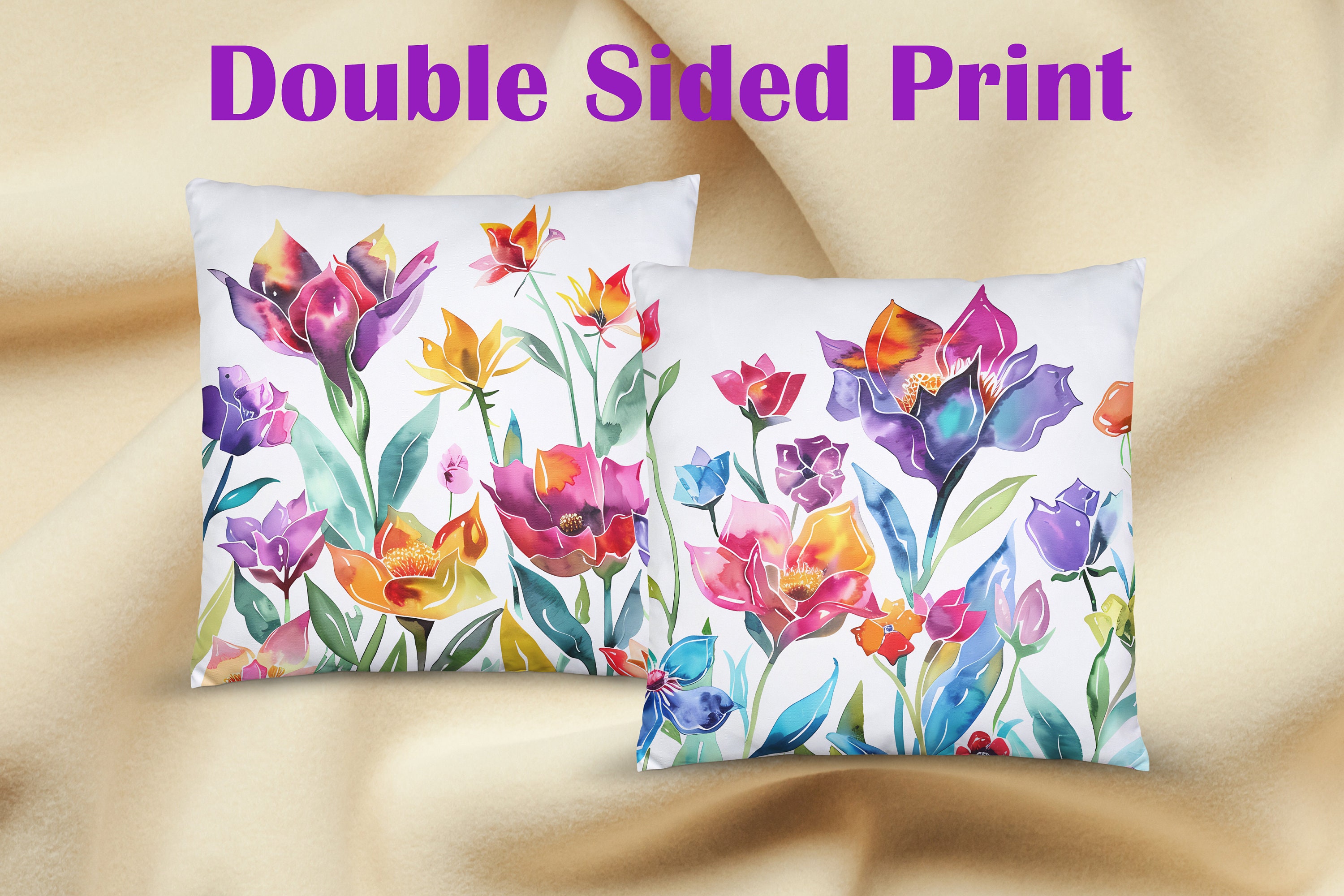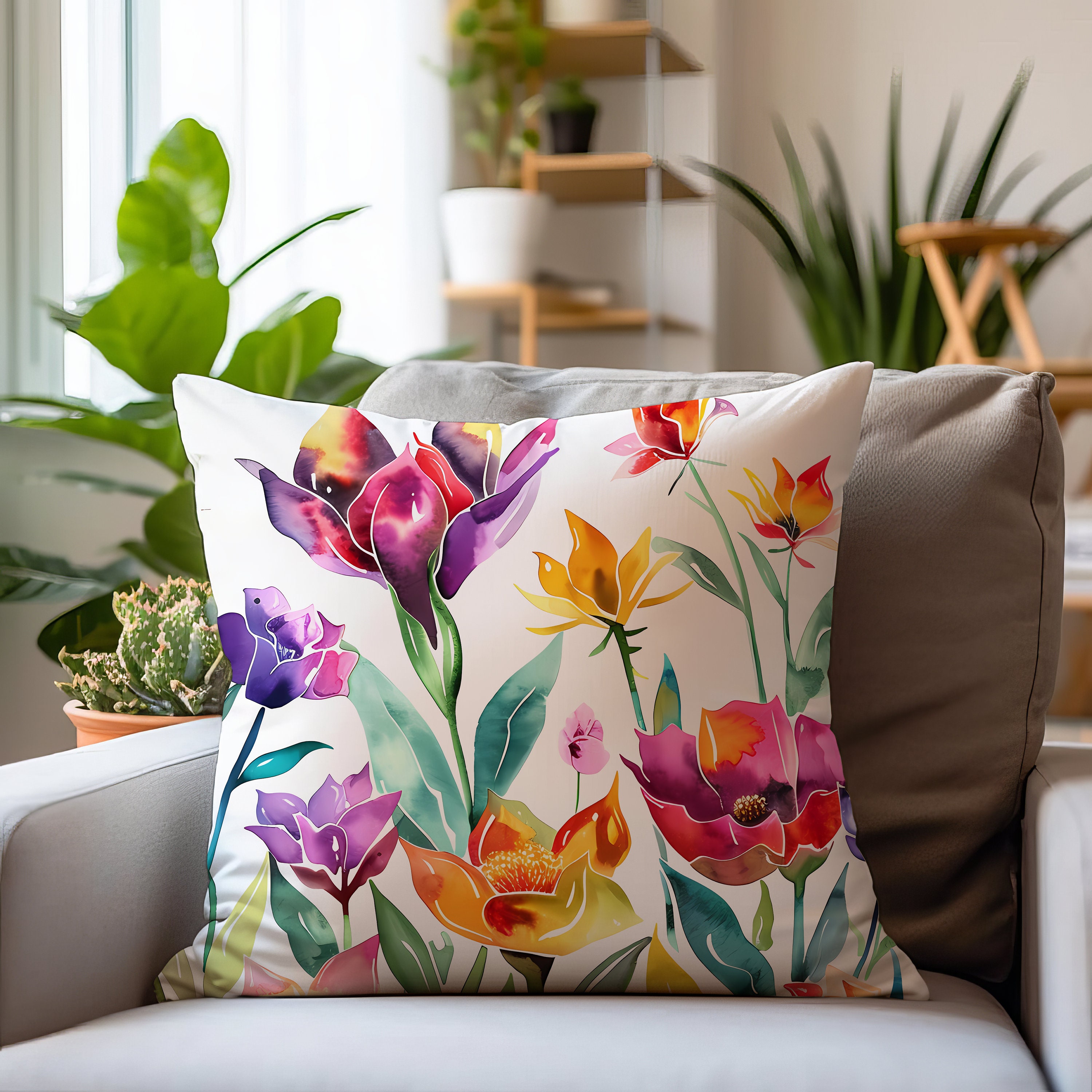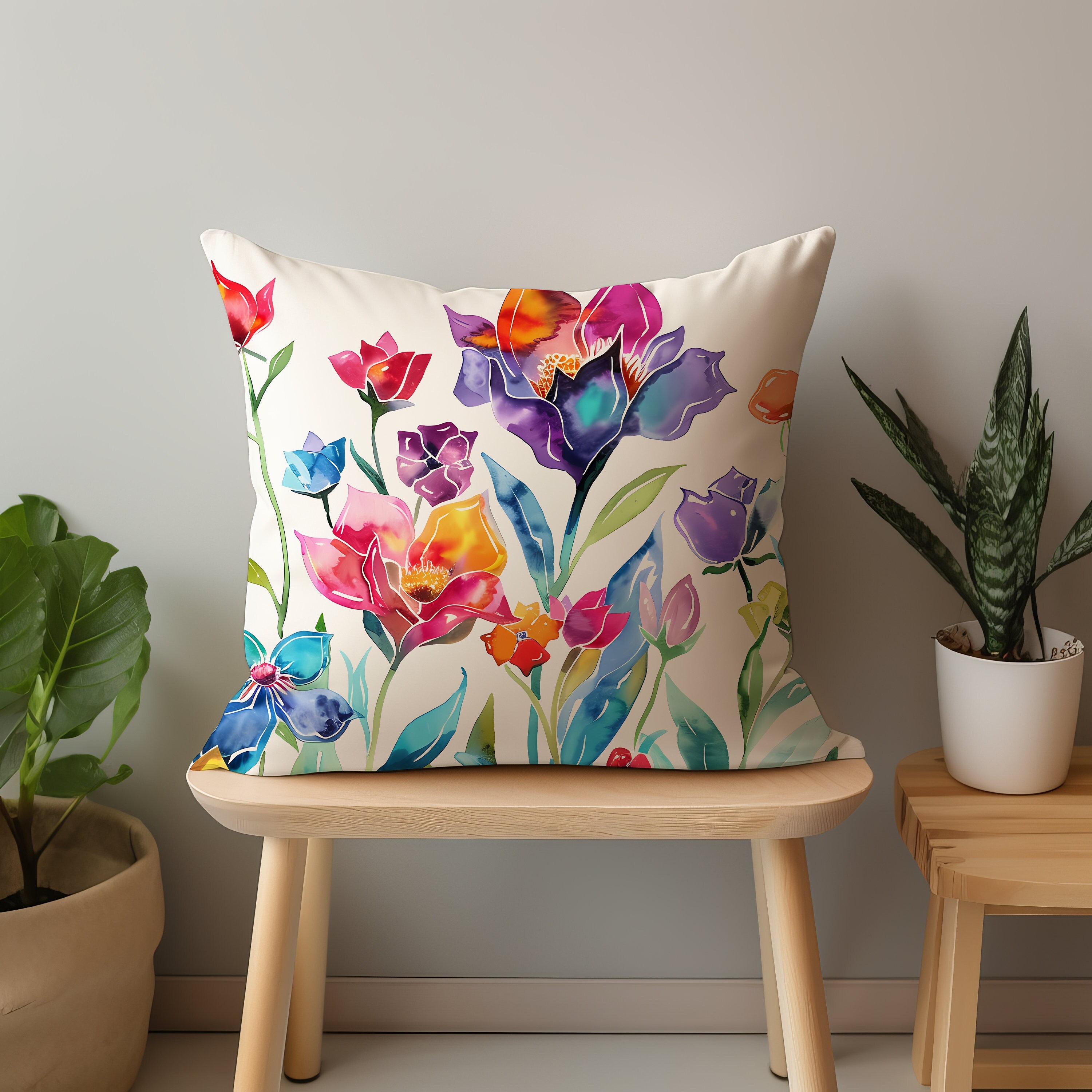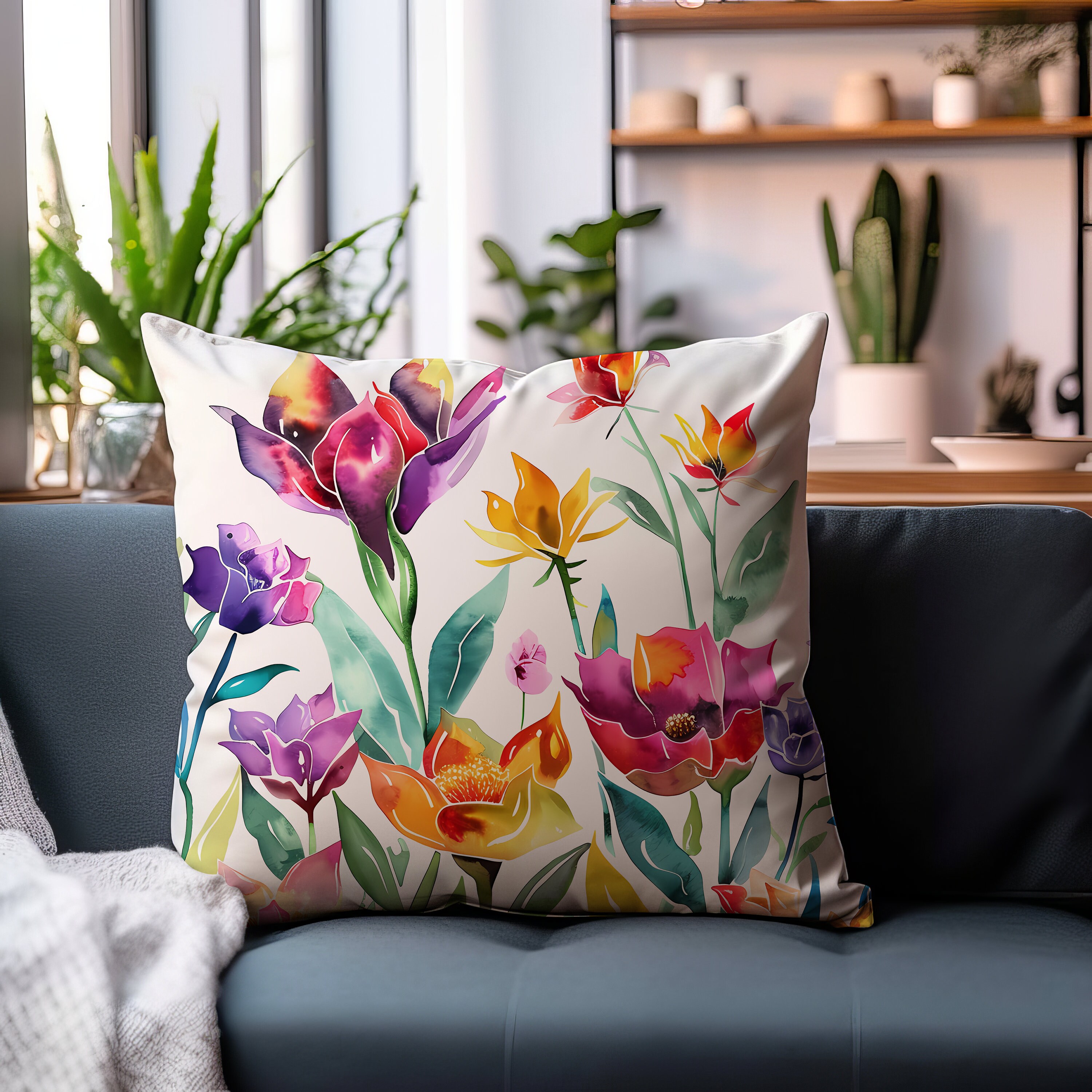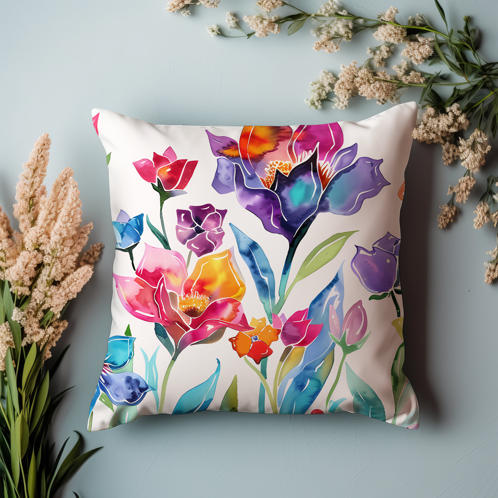 Colorful Watercolor Wildflower Meadow Throw Pillow.