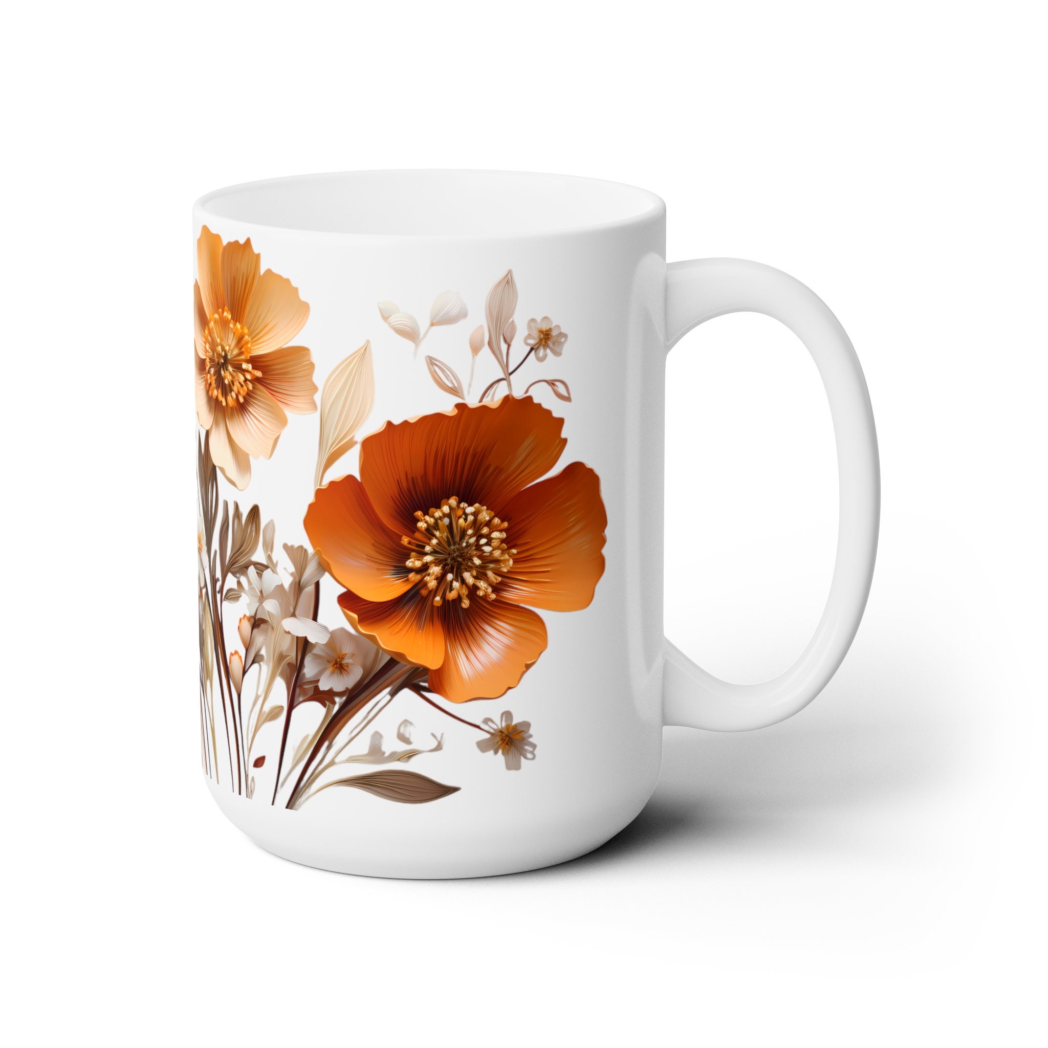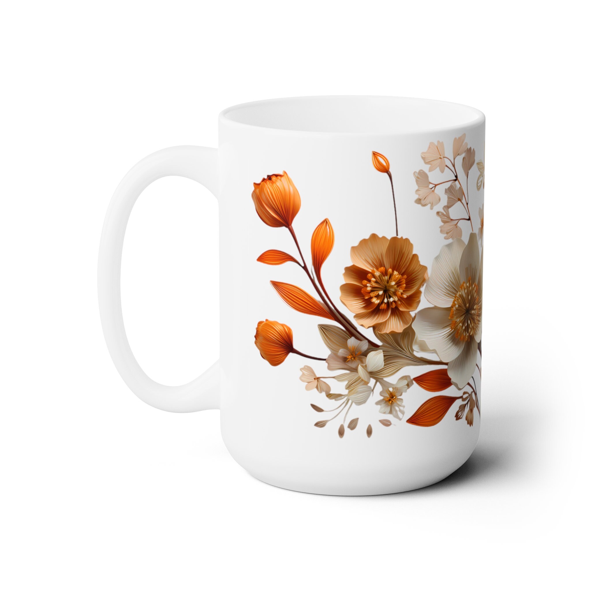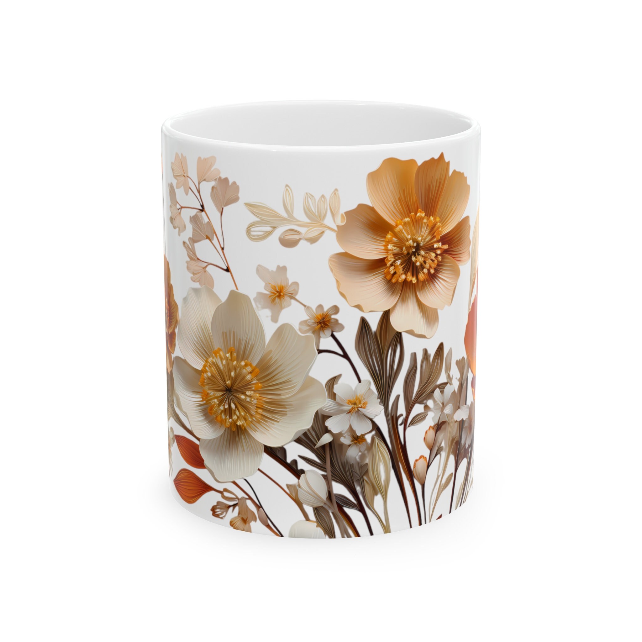Sip in style with this mug adorned with vintage wildflowers. A delightful fusion of beauty and functionality for your morning brew. Available in both 11-ounce and 15-ounce sizes, these white ceramic mugs bring a touch of vintage charm to your daily sips.