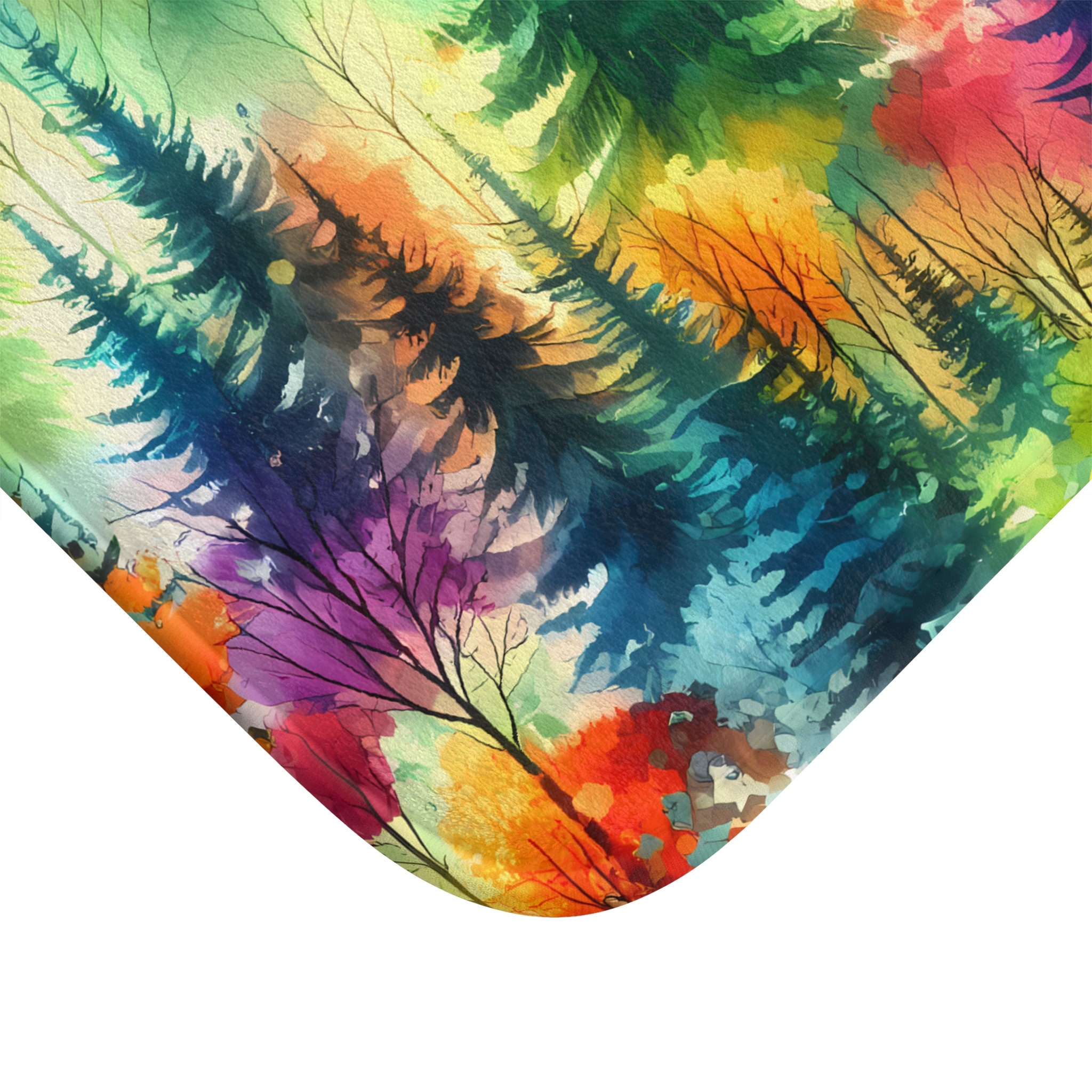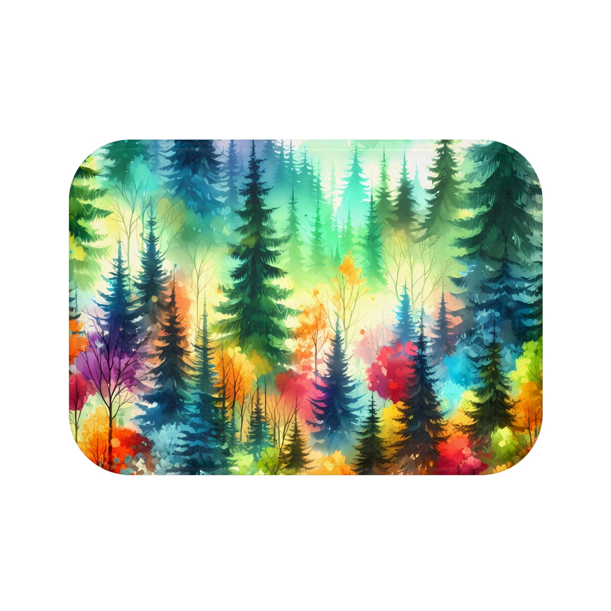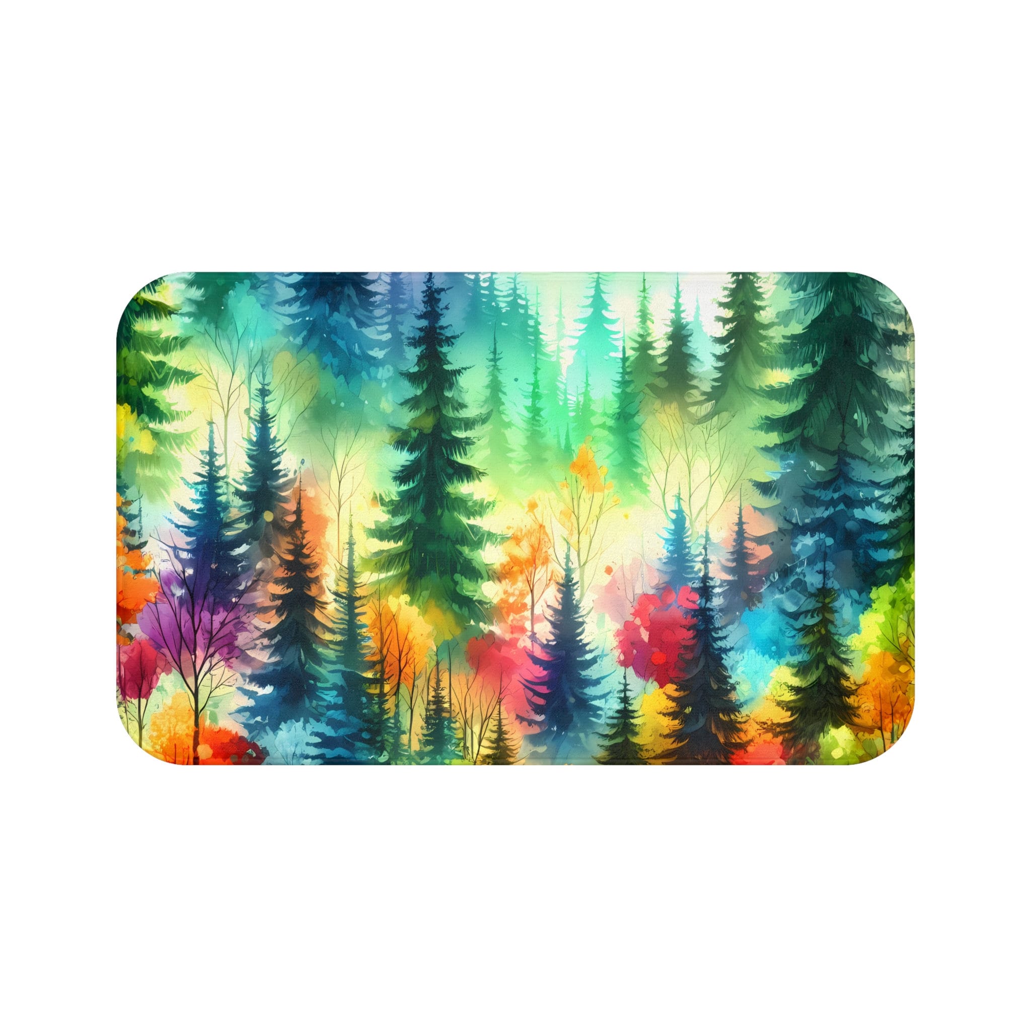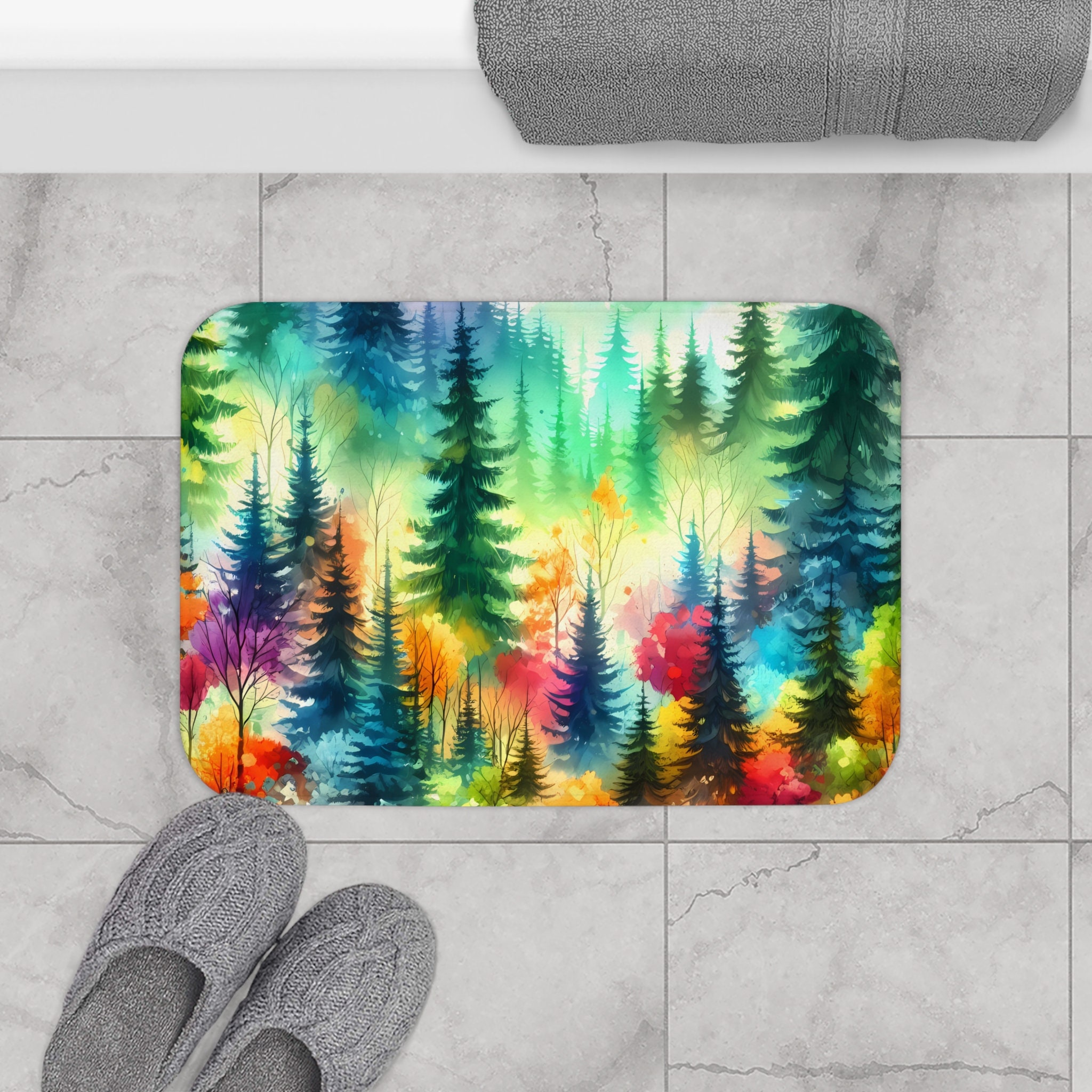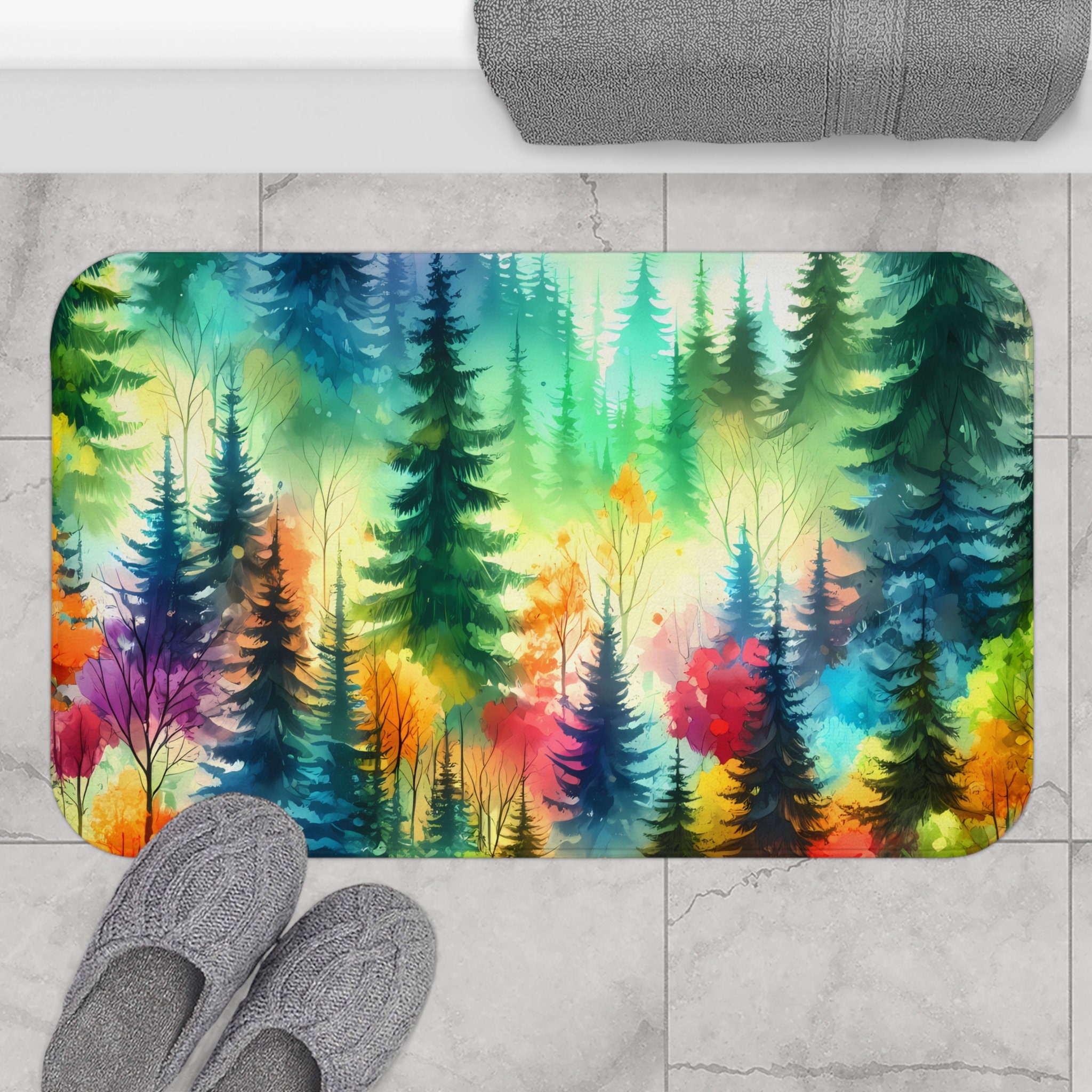 Introducing our stylish and practical "Colorful Vibrant Forest Landscape Bath Mat," designed to elevate your bathroom experience. The anti-slip backing ensures a secure placement, reducing the risk of slipping for added safety.