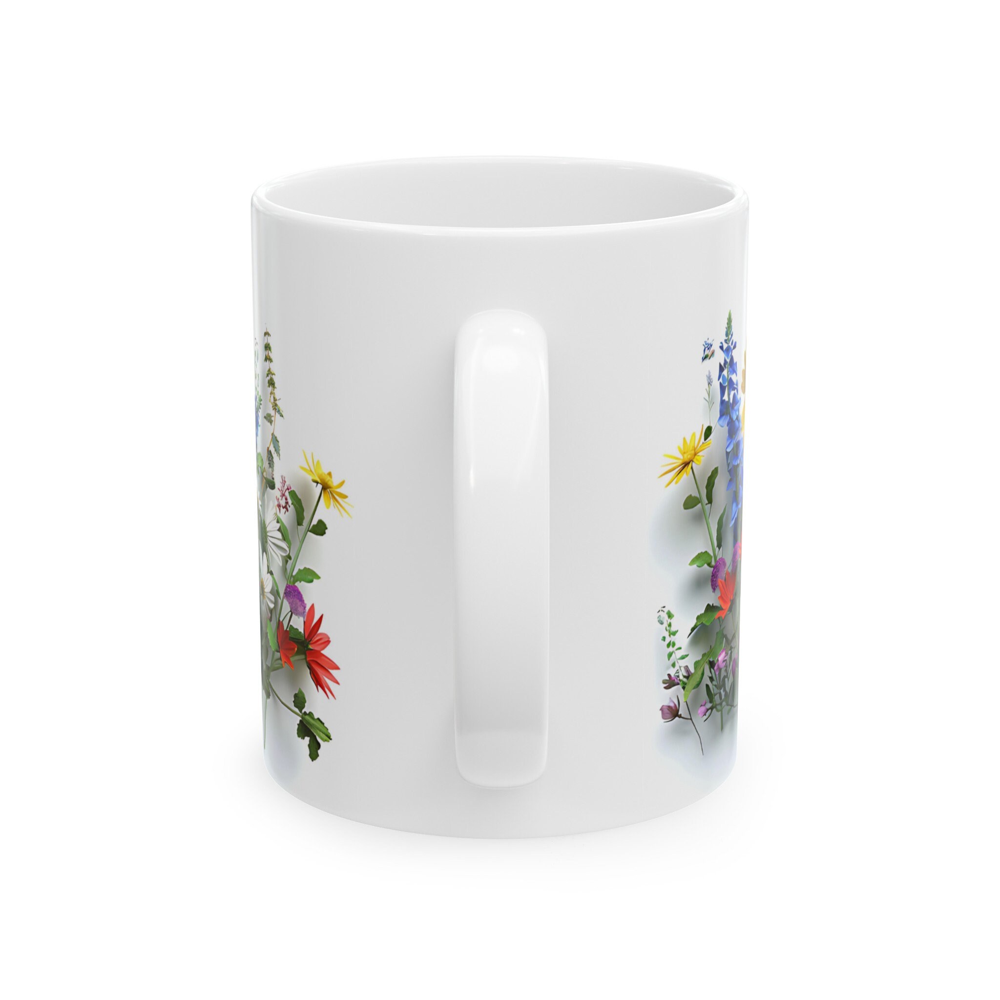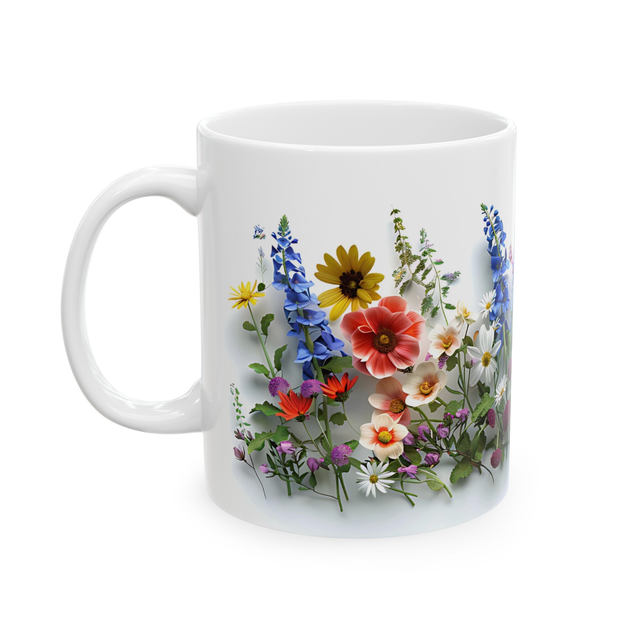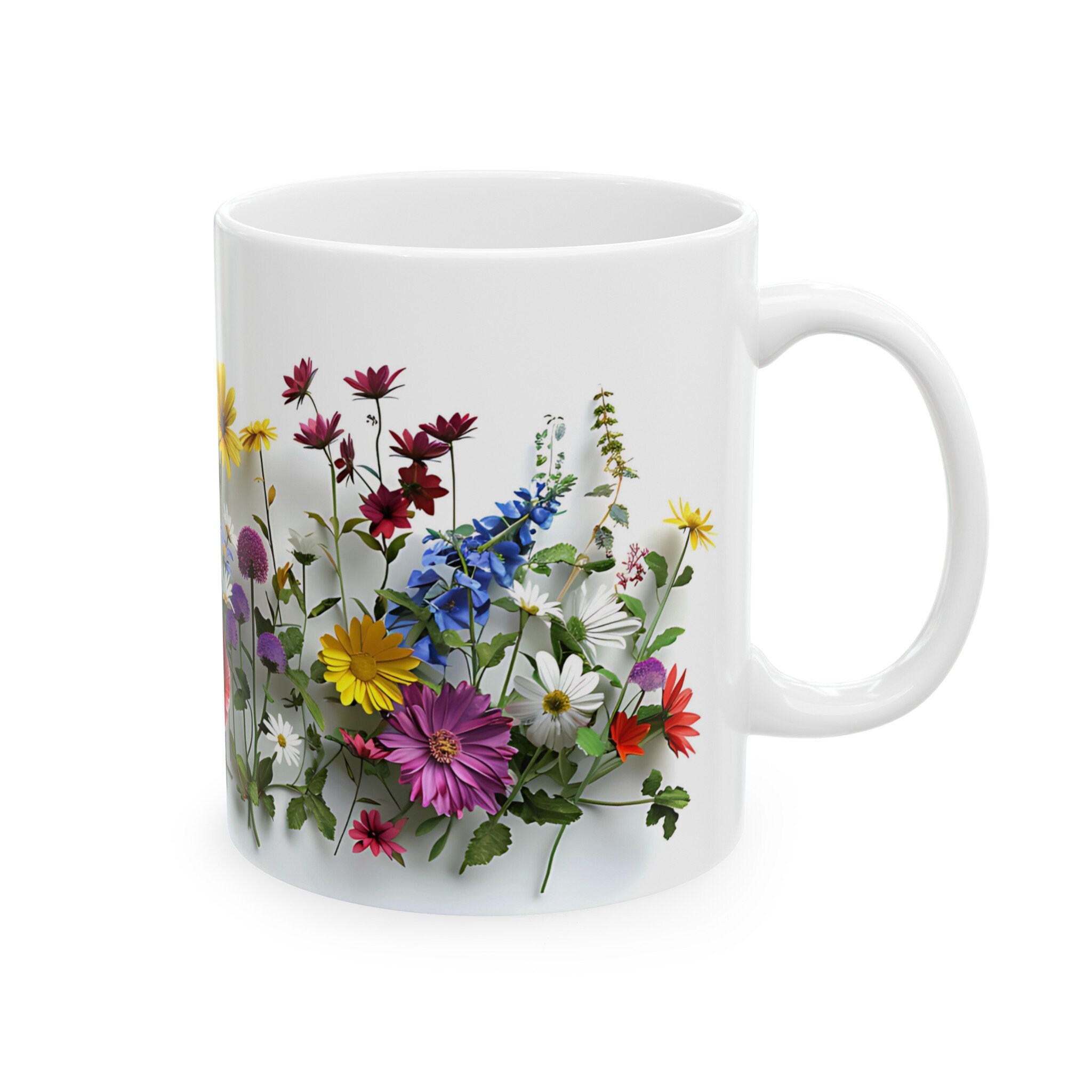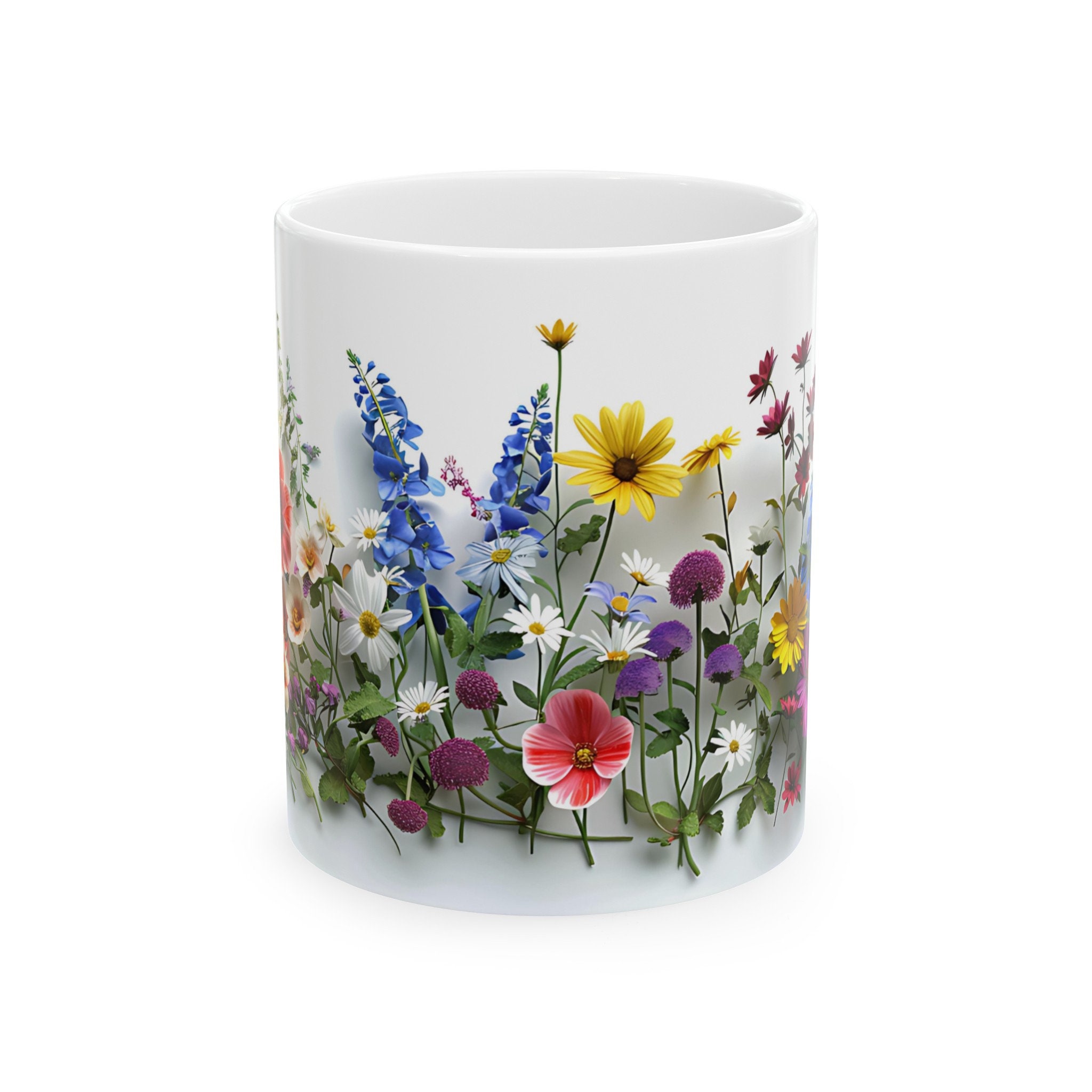 Start your day in style with this mug adorned with colorful and vibrant floral wildflowers. A sophisticated touch to your coffee or tea time. Available in both 11-ounce and 15-ounce sizes.