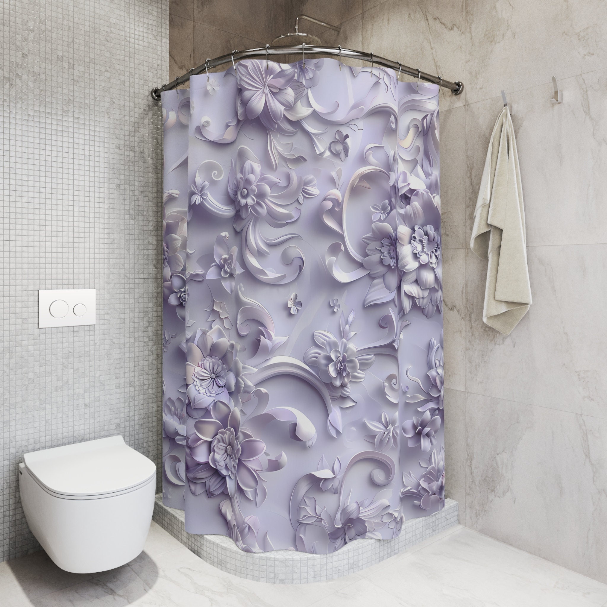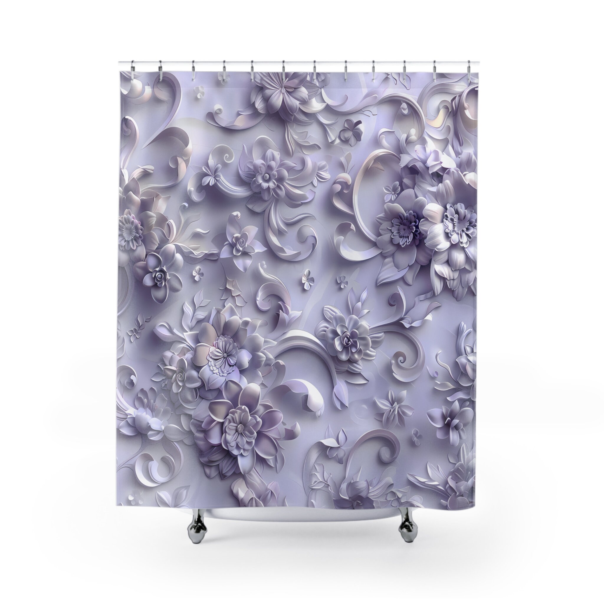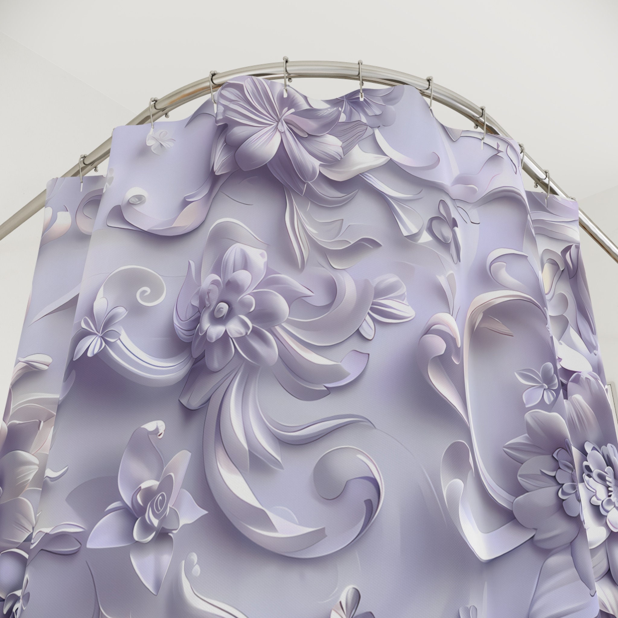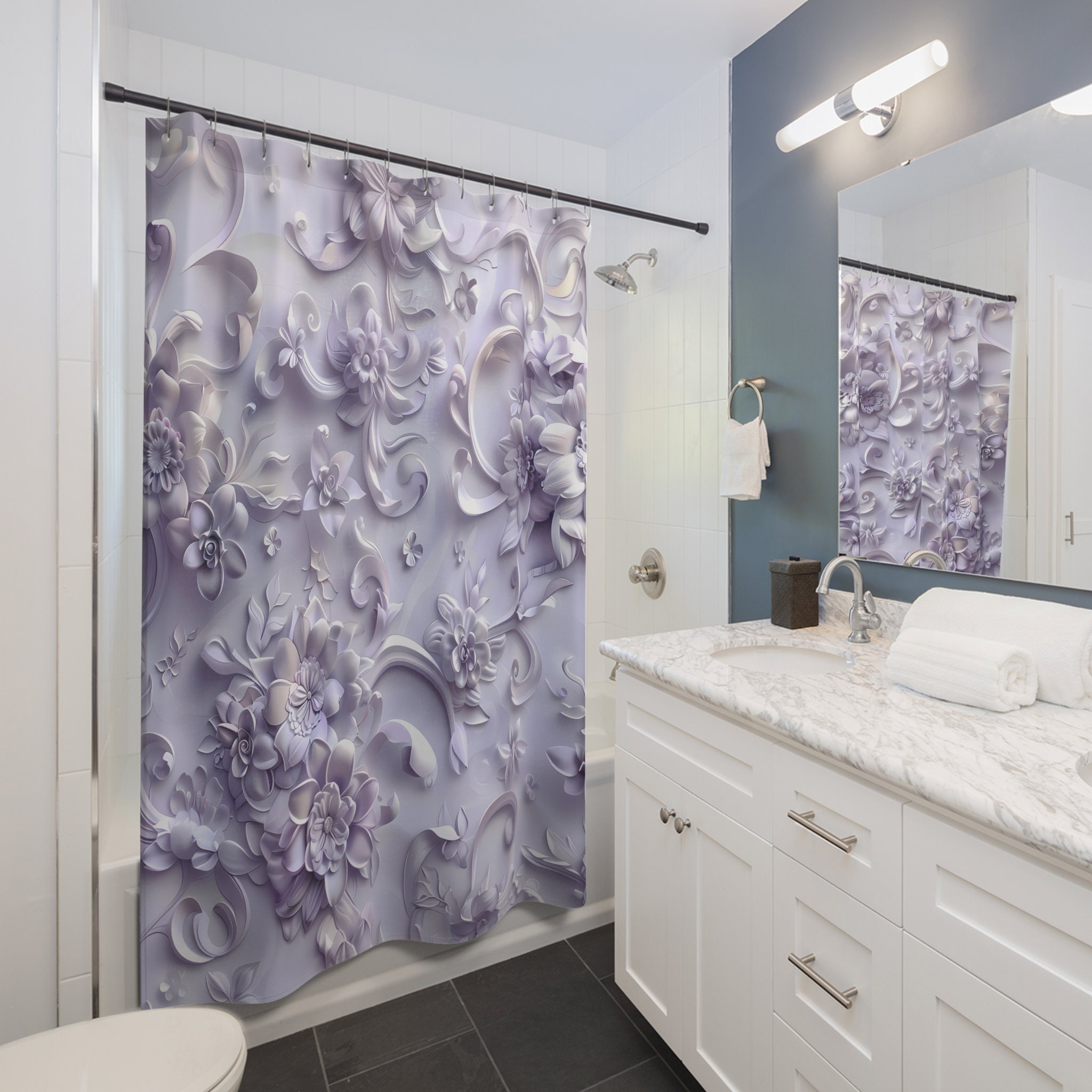 Transform your bathroom into a haven of enchantment with our "Lavender Dreamscape: 3D Floral Shower Curtain." Crafted to elevate your space with a touch of joy and serenity, our shower curtains are designed to make your showering experience truly delightful.