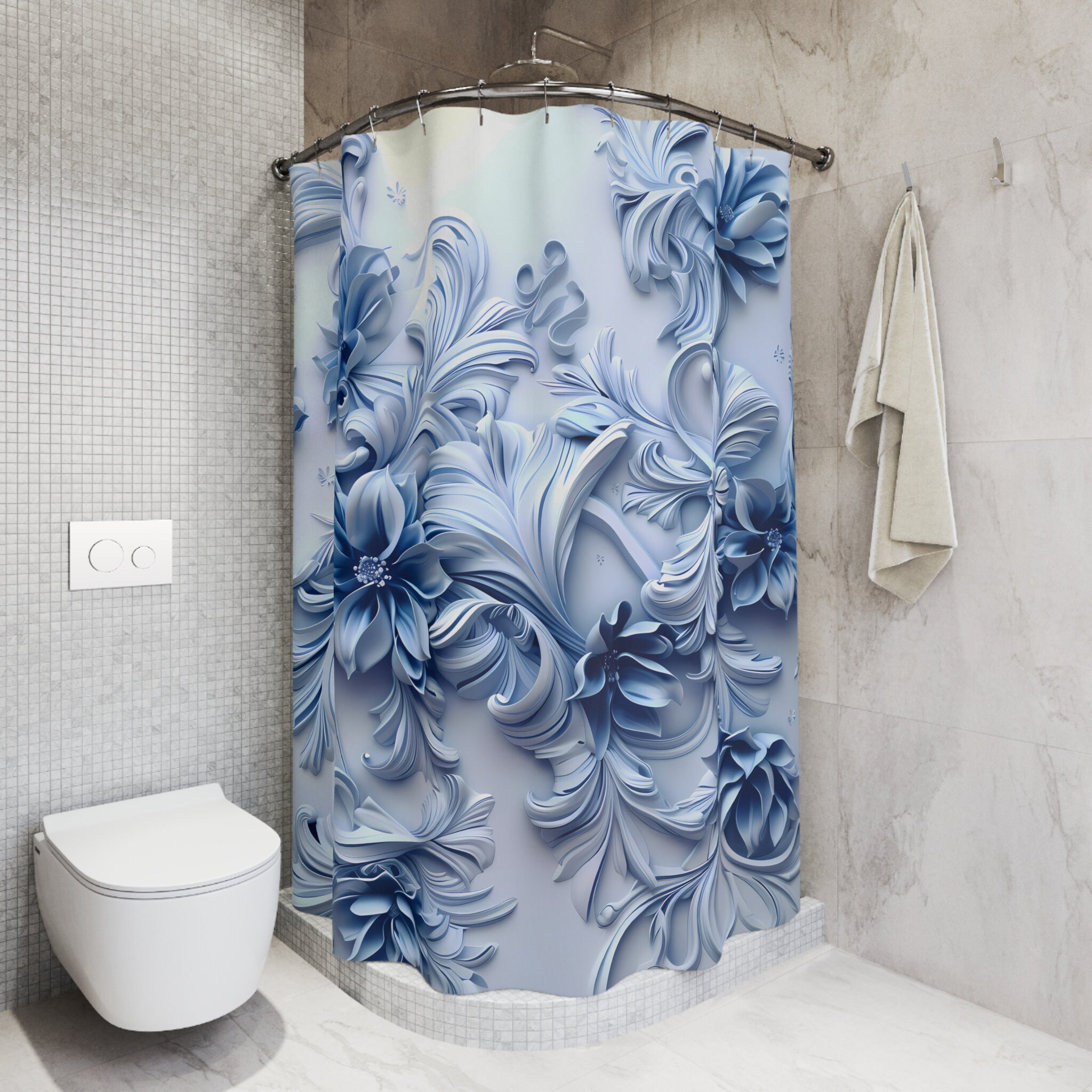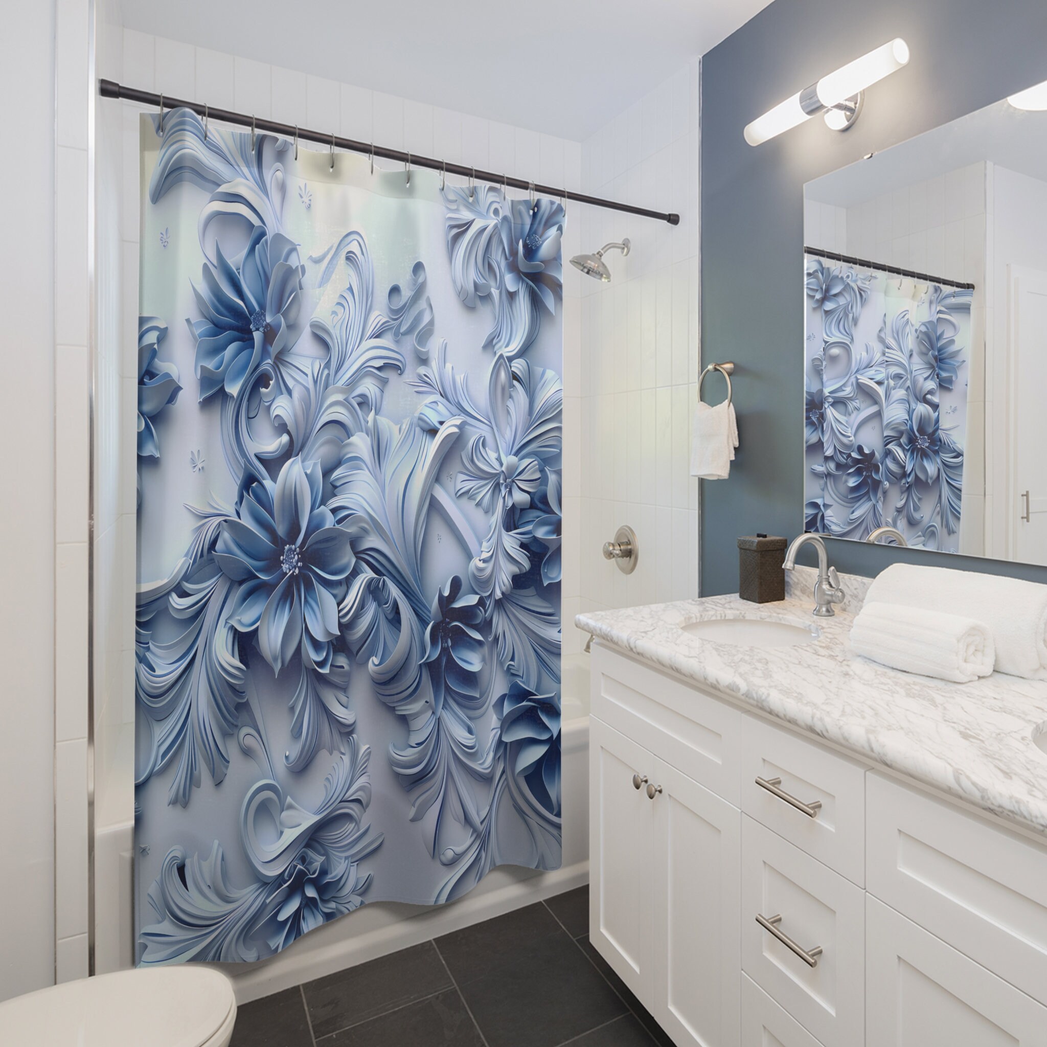 Transform your bathroom into a haven of enchantment with our blue flower 3D look shower curtain. Crafted to elevate your space with a touch of joy and serenity, our shower curtains are designed to make your showering experience truly delightful.