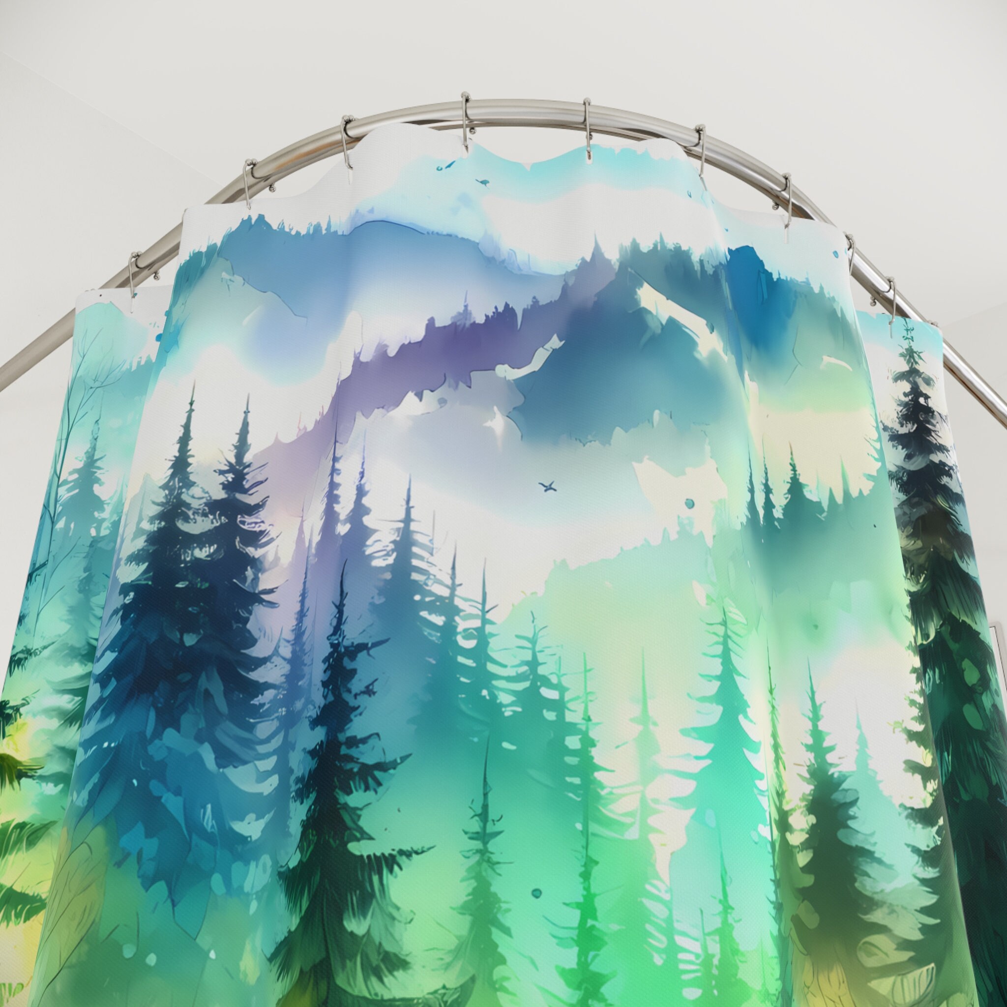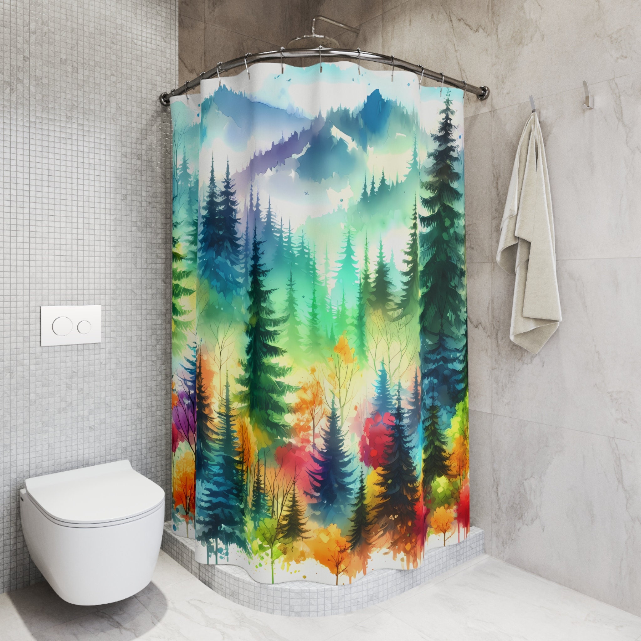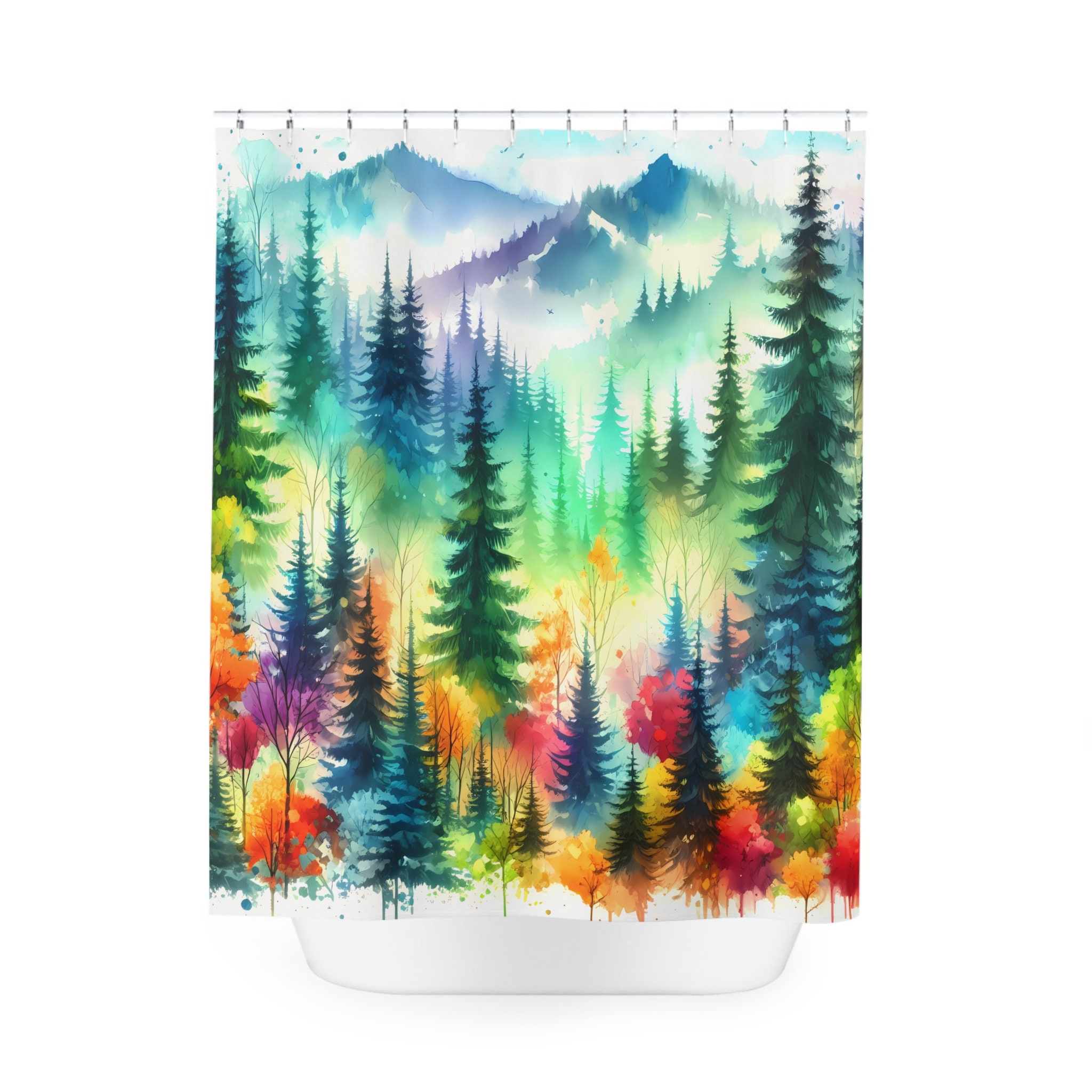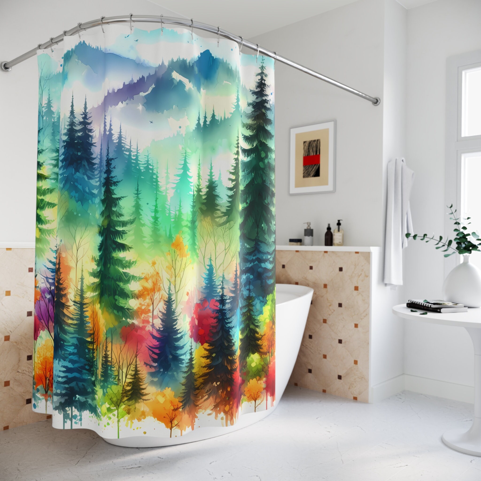 Transform your bathroom into a haven of enchantment with our "Colorful Vibrant Forest Landscape Shower Curtain." Crafted to elevate your space with a touch of joy and serenity, our shower curtains are designed to make your showering experience truly delightful.