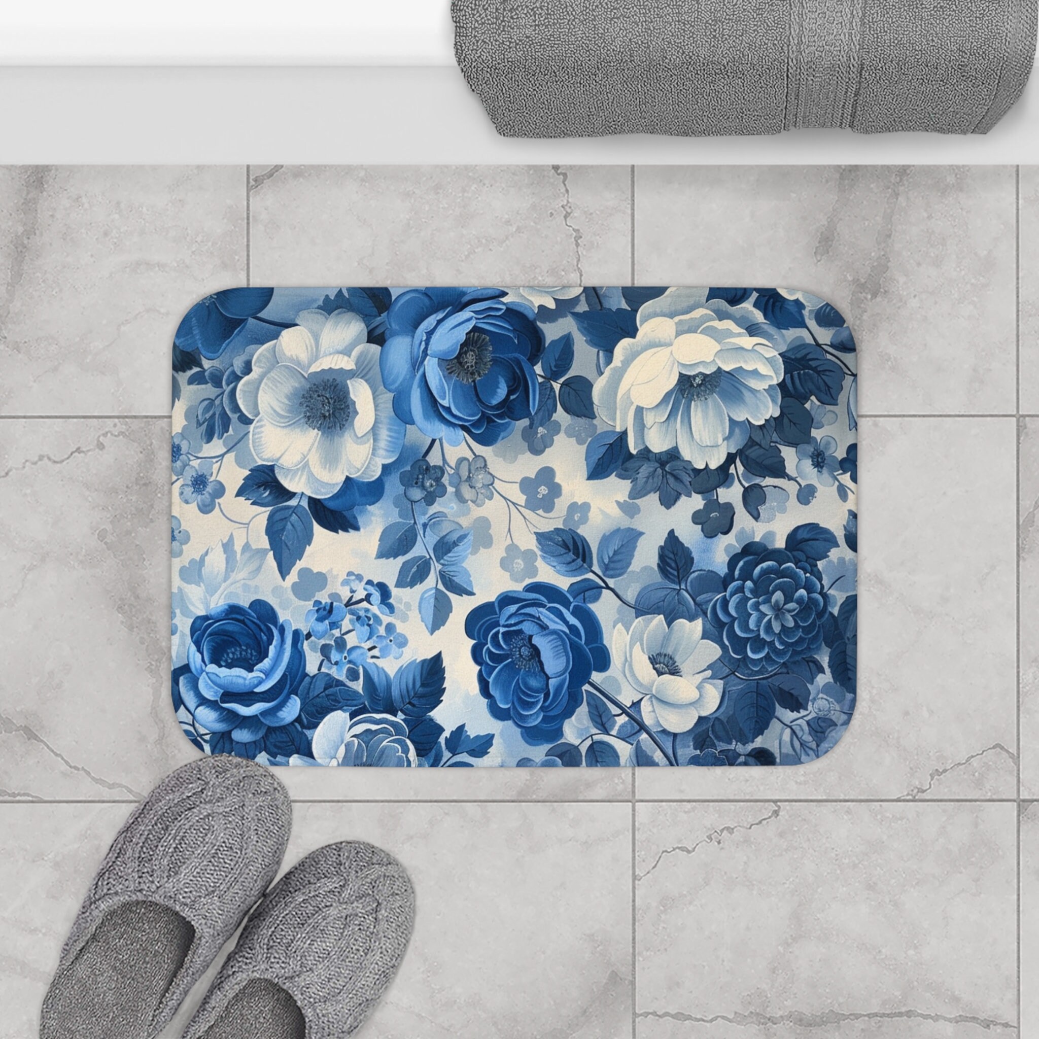 Introducing our stylish and practical blue white floral bath mat, designed to elevate your bathroom experience. The anti-slip backing ensures a secure placement, reducing the risk of slipping for added safety.
