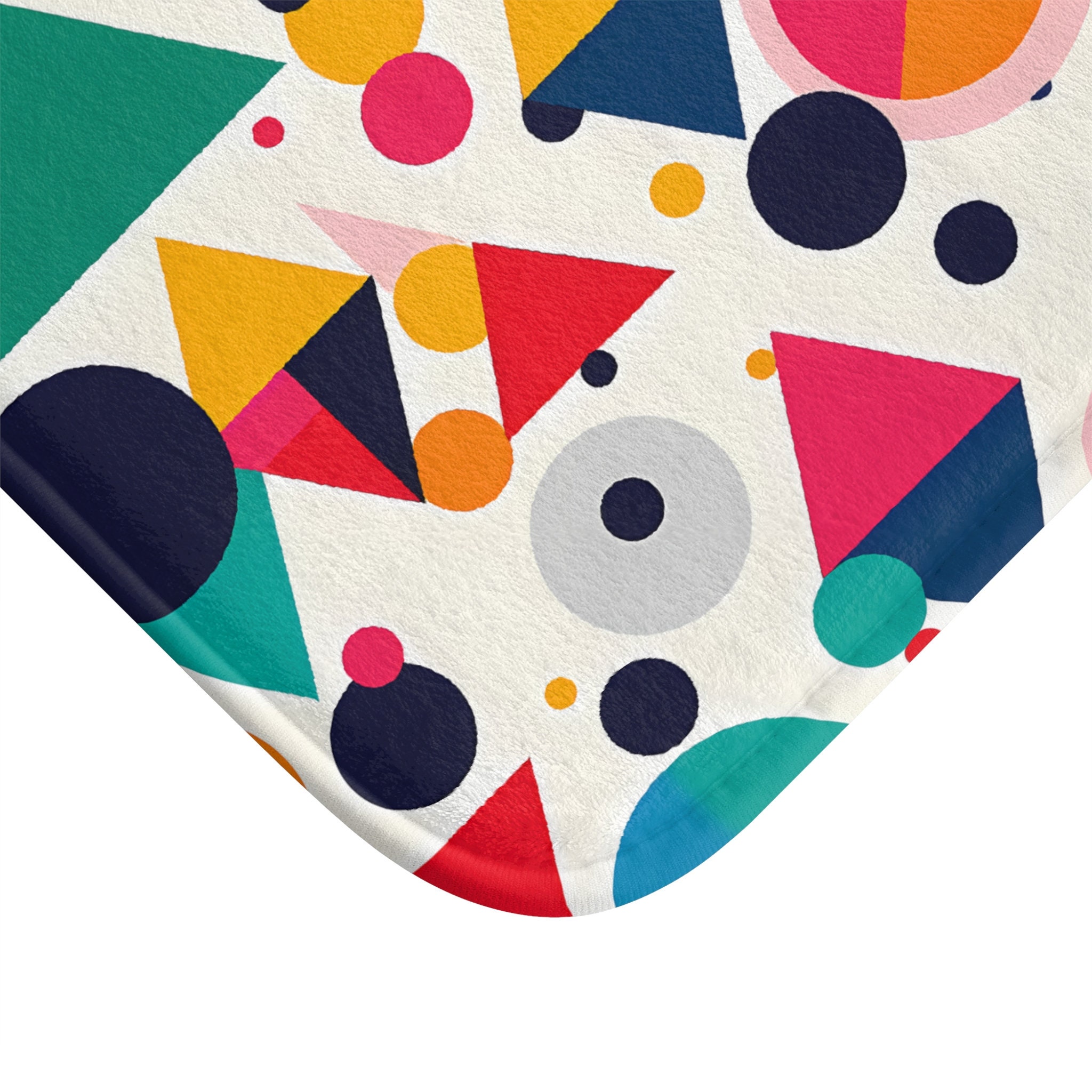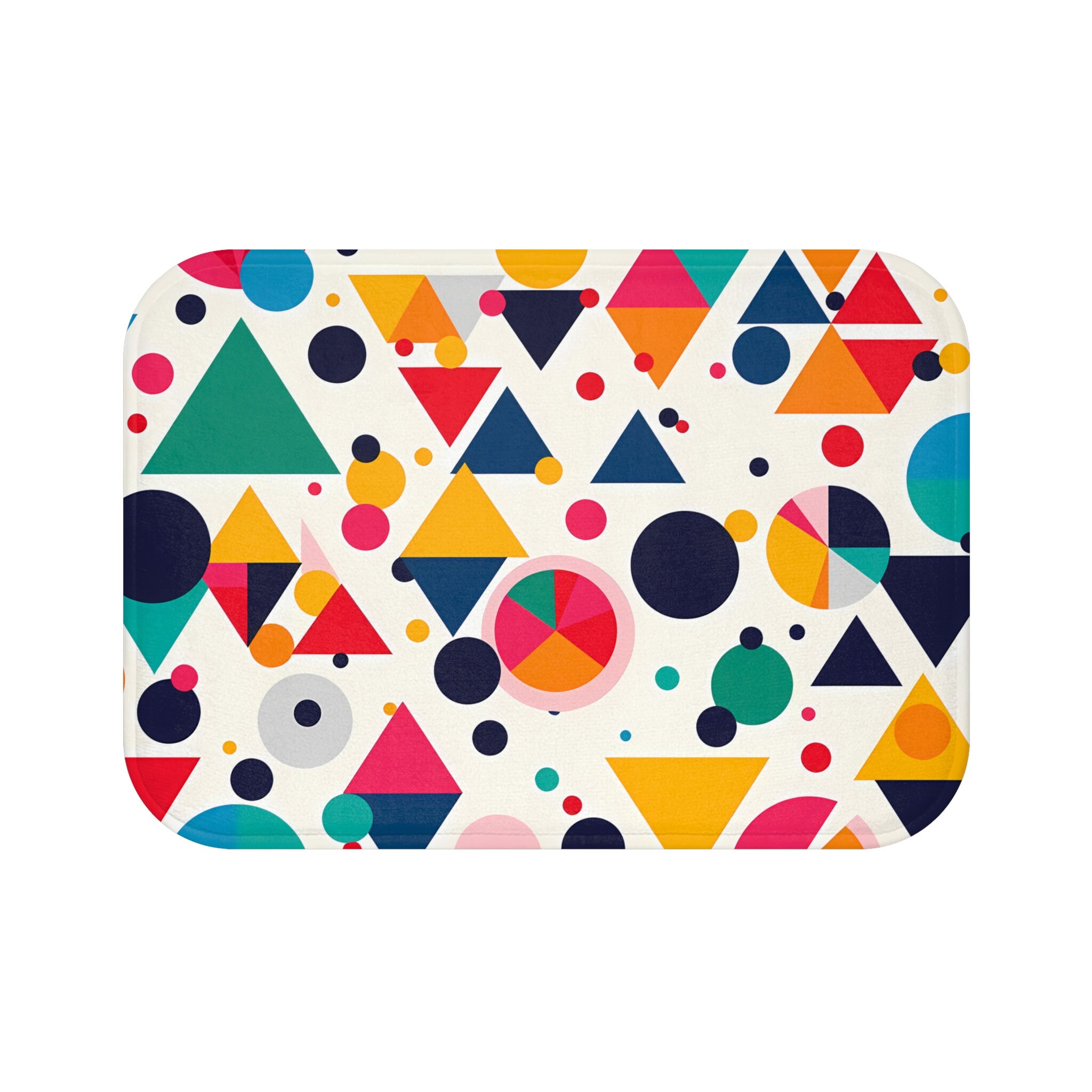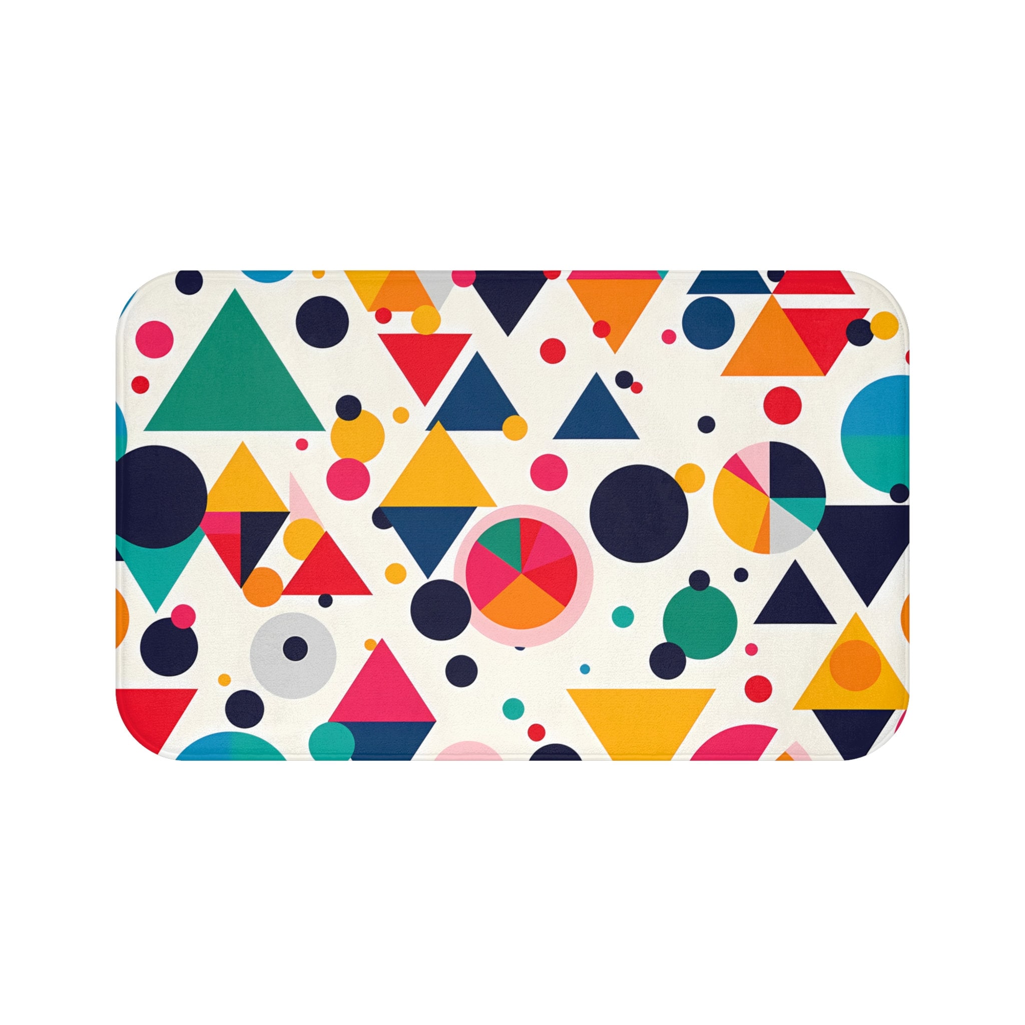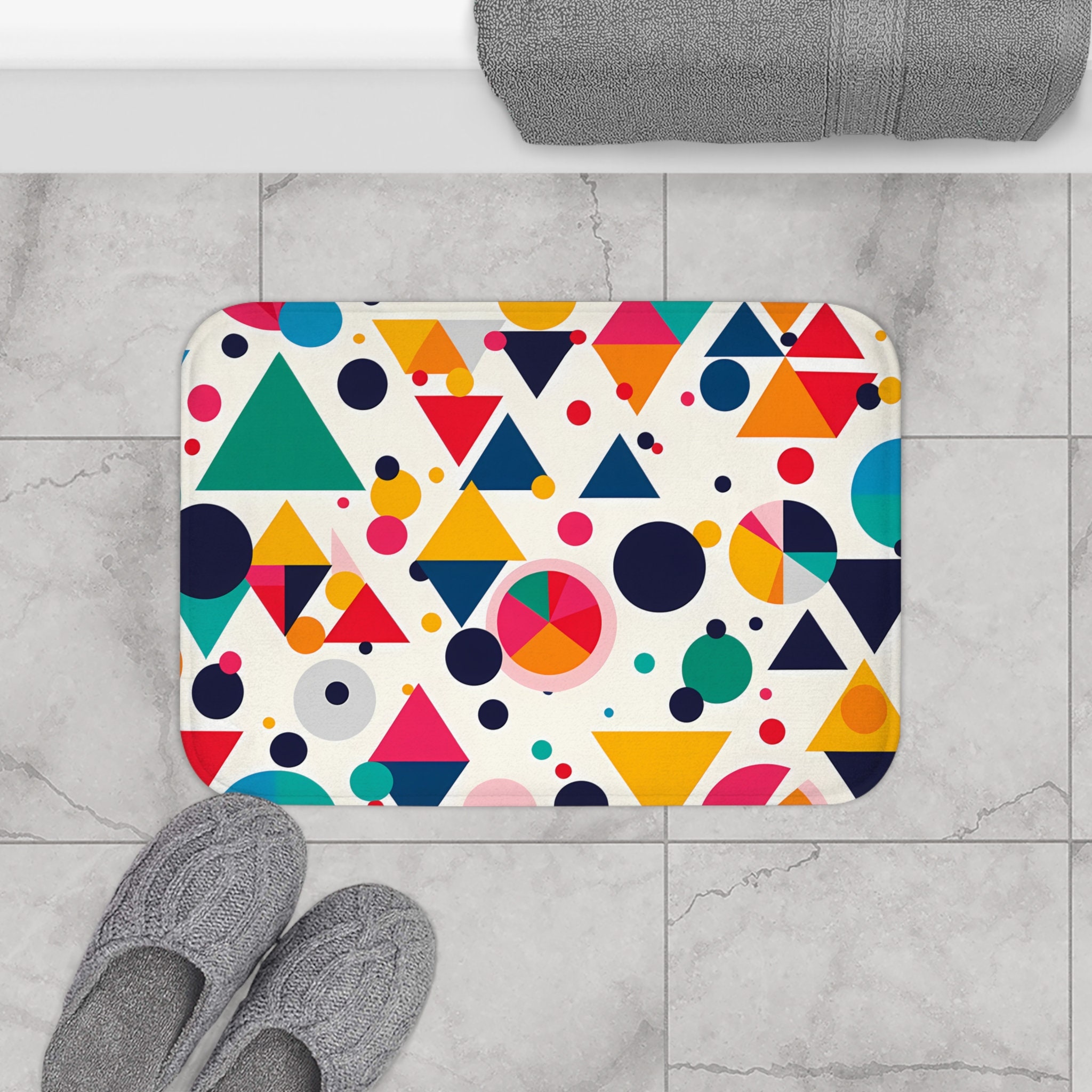 Introducing our stylish and practical "Geometric Cascade: Circles and Triangles Memory Bath Mat," designed to elevate your bathroom experience. The anti-slip backing ensures a secure placement, reducing the risk of slipping for added safety.