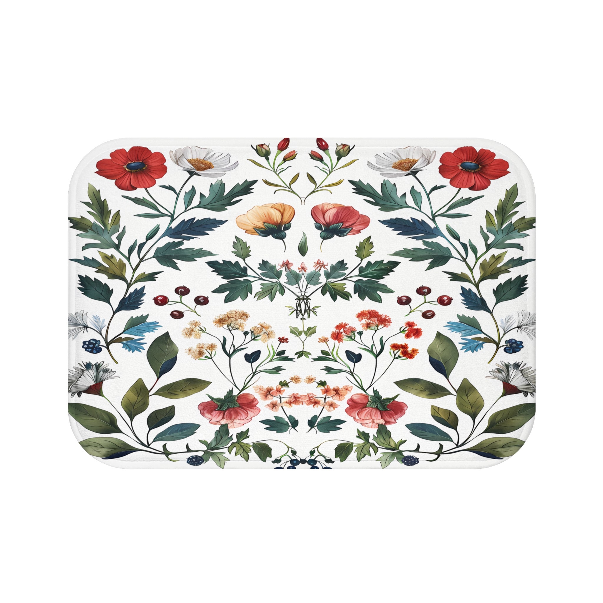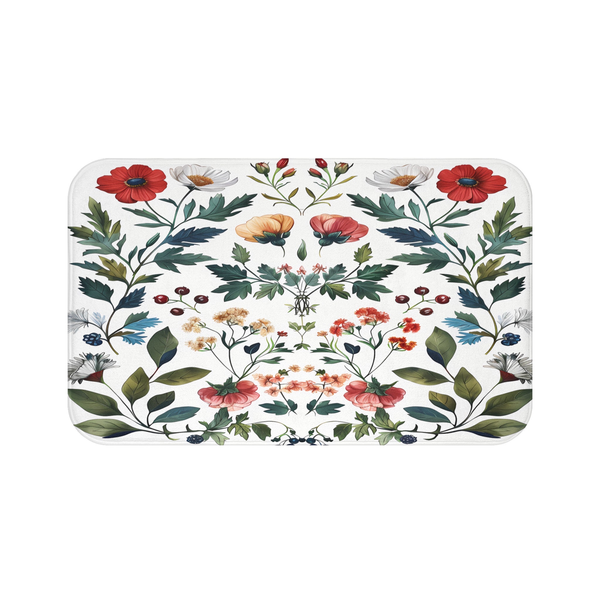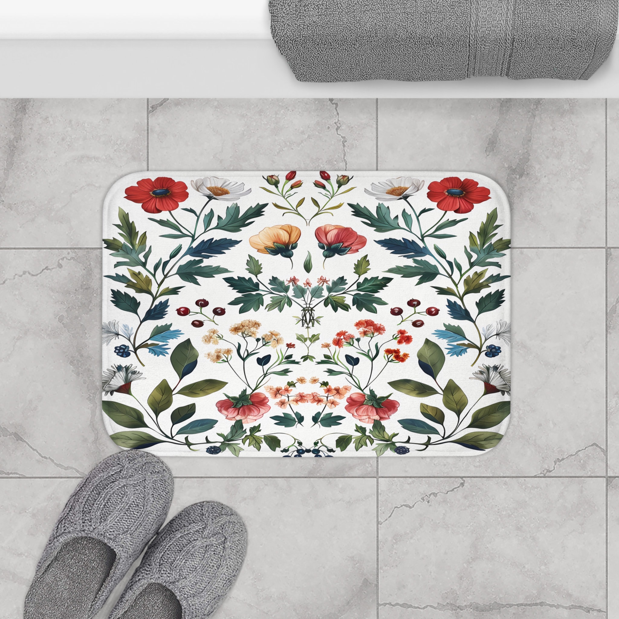 Harmony In Bloom Floral Bath Mat" is designed to elevate your bathroom experience. The anti-slip backing ensures a secure placement, reducing the risk of slipping for added safety.