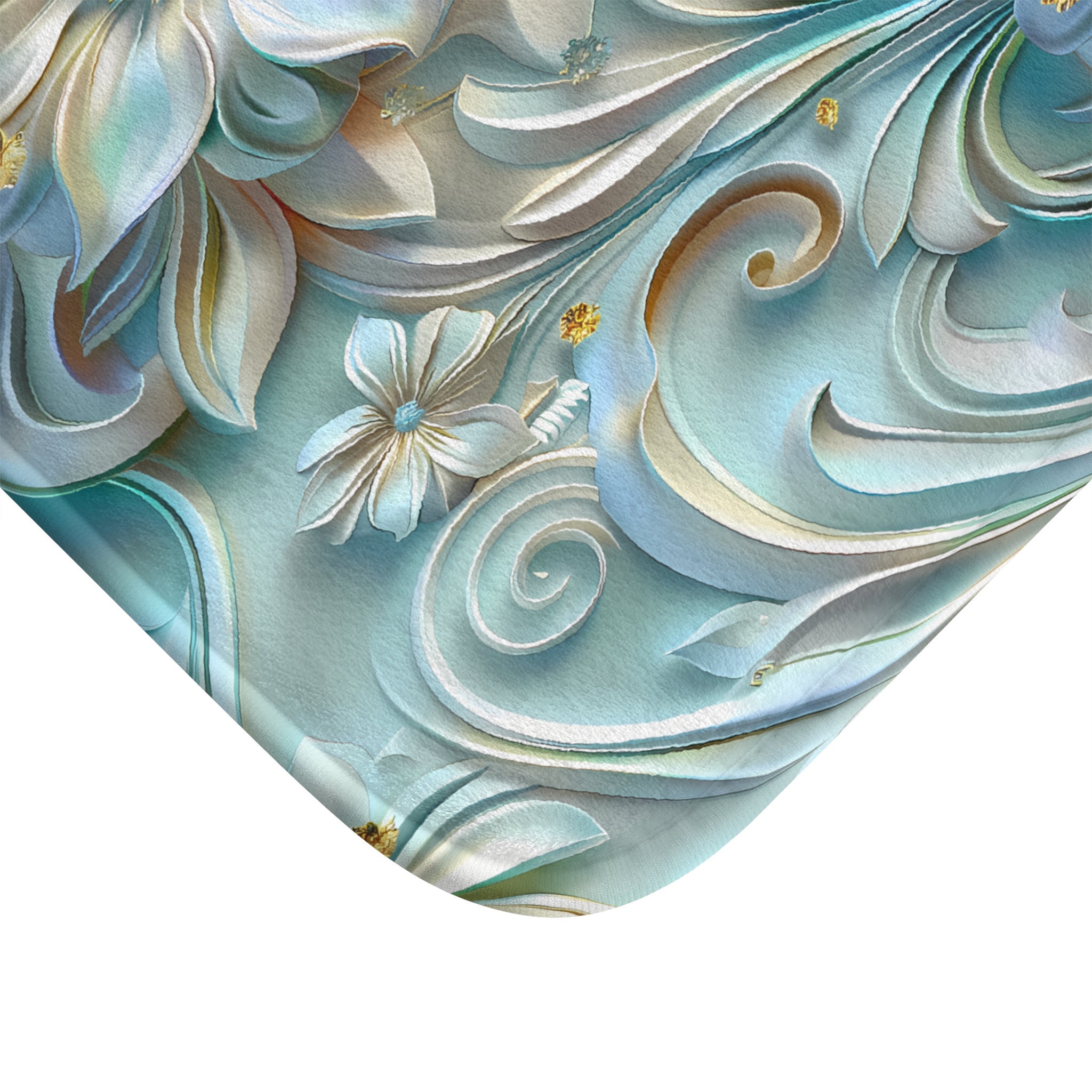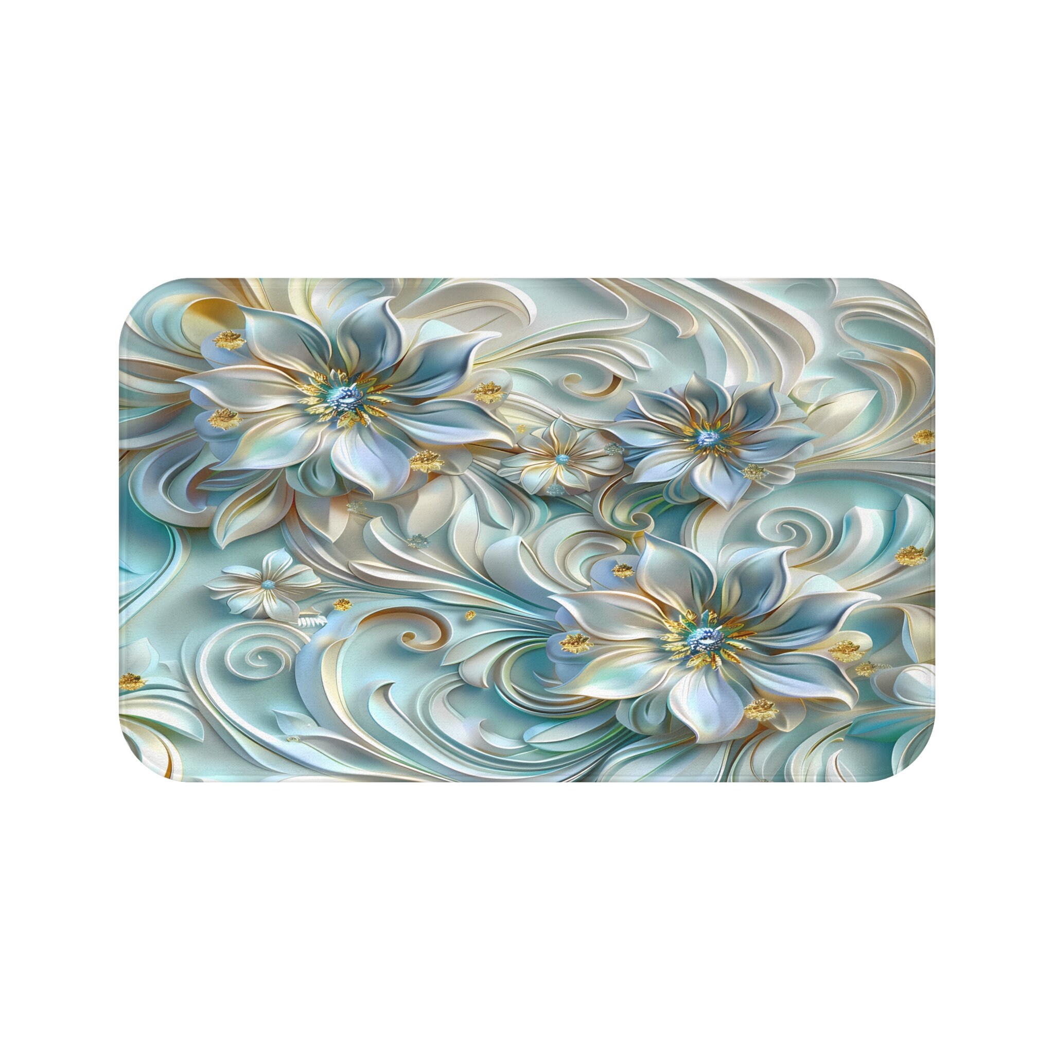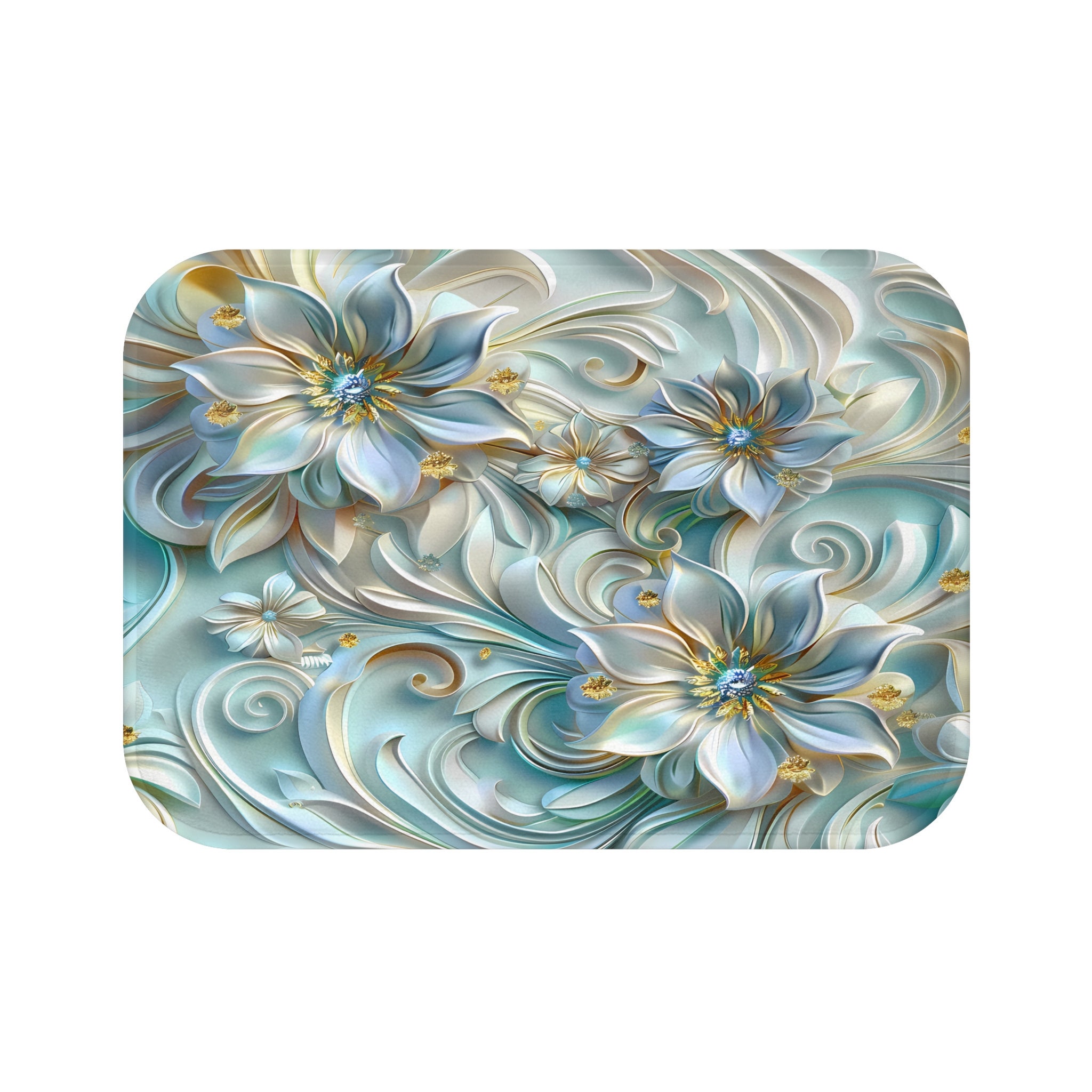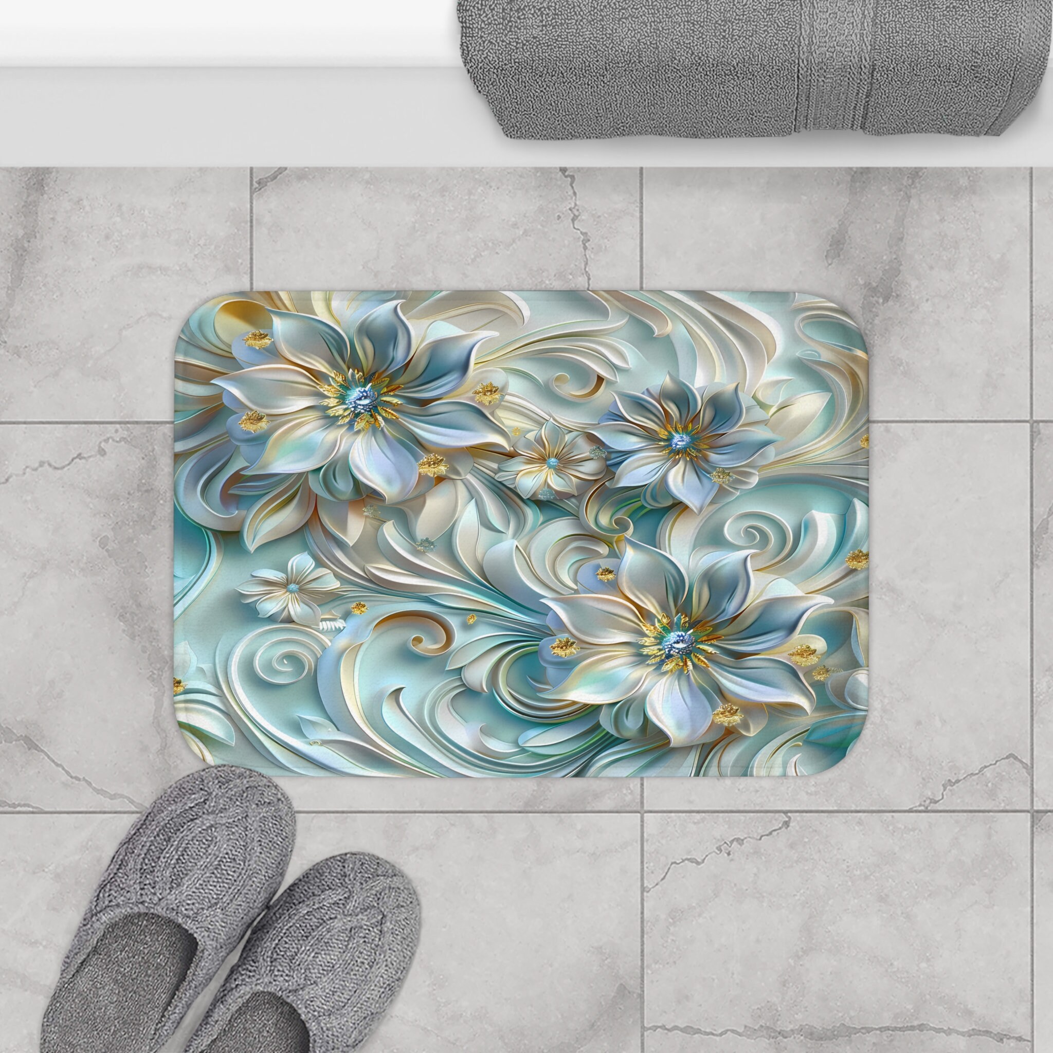 Floral Oasis 3D Light Blue Flower Bath Mat" is designed to elevate your bathroom experience. The anti-slip backing ensures a secure placement, reducing the risk of slipping for added safety.