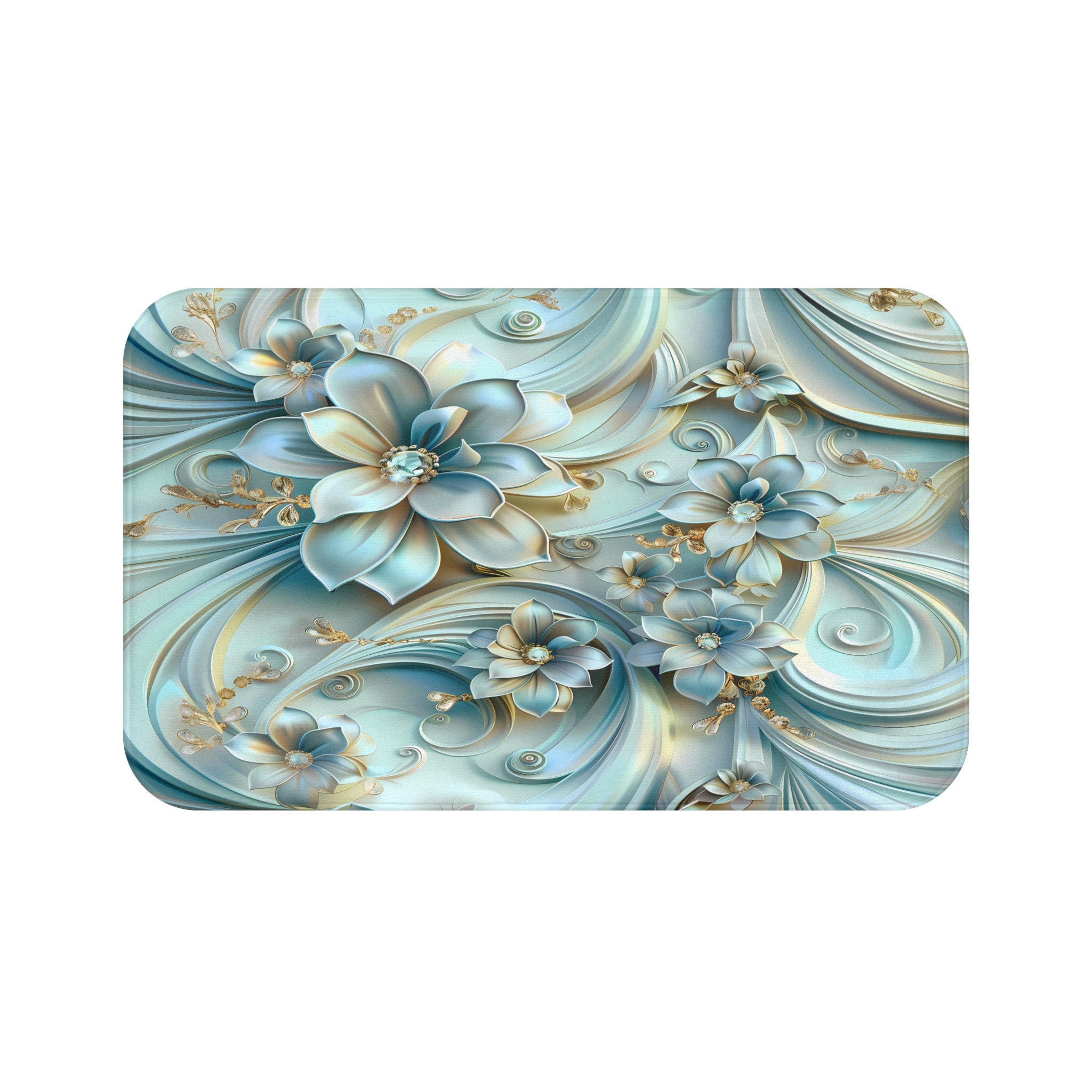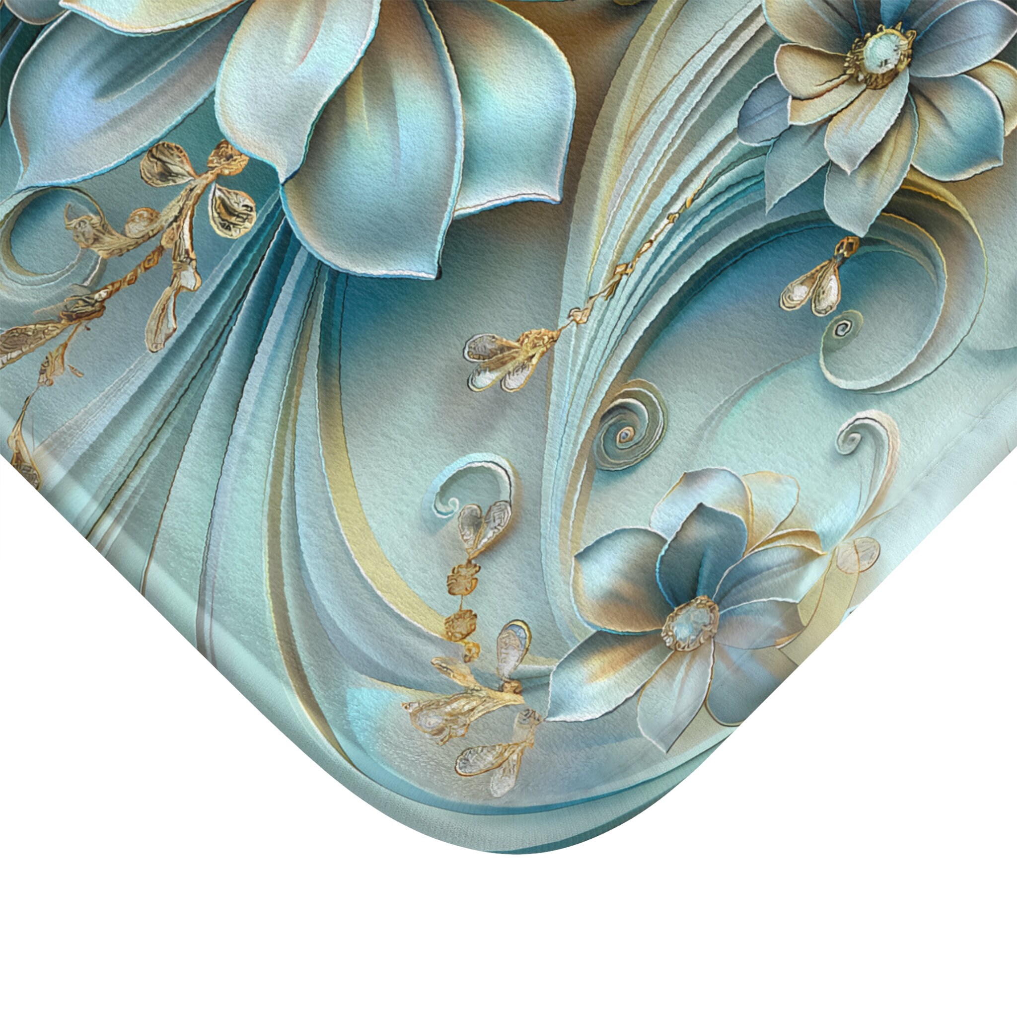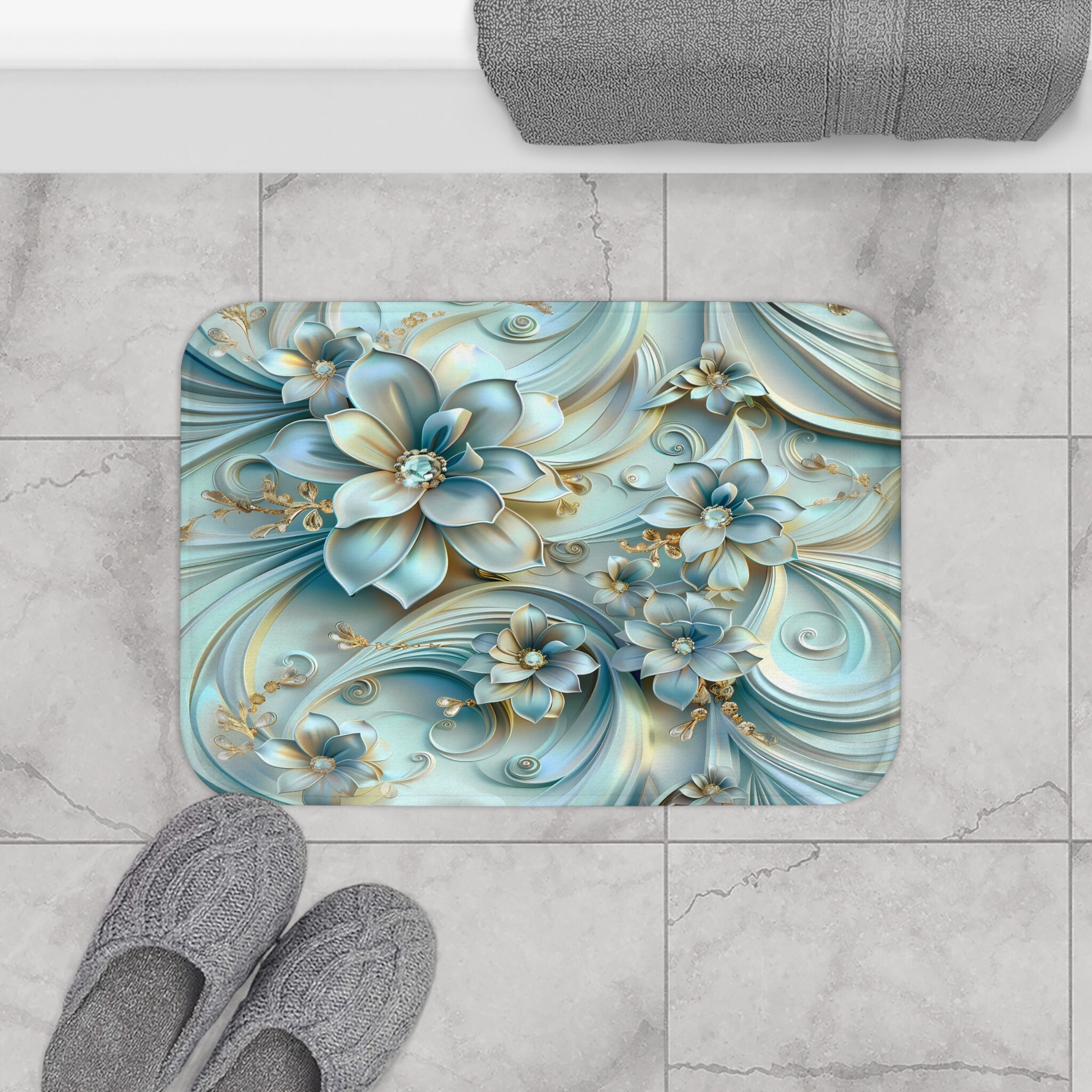 Tranquil Blooms 3D Blue Flower Bath Mat" is designed to elevate your bathroom experience. The anti-slip backing ensures a secure placement, reducing the risk of slipping for added safety.