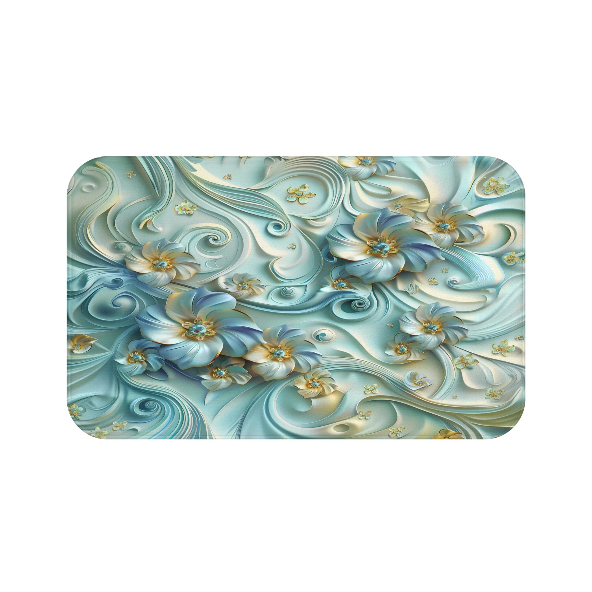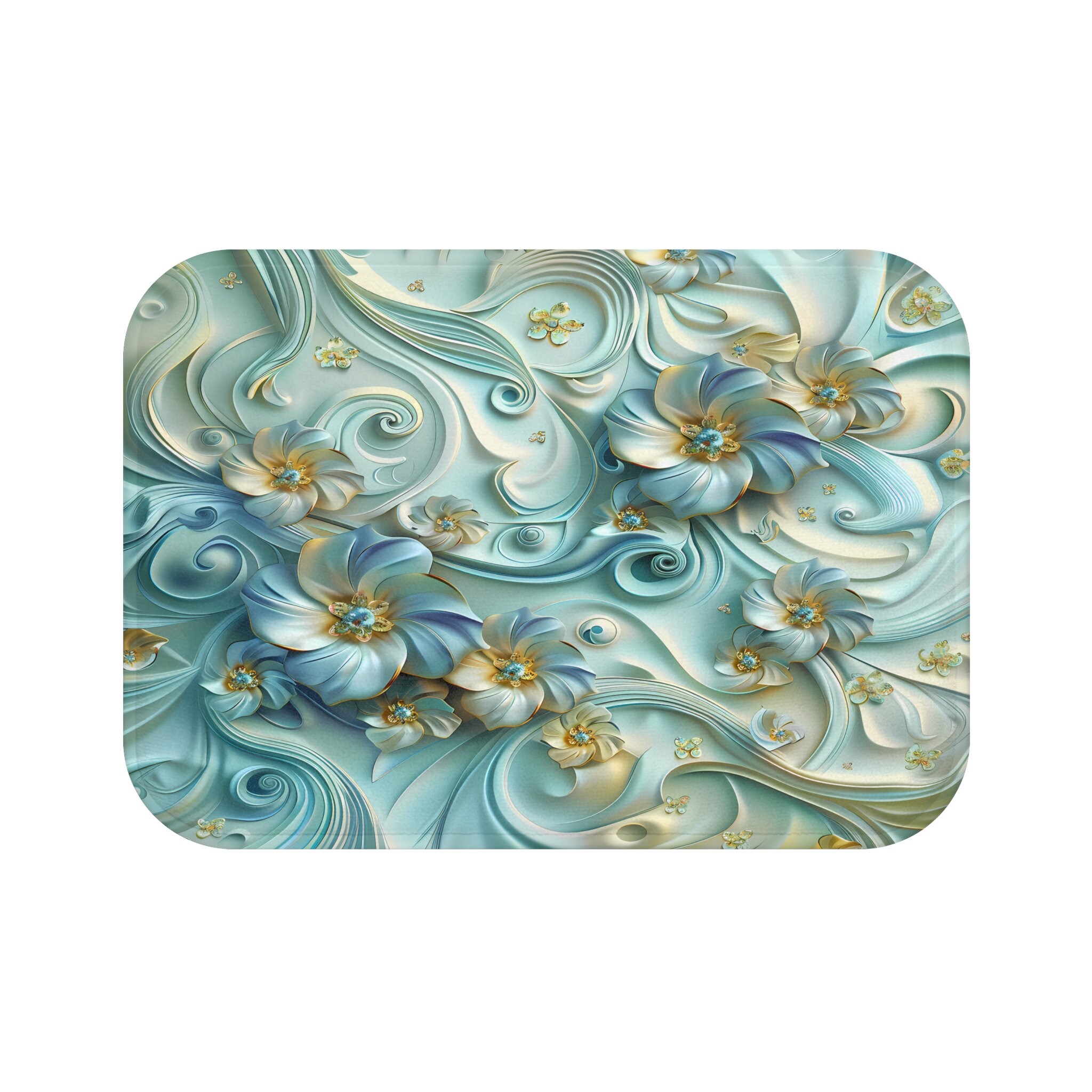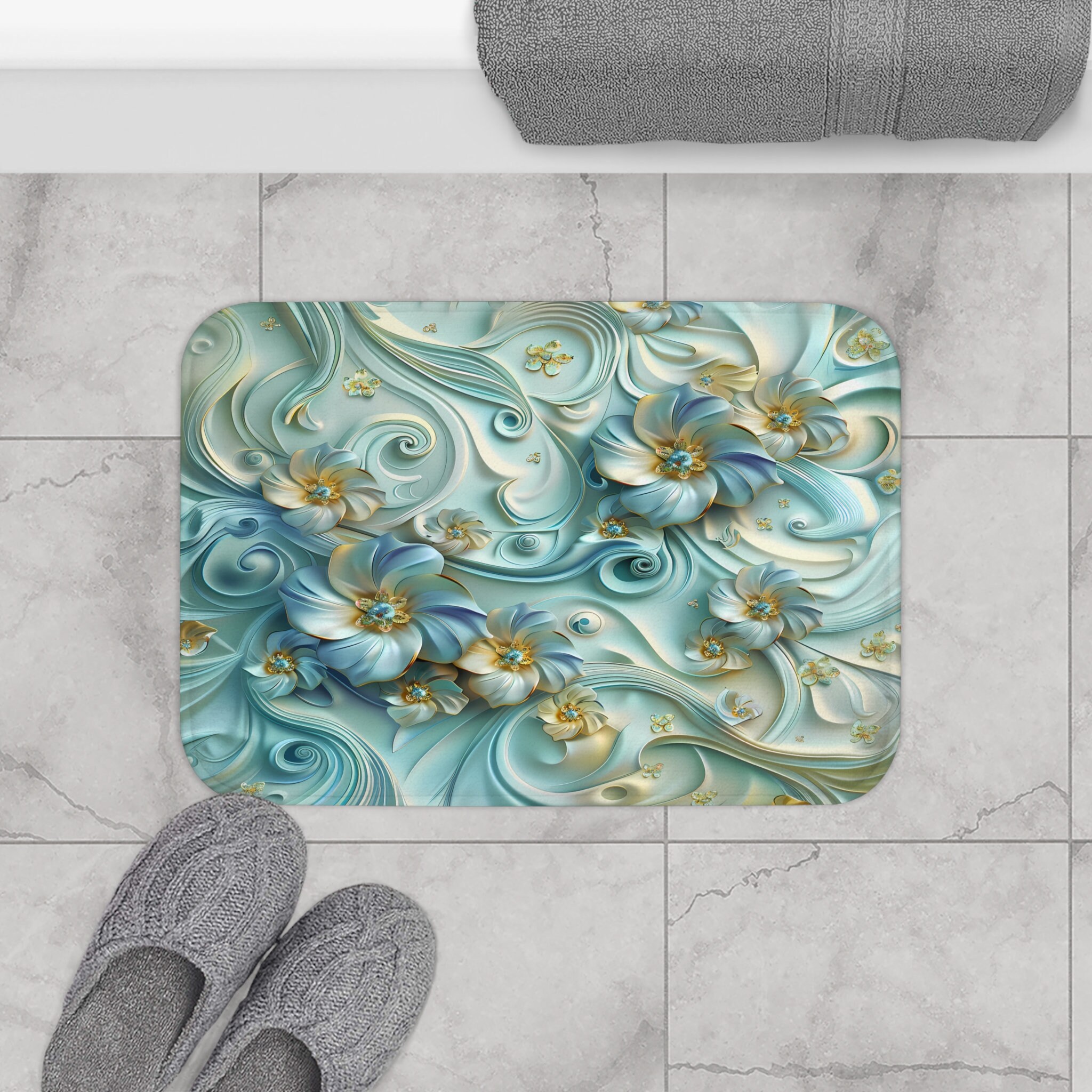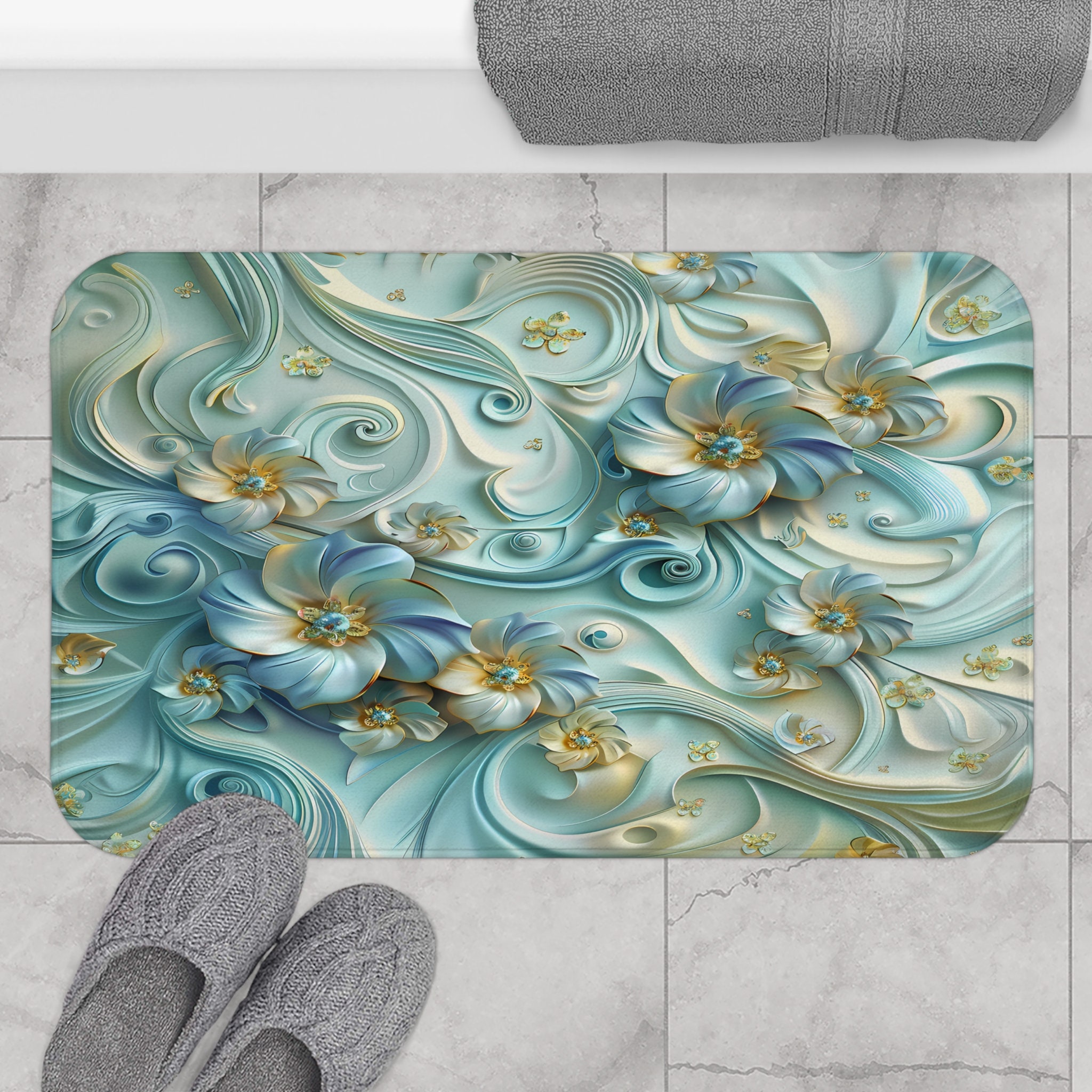 Blossoming Bliss Light Blue 3D Flower Bath Mat" is designed to elevate your bathroom experience. The anti-slip backing ensures a secure placement, reducing the risk of slipping for added safety.