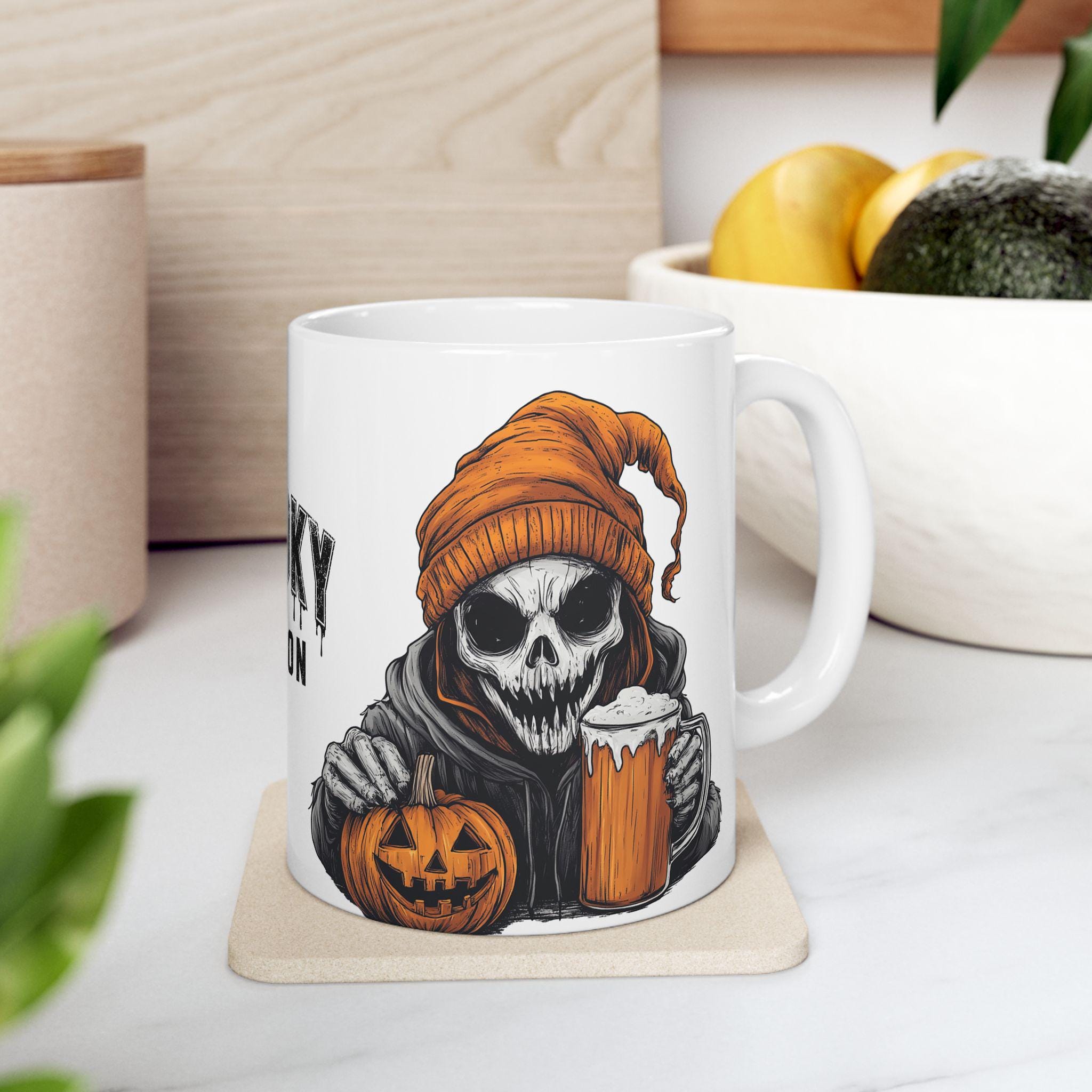 Spooky Ghost Pumpkin Mug is the perfect addition to your Halloween decor. Enjoy your favorite hot beverage in this festive mug, featuring a spooky ghost and pumpkin design. Great for Halloween enthusiasts and those who love all things creepy.