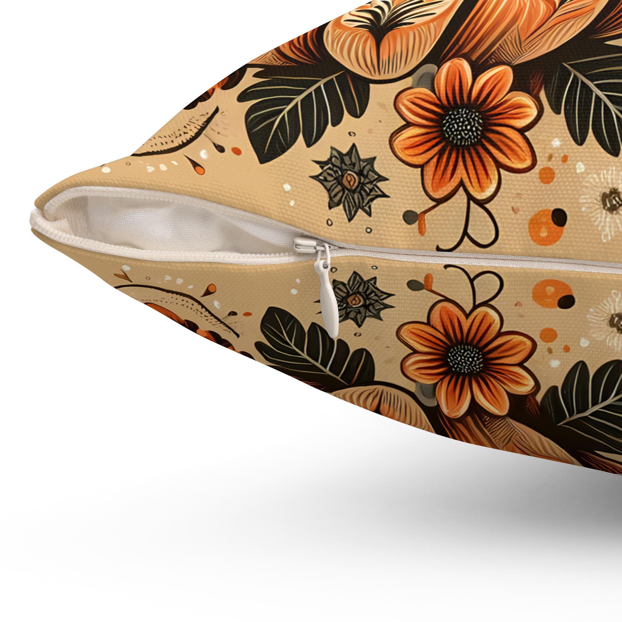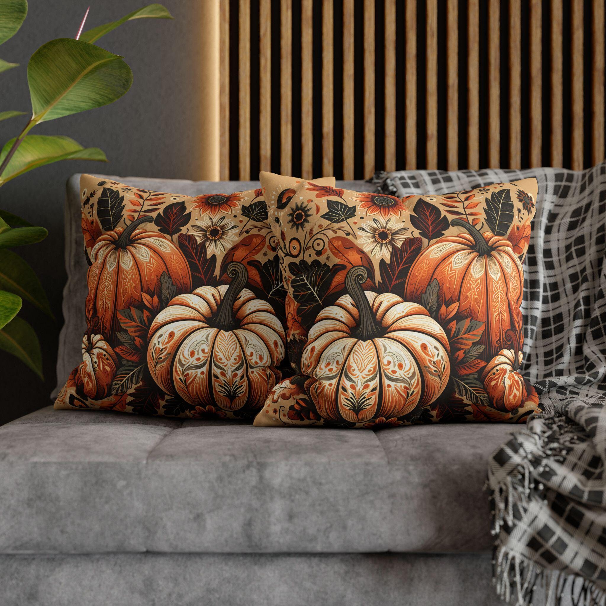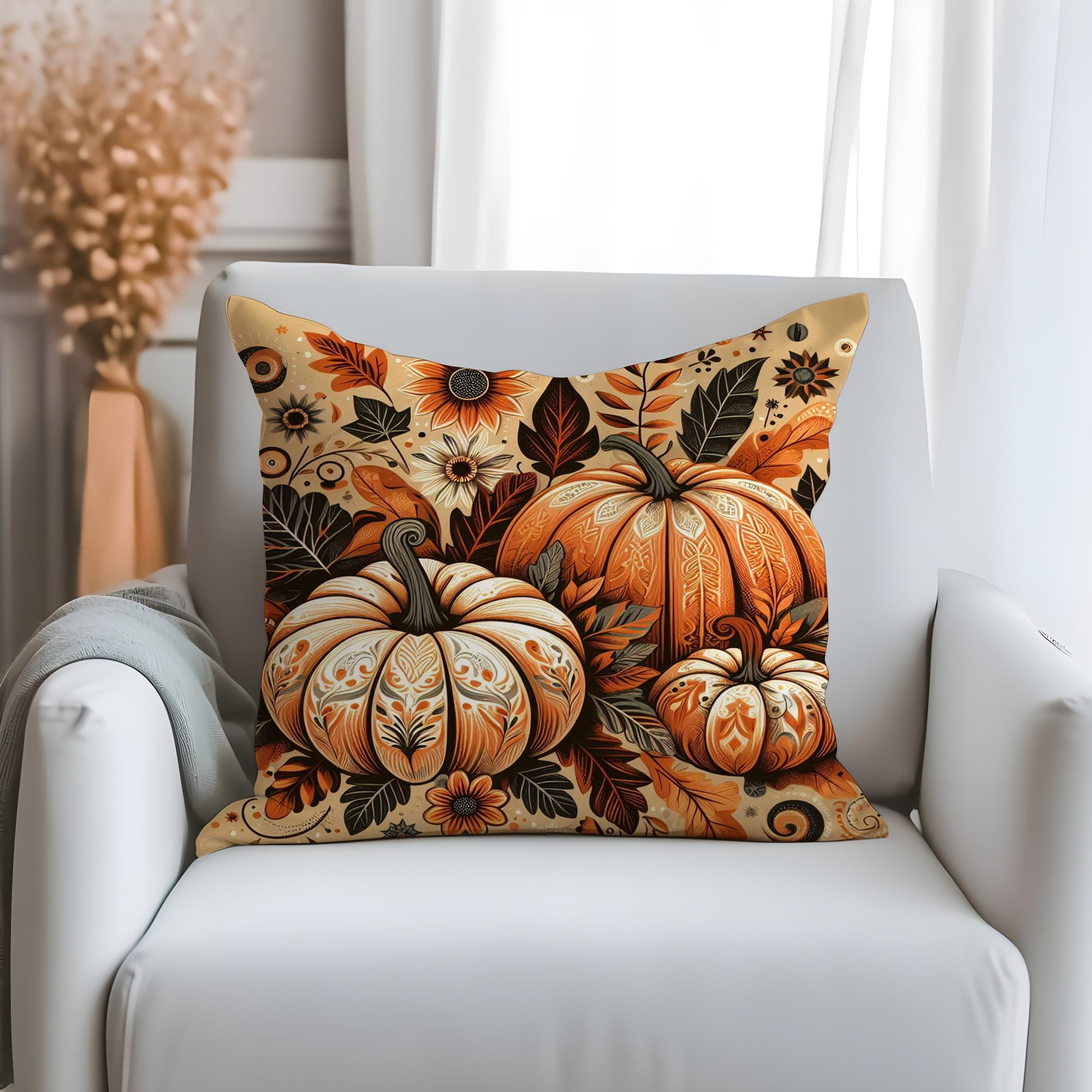 Autumn Harvest Pumpkin Floral Decorative Square Pillow – Fall Boho Chic Accent Cushion. This pillow gives off a cozy autumn vibe, perfect for adding a touch of boho chic to your fall decor. Ideal for those who love fall-themed decorations and want to create a warm and inviting atmosphere in their home. Relevant for Thanksgiving, Halloween, and general fall decor.