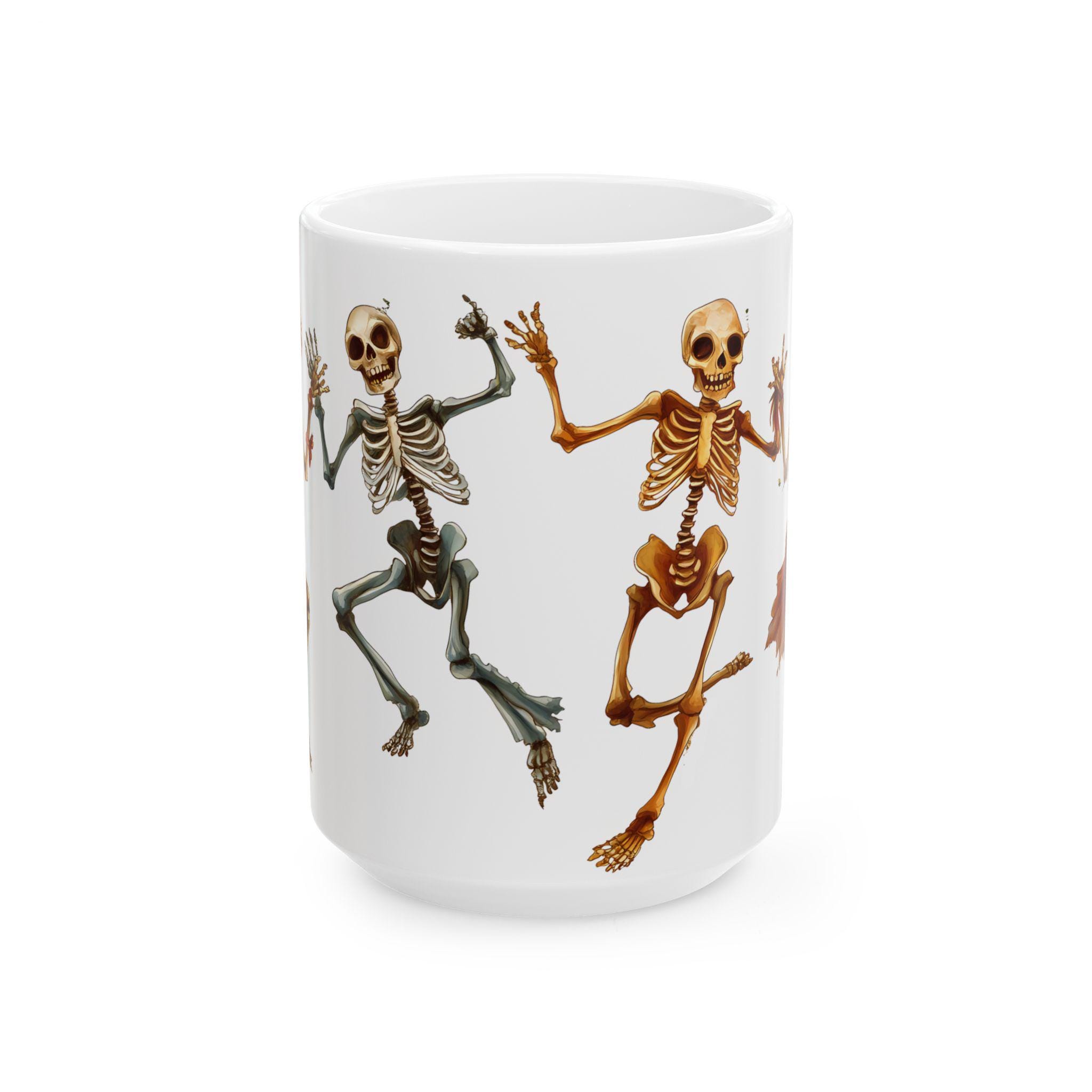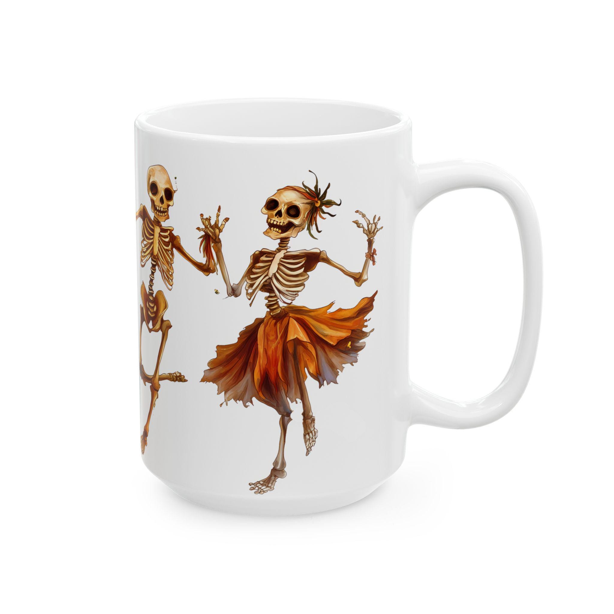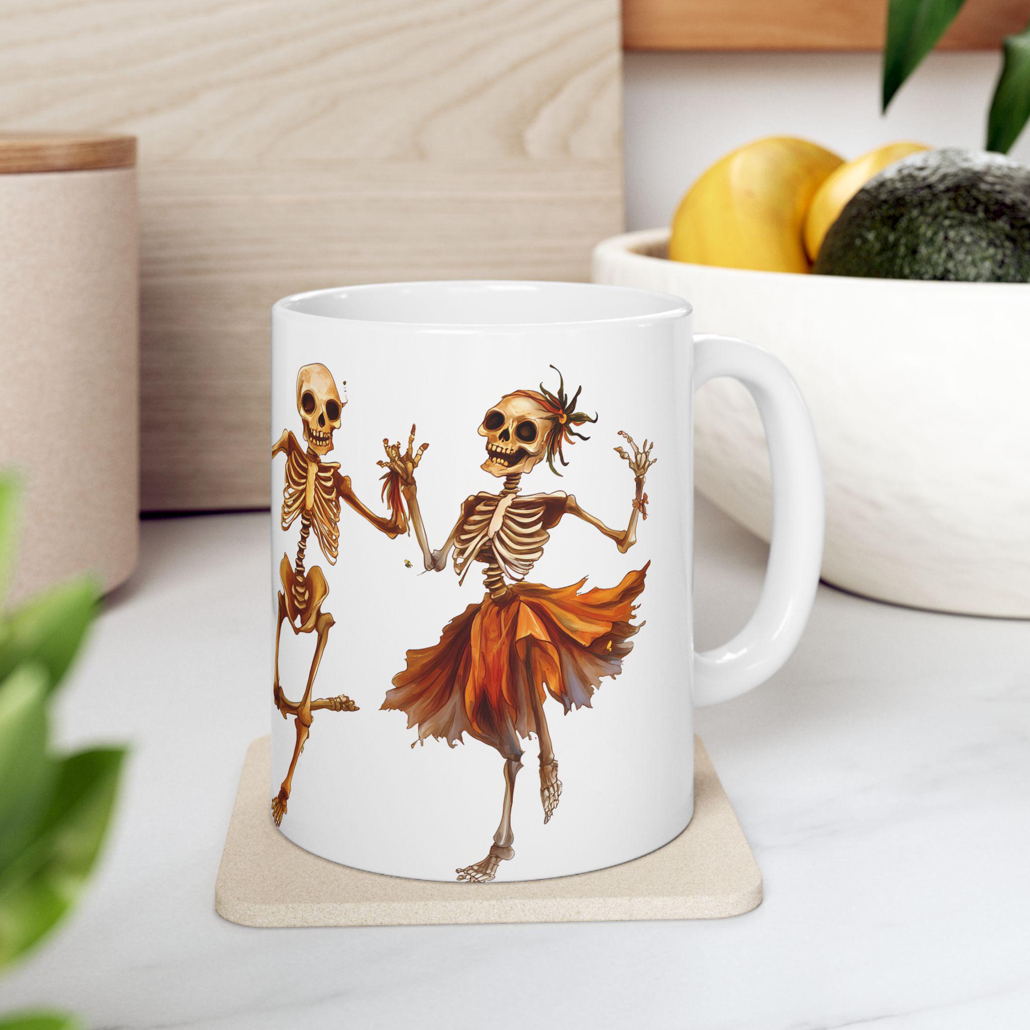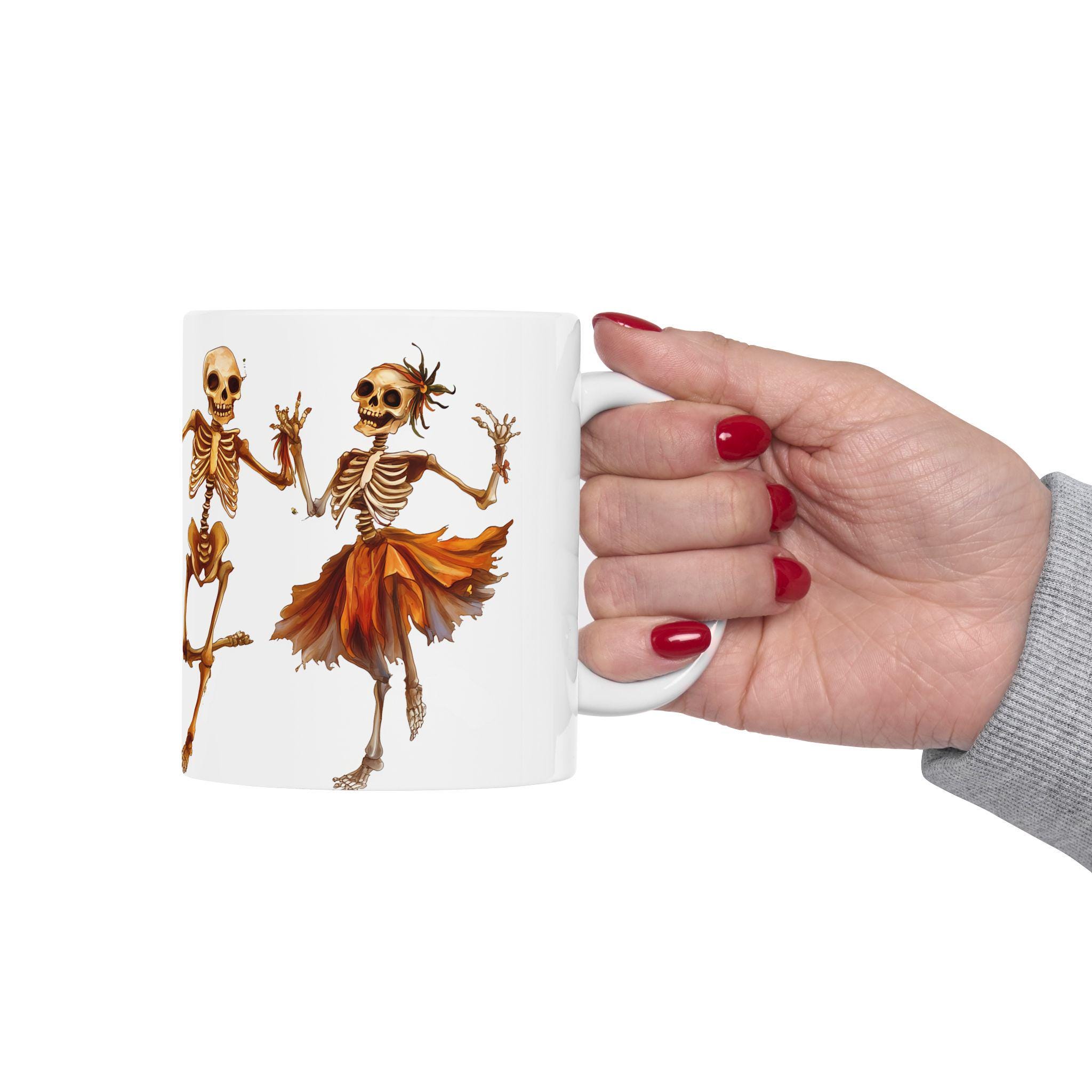 Dancing Skeletons Ceramic Mug: Spooky Halloween Coffee Cup