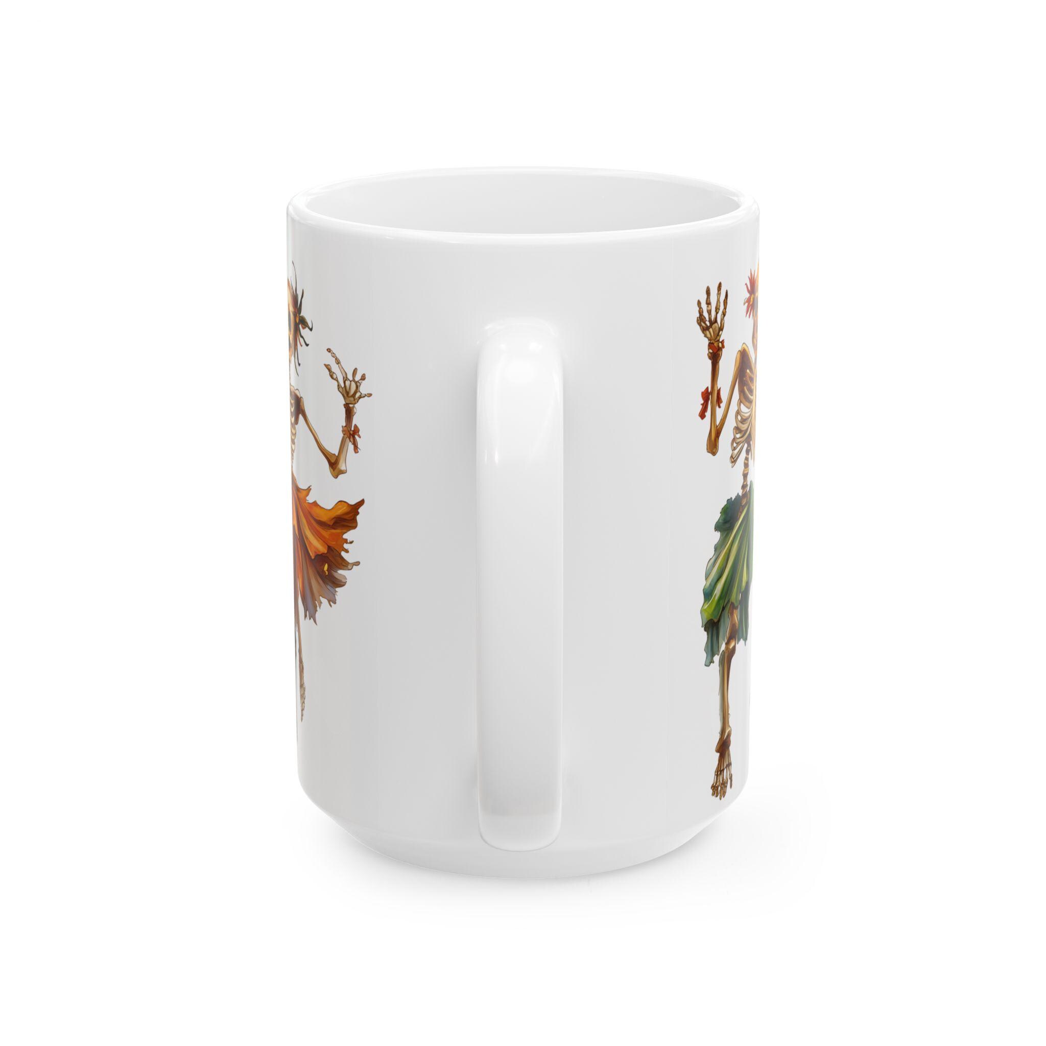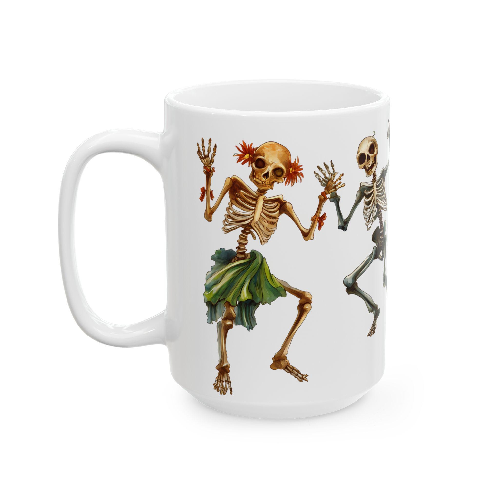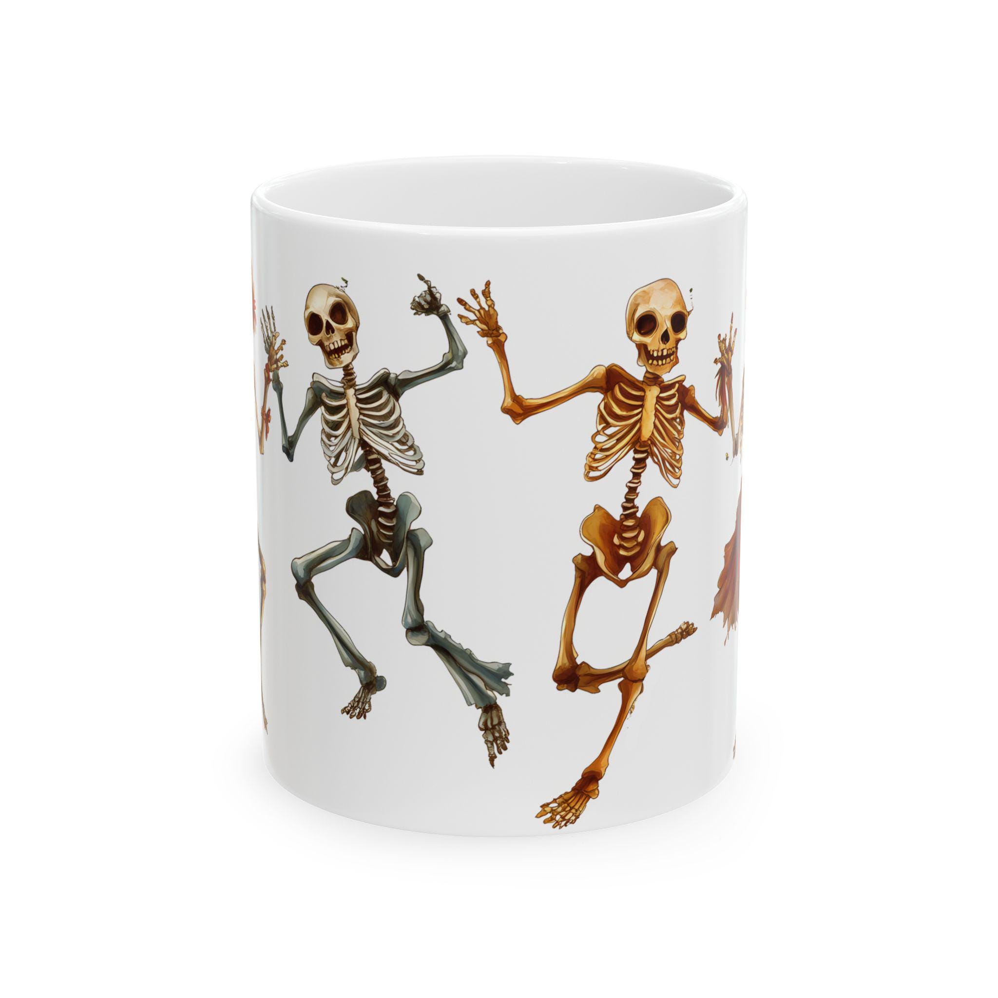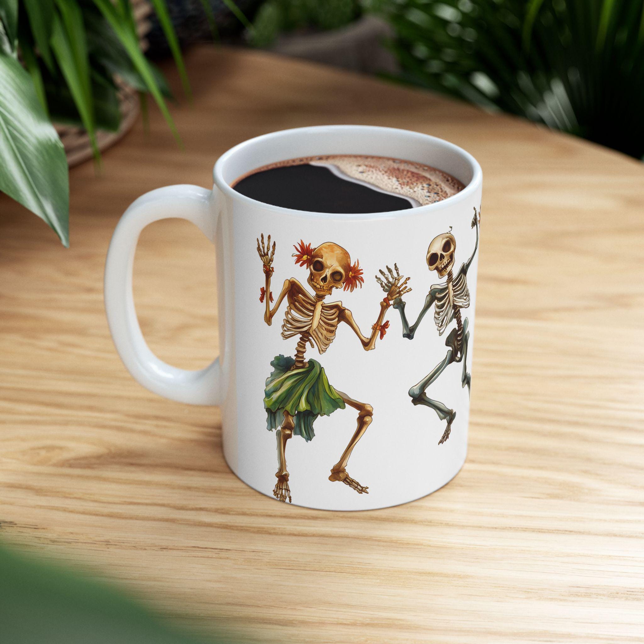Dancing Skeletons Ceramic Mug: Spooky Halloween Coffee Cup
