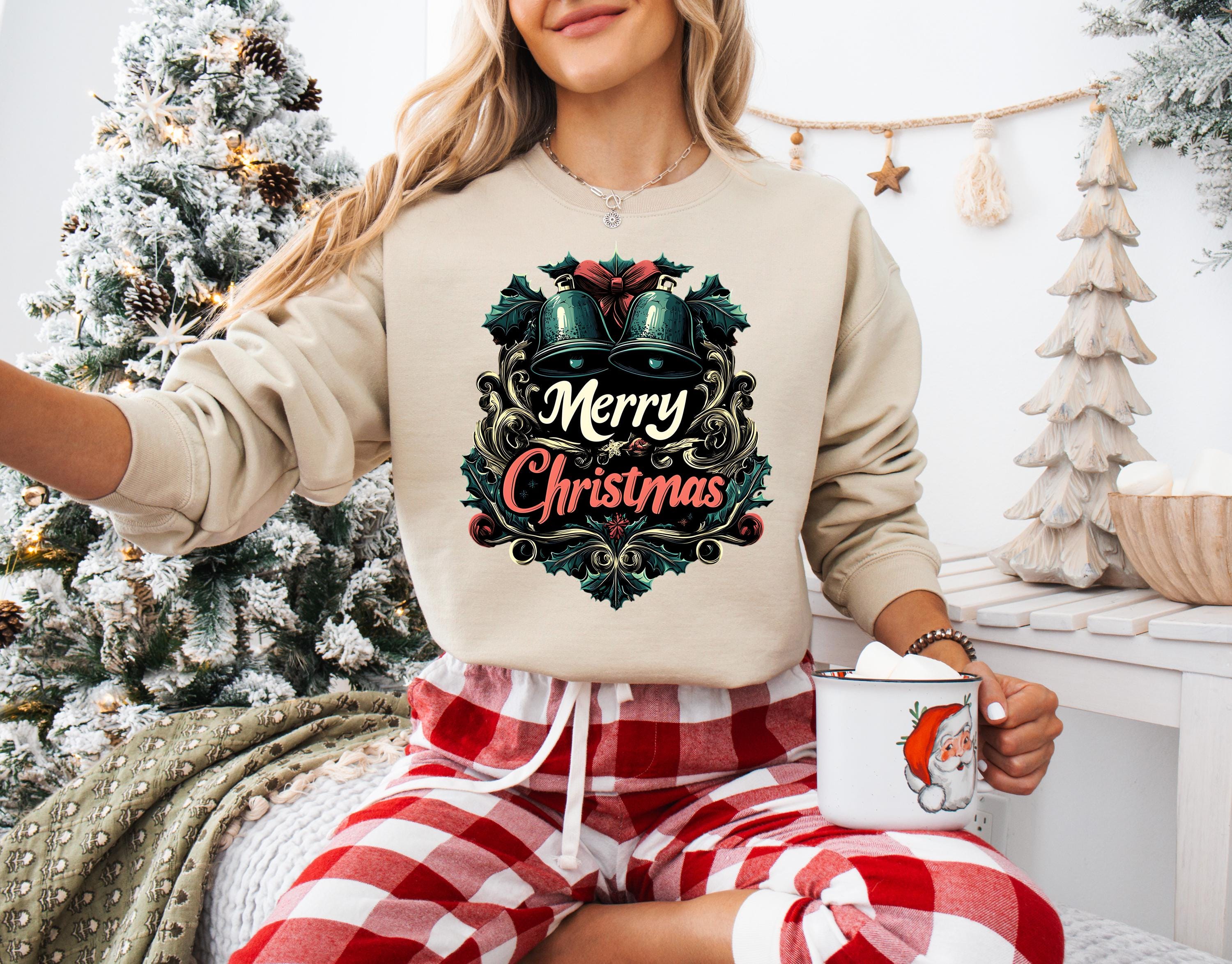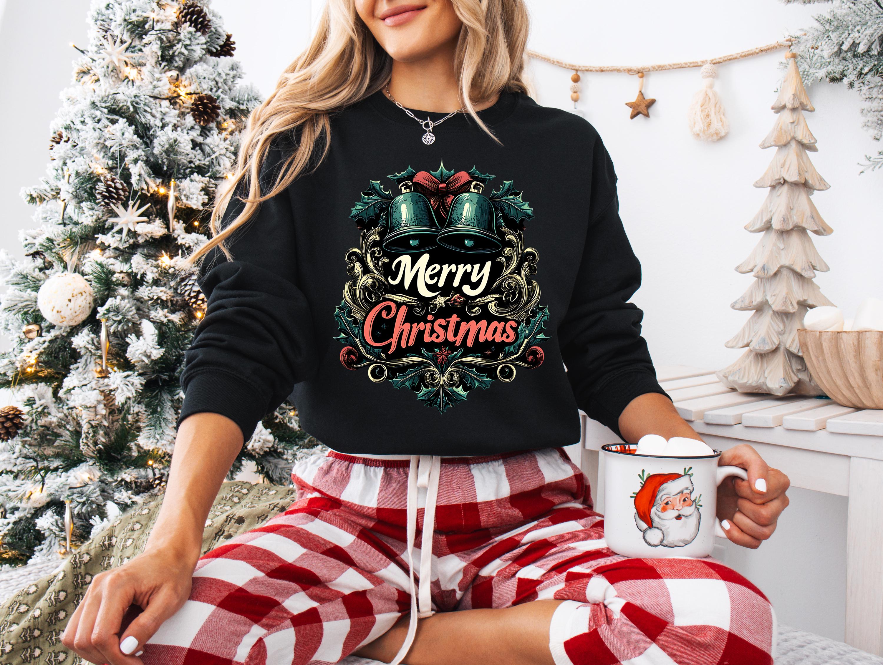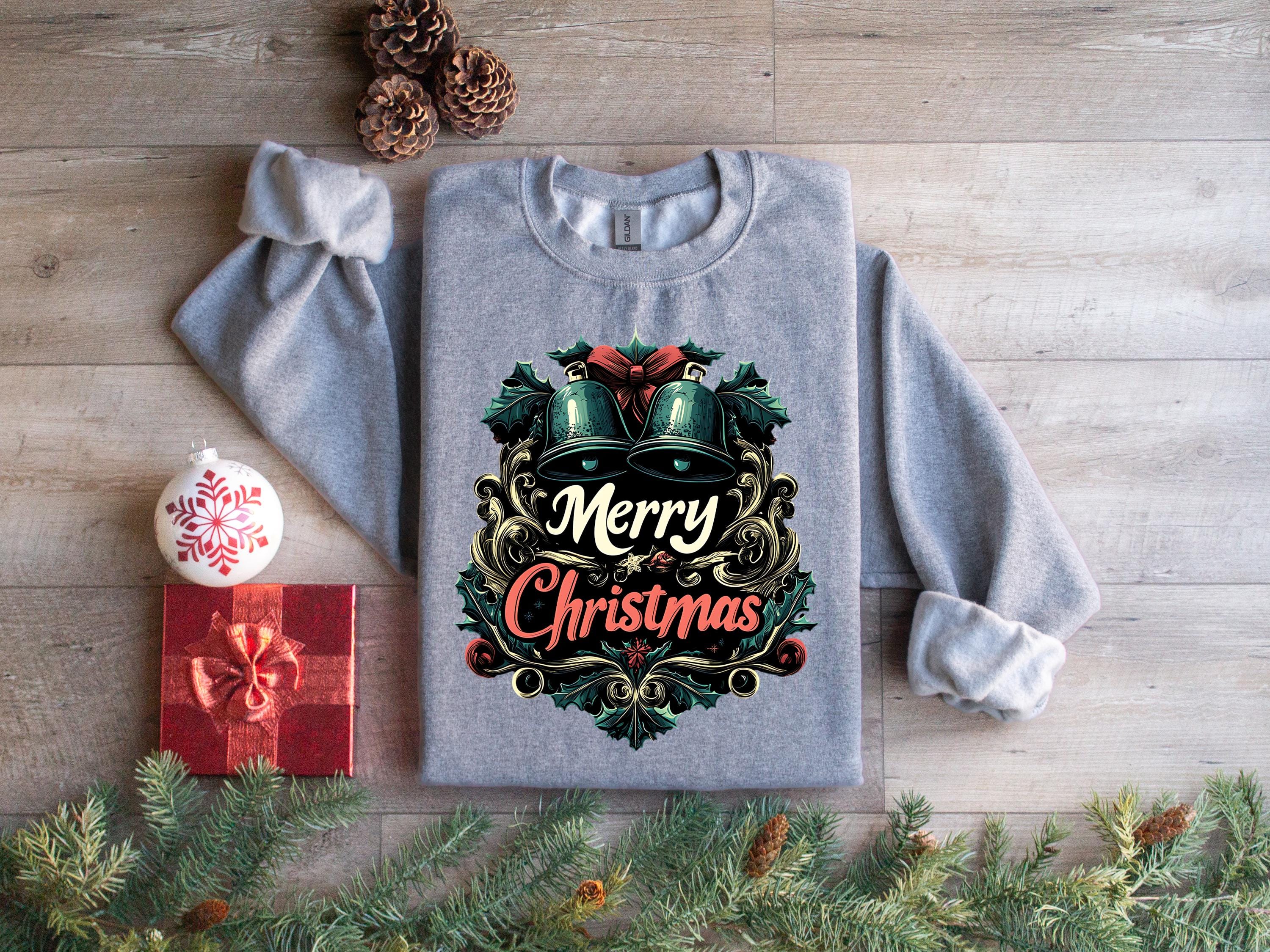 Jingle All the Way: Cozy Christmas Bells Sweatshirt for Festive Celebrations exudes a festive and cheerful vibe, making it perfect for holiday celebrations and gatherings.