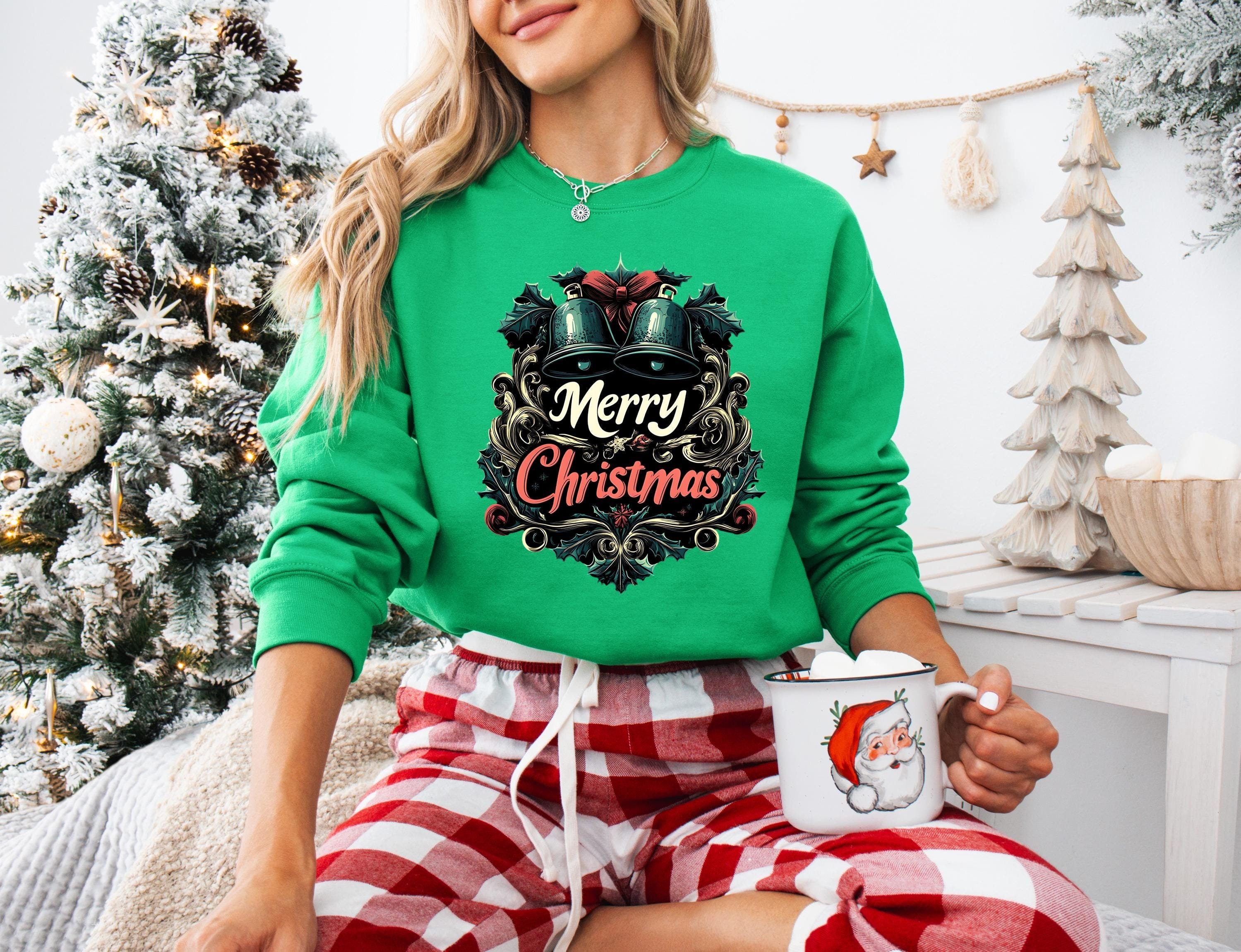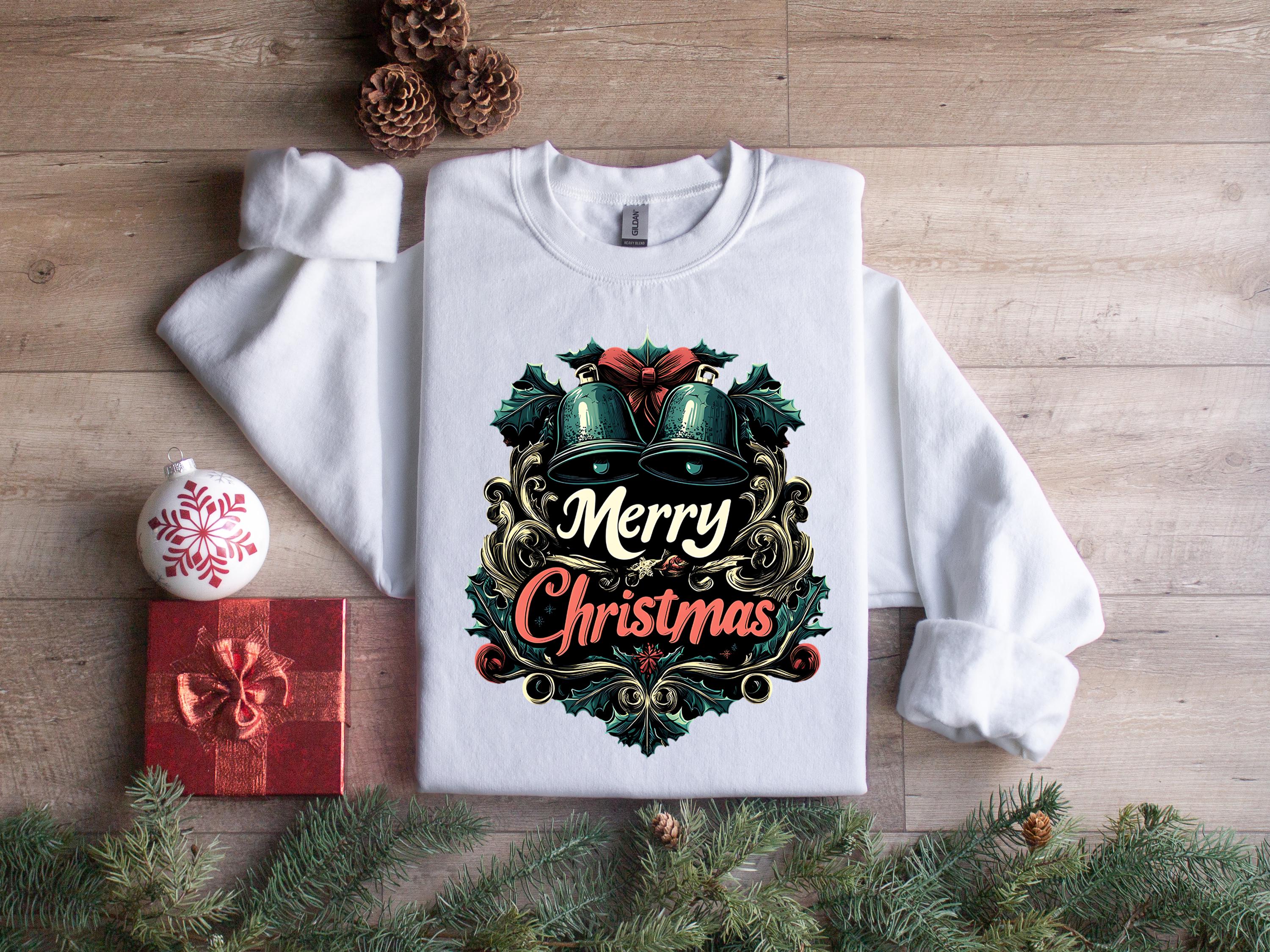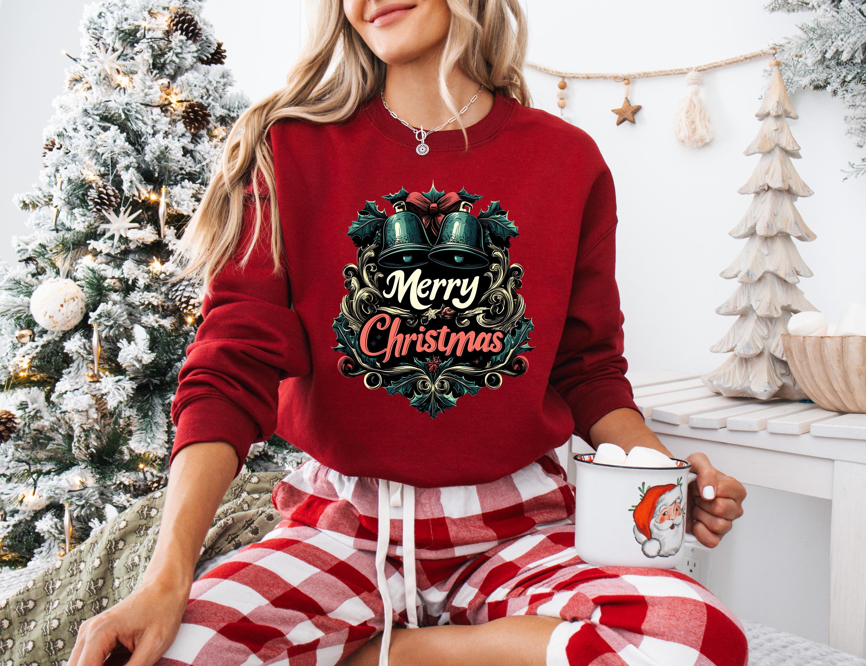 Jingle All the Way: Cozy Christmas Bells Sweatshirt for Festive Celebrations exudes a festive and cheerful vibe, making it perfect for holiday celebrations and gatherings.