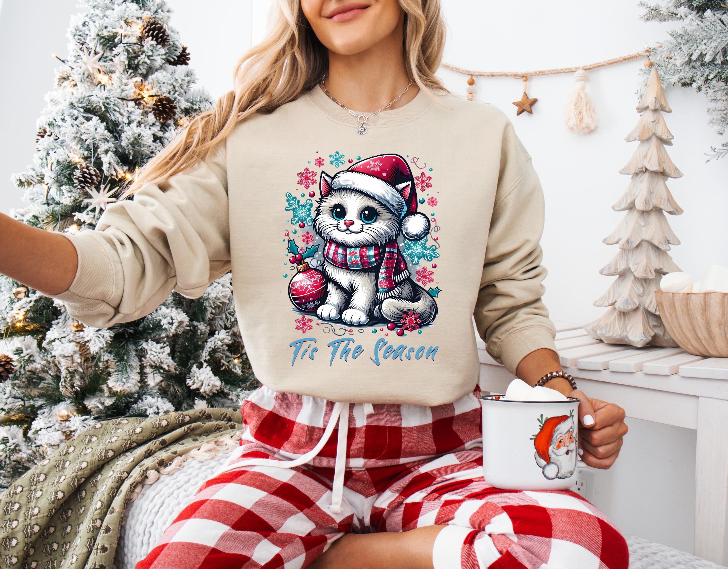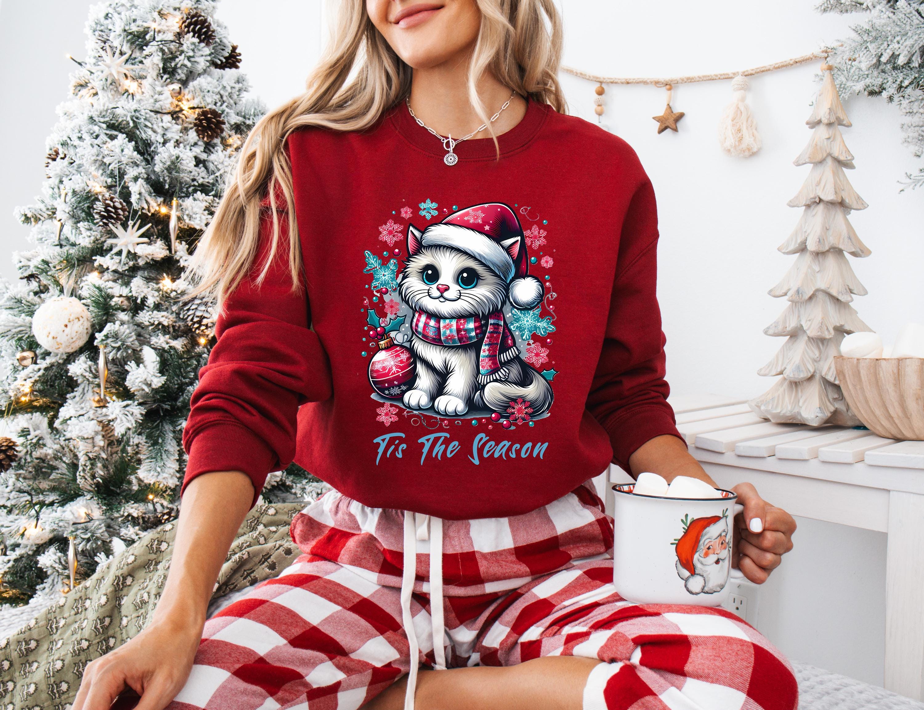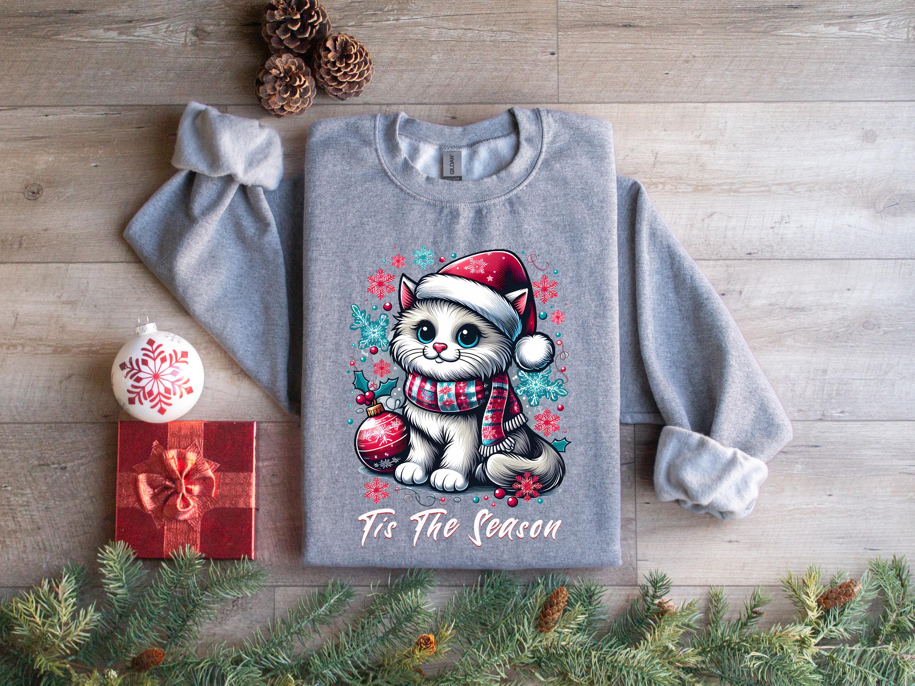 Cozy Christmas Cat Sweatshirt - Purrfect Holiday Sweater for Families that exudes a festive and cheerful vibe, making it perfect for holiday celebrations and gatherings.