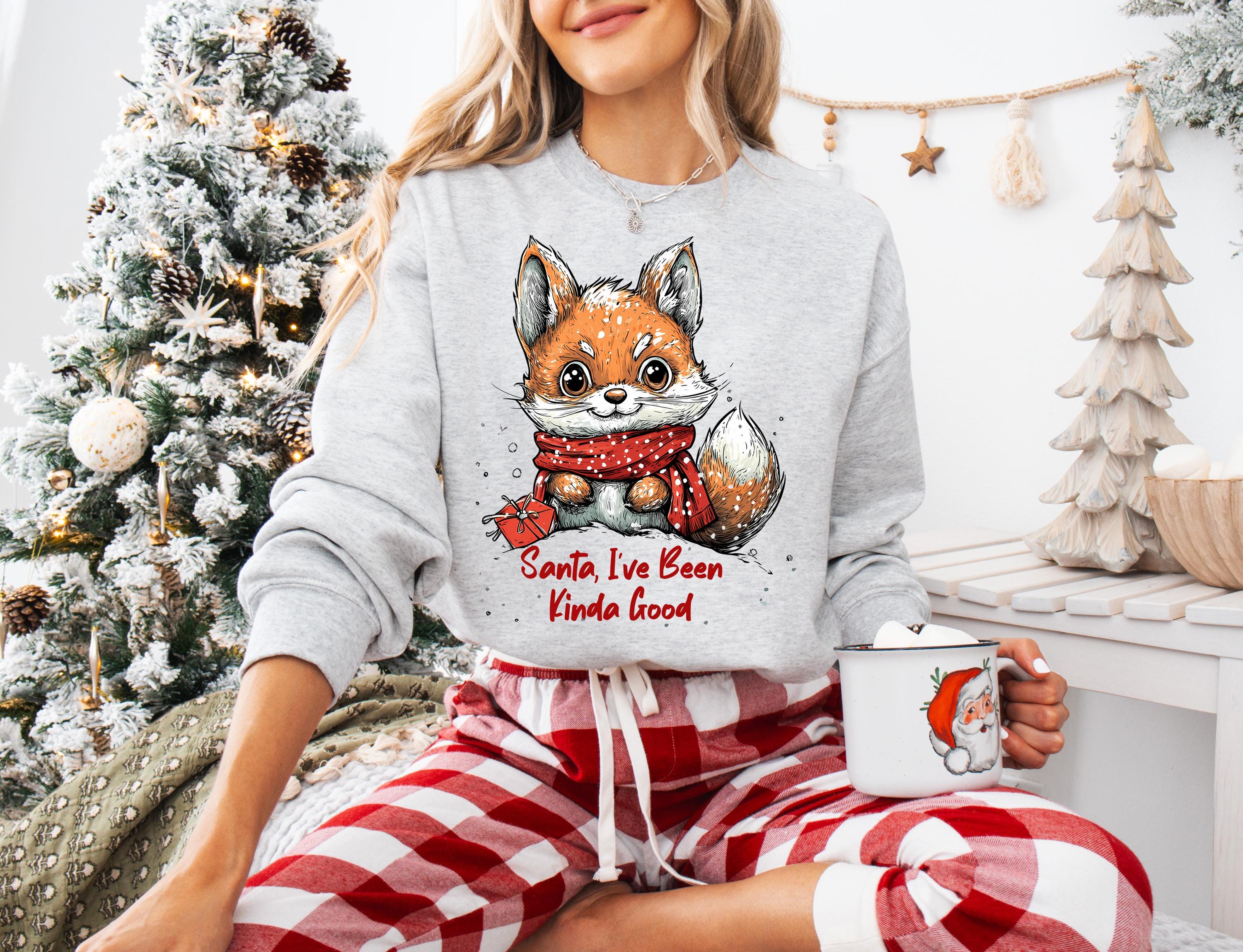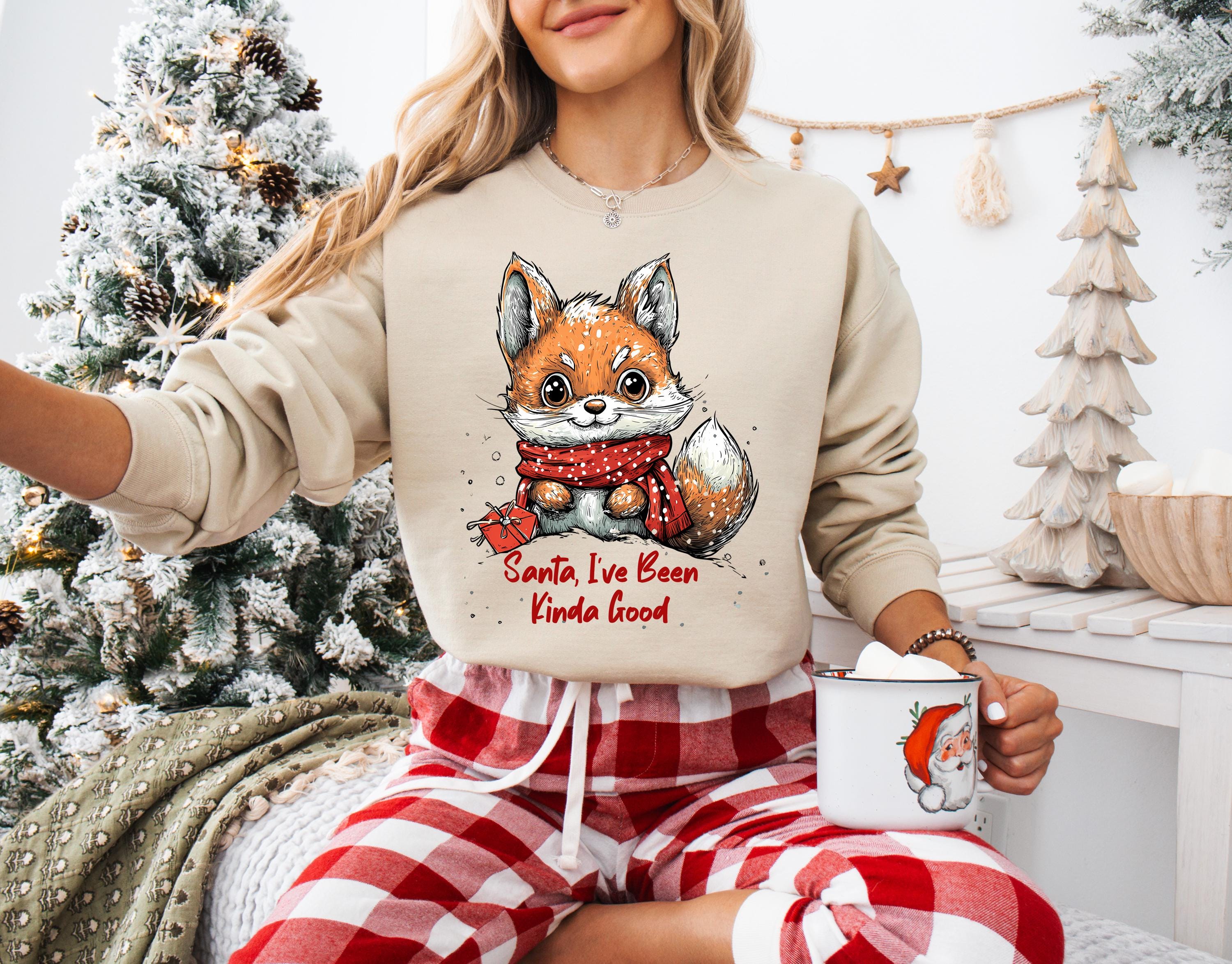 The "Santa, I've Been Kinda Good" Christmas sweatshirt radiates festive cheer, making it the perfect choice for holiday celebrations and gatherings.