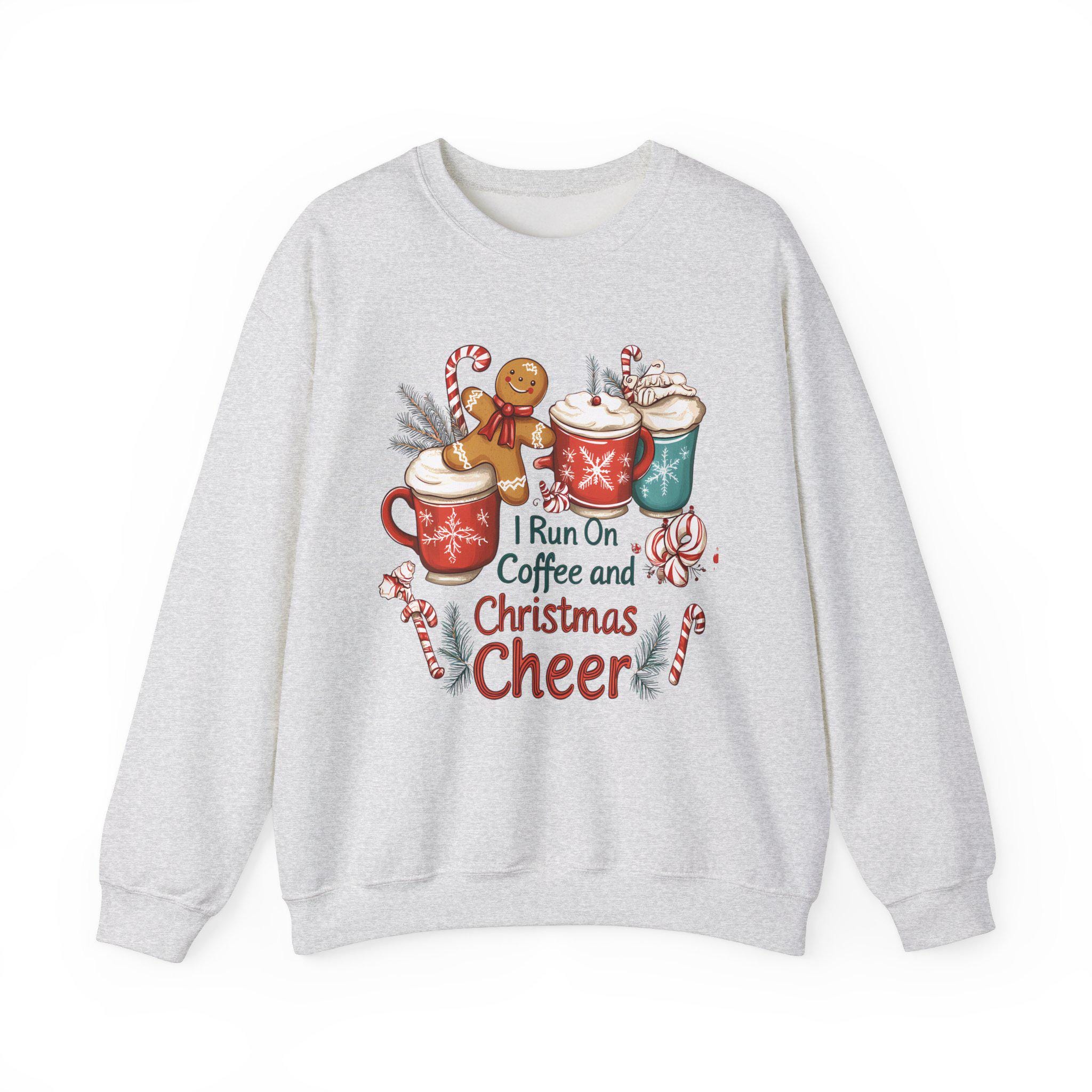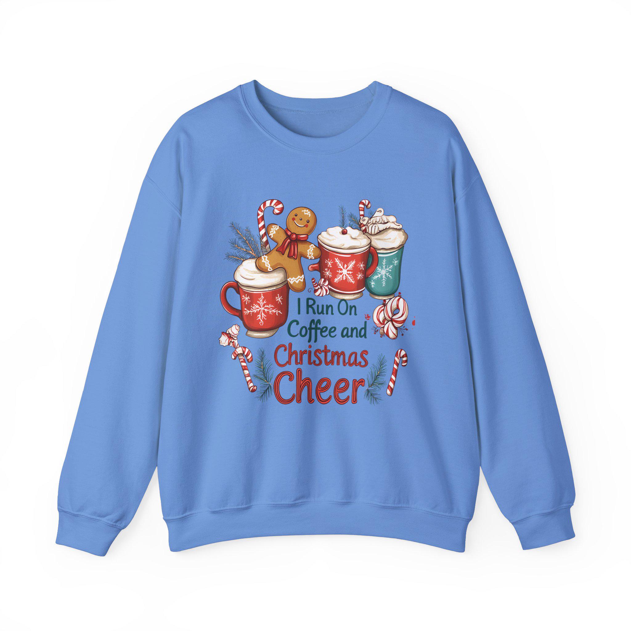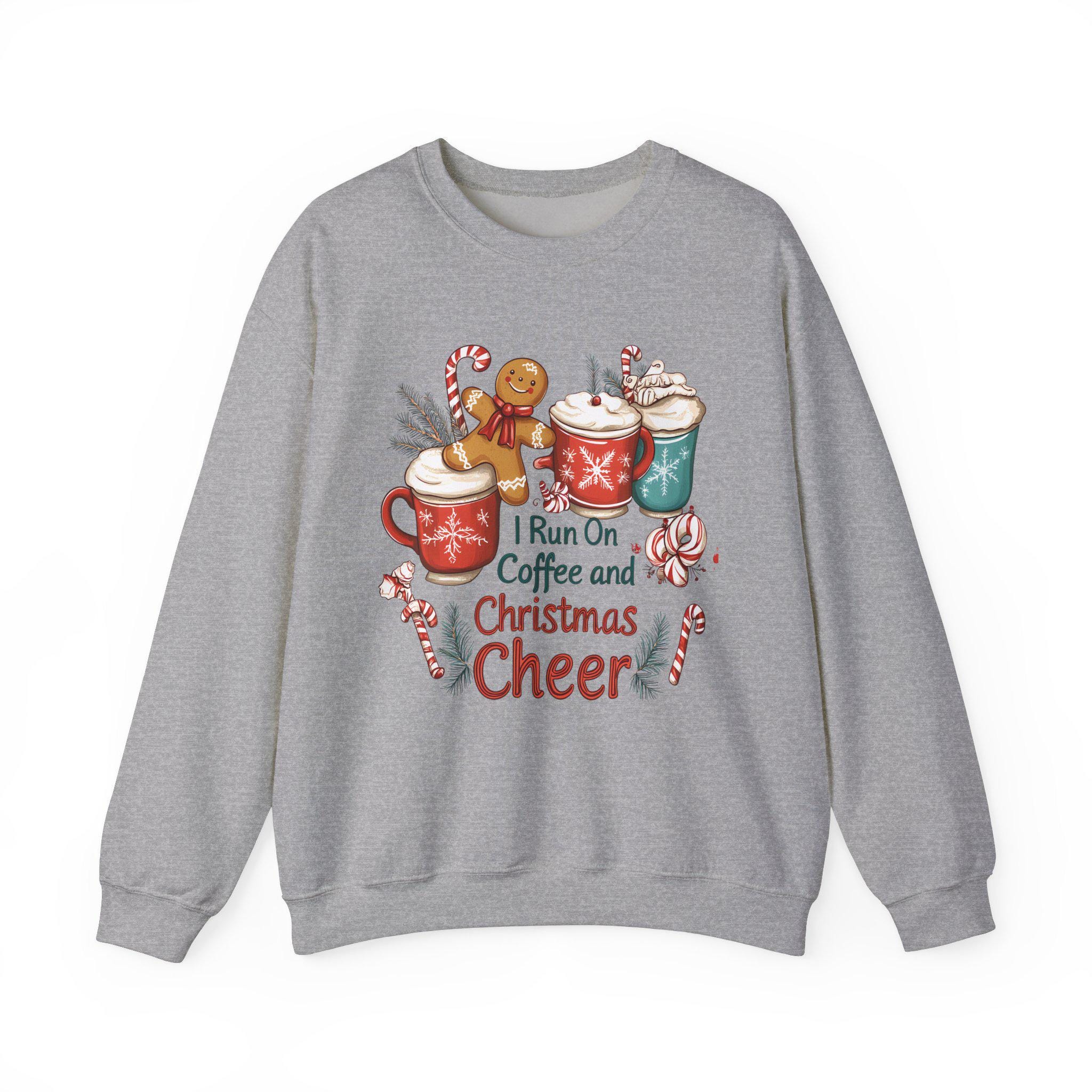 Stay cozy and festive during the holiday season with this 'I Run On Coffee and Christmas Cheer Sweatshirt.