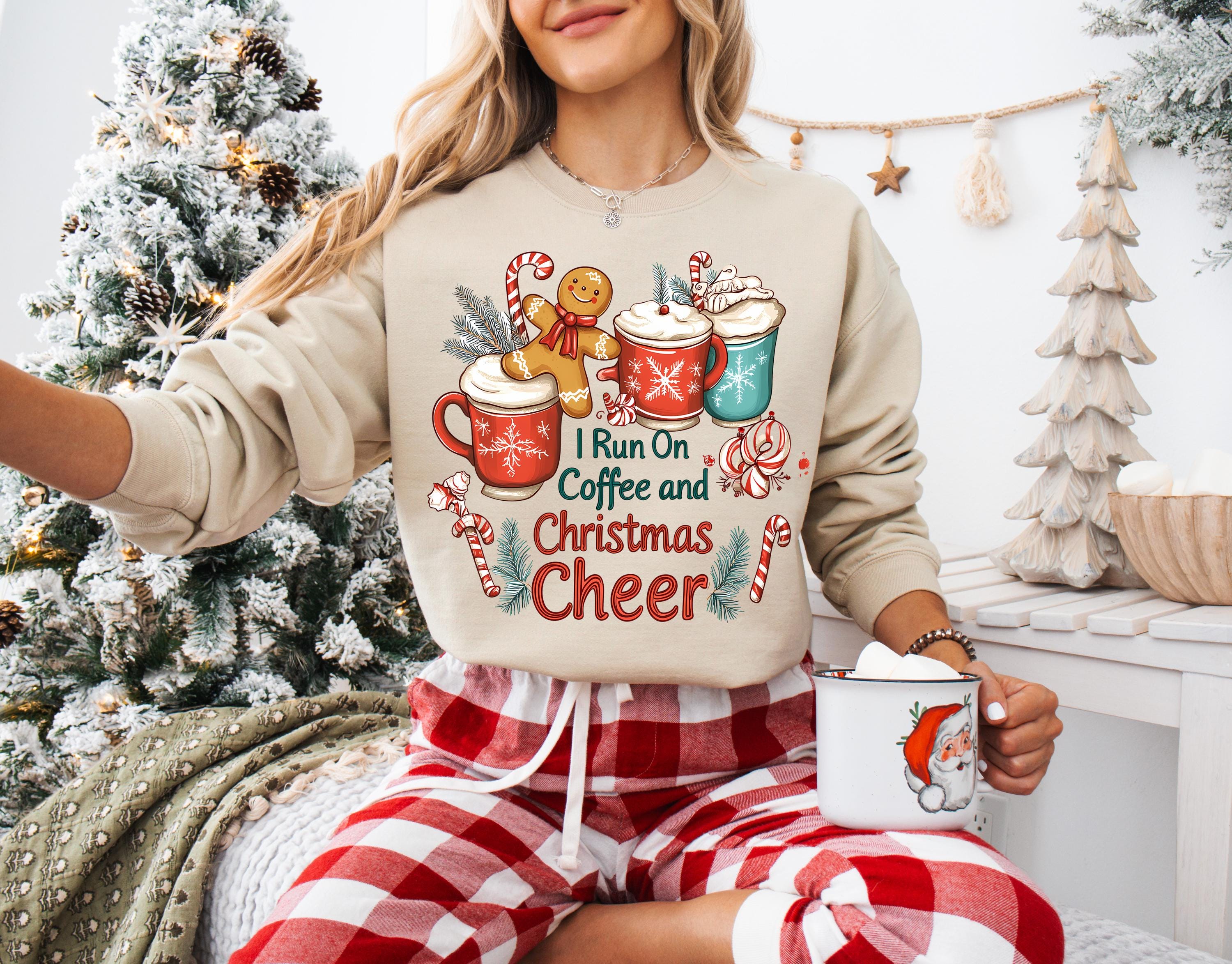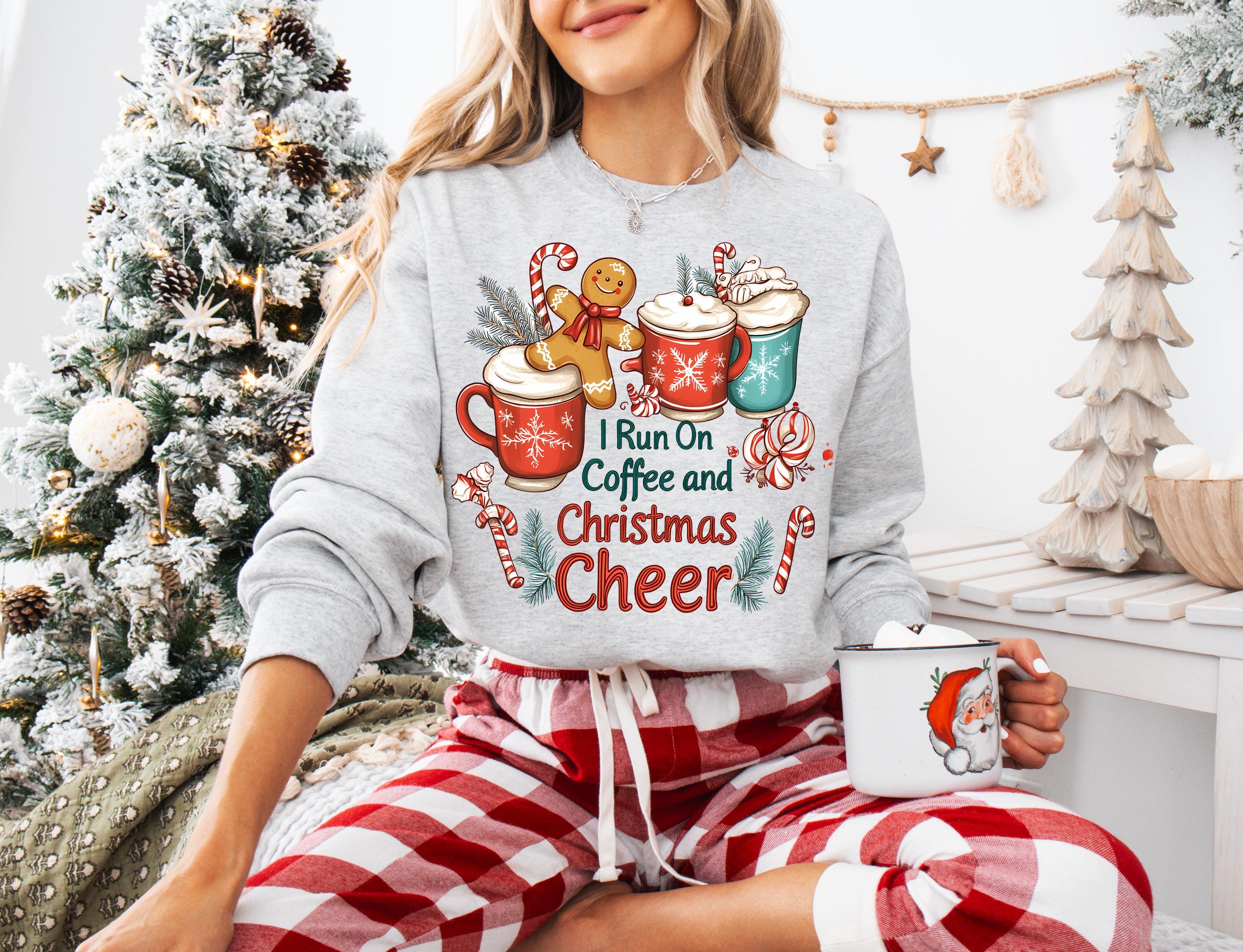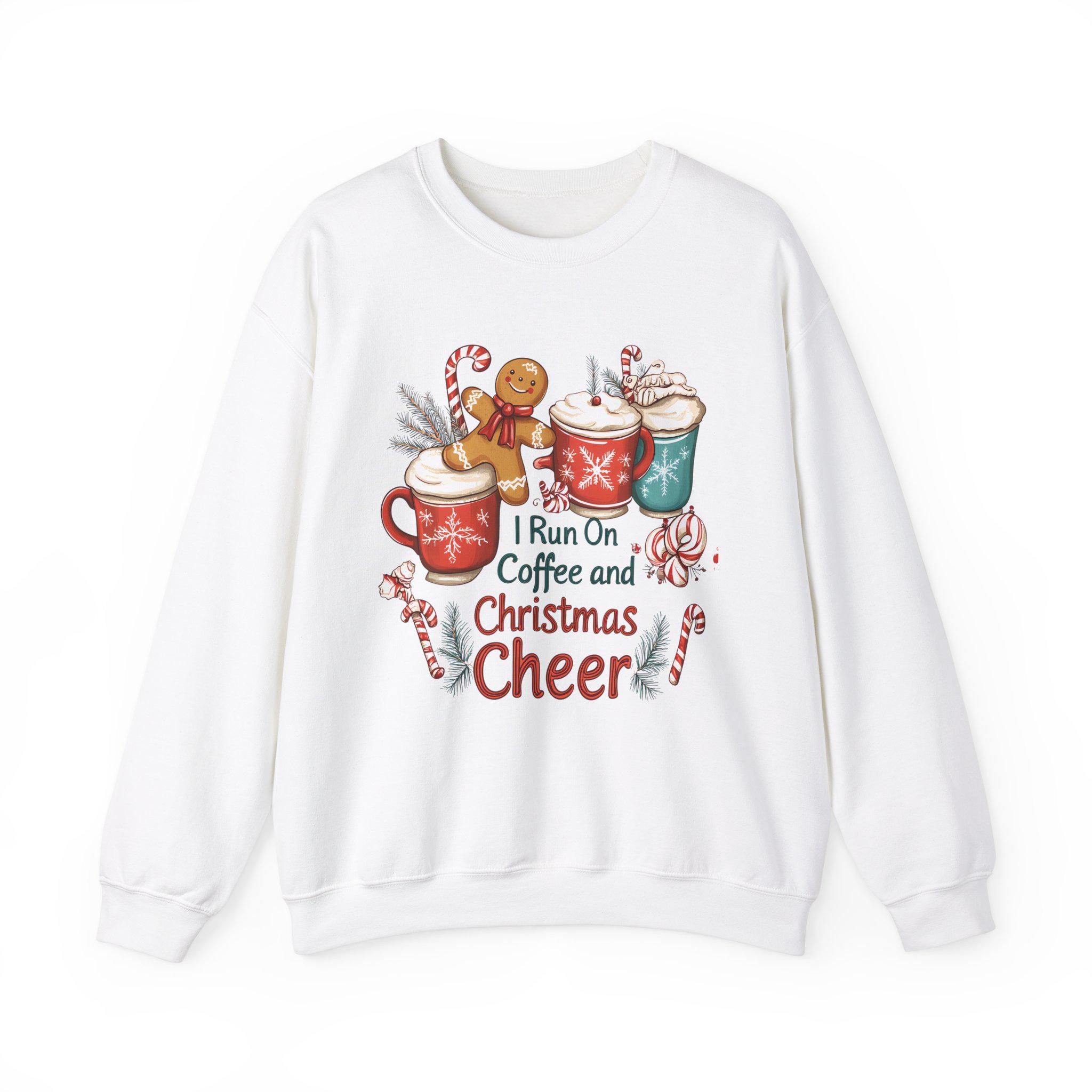 Stay cozy and festive during the holiday season with this 'I Run On Coffee and Christmas Cheer Sweatshirt.