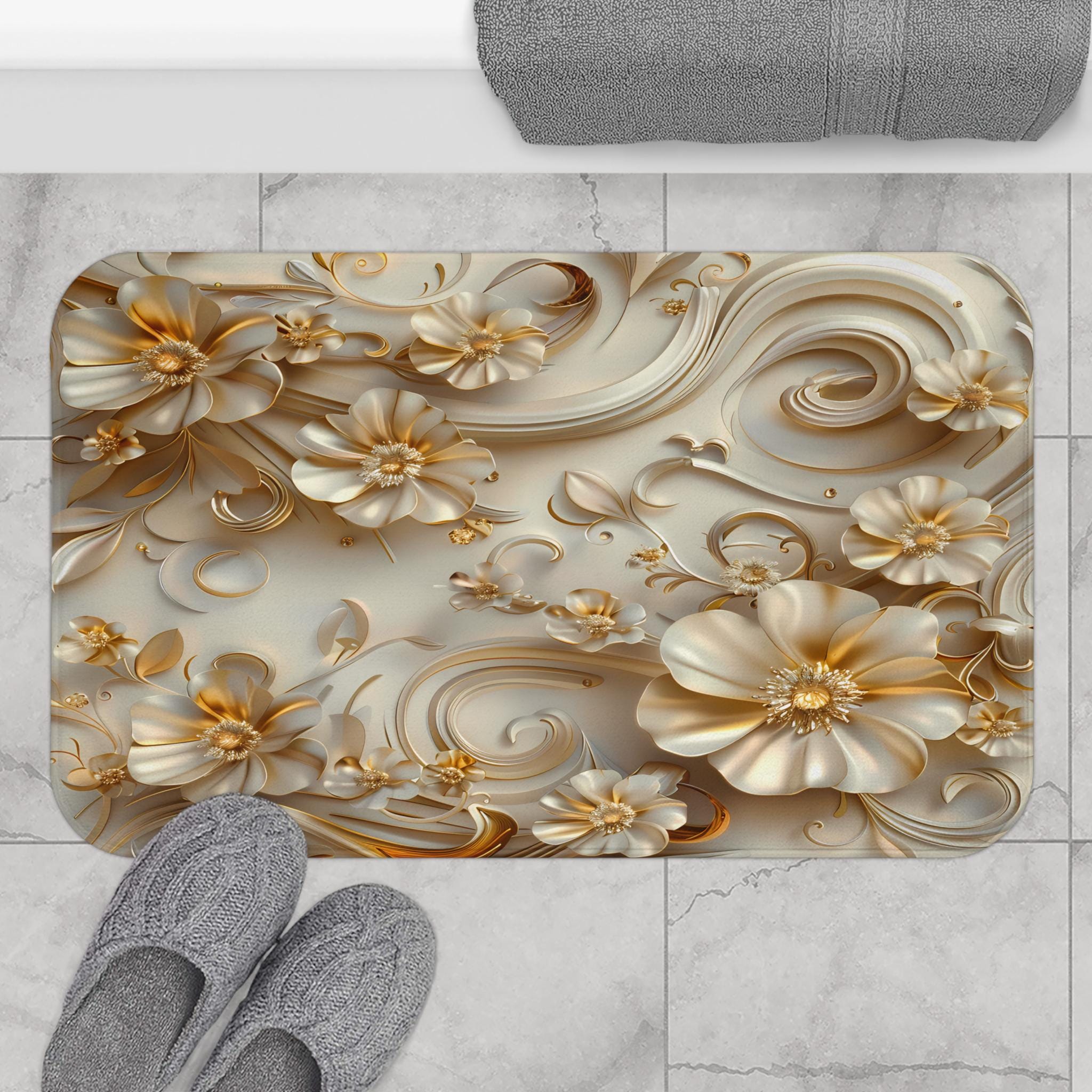 Blossoming Bliss Light Blue 3D Flower Bath Mat is designed to elevate your bathroom experience. The anti-slip backing ensures a secure placement and reduces the risk of slipping for added safety.