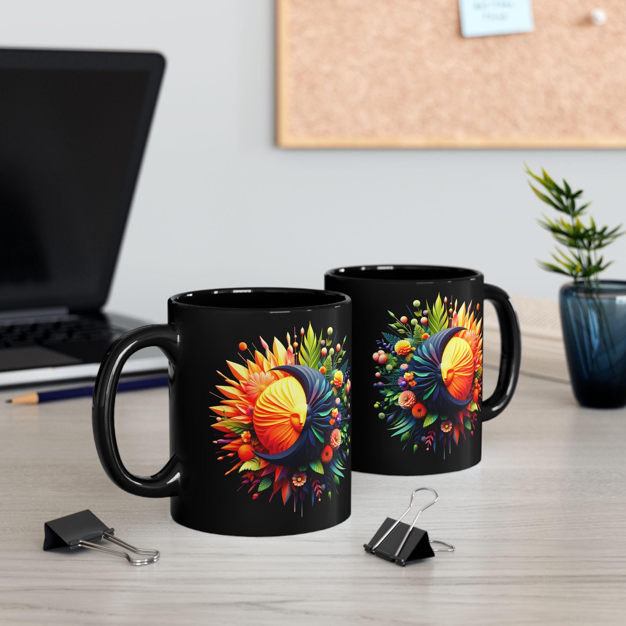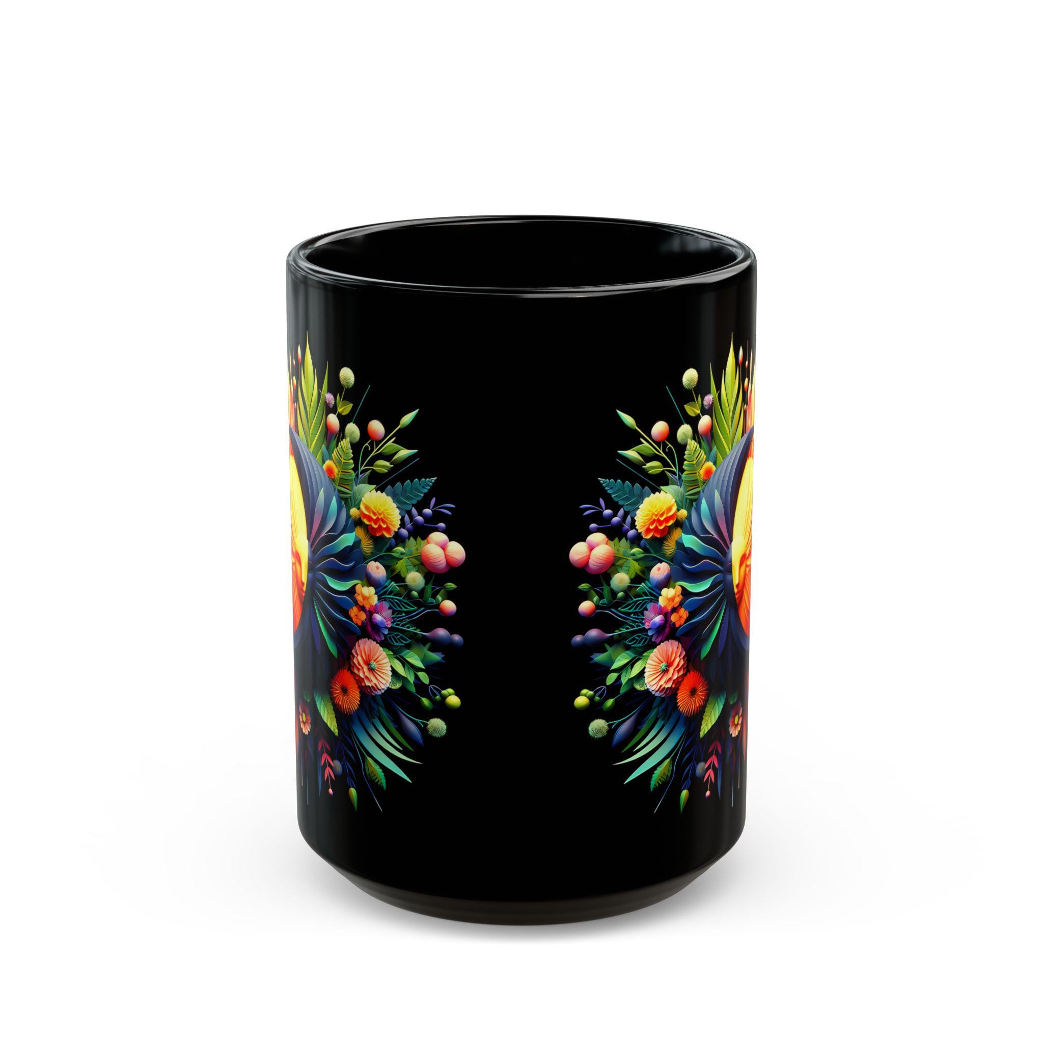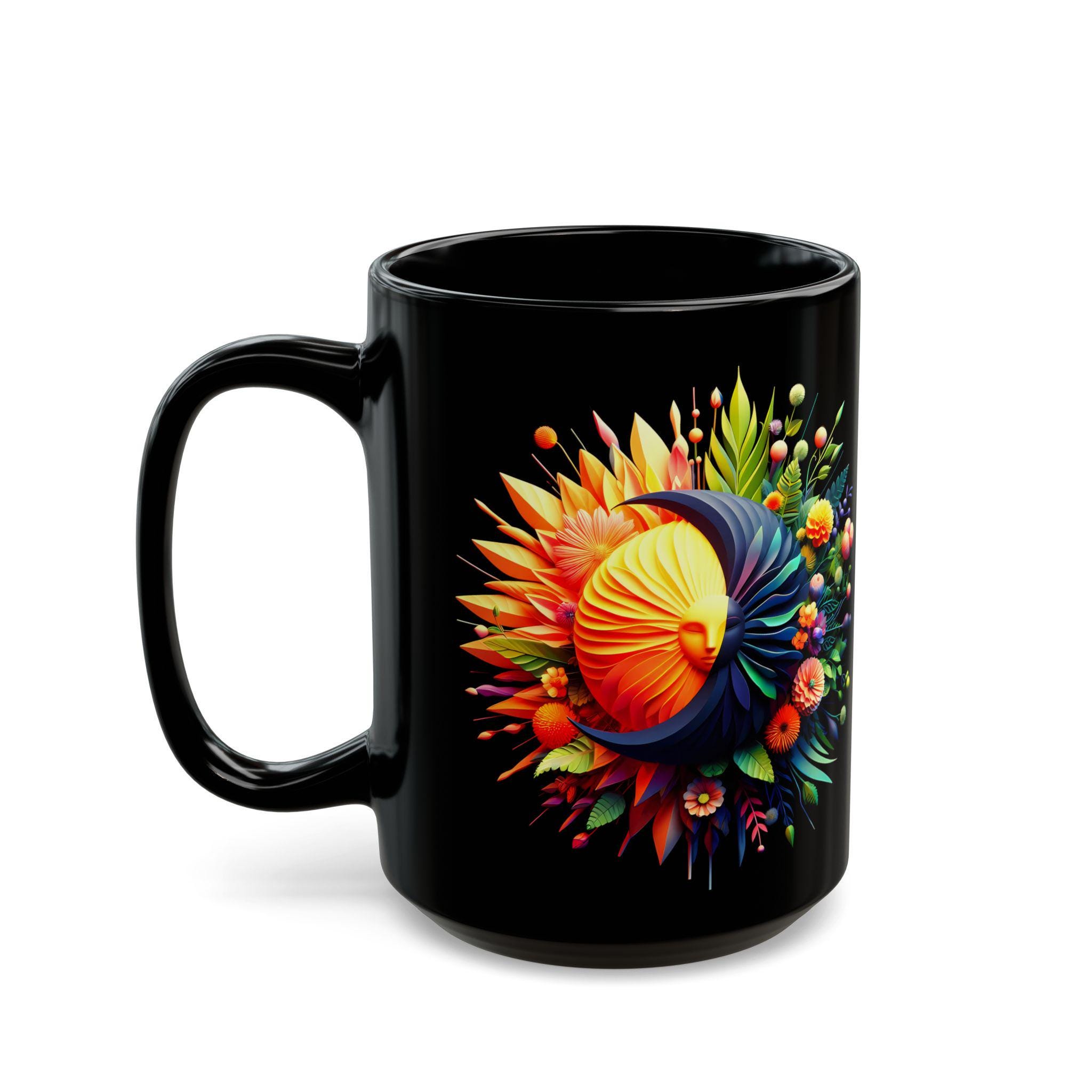 This Celestial Bloom Mug features a harmonious design of the sun and moon with vibrant floral accents. Perfect for those who appreciate celestial themes and nature-inspired artwork.