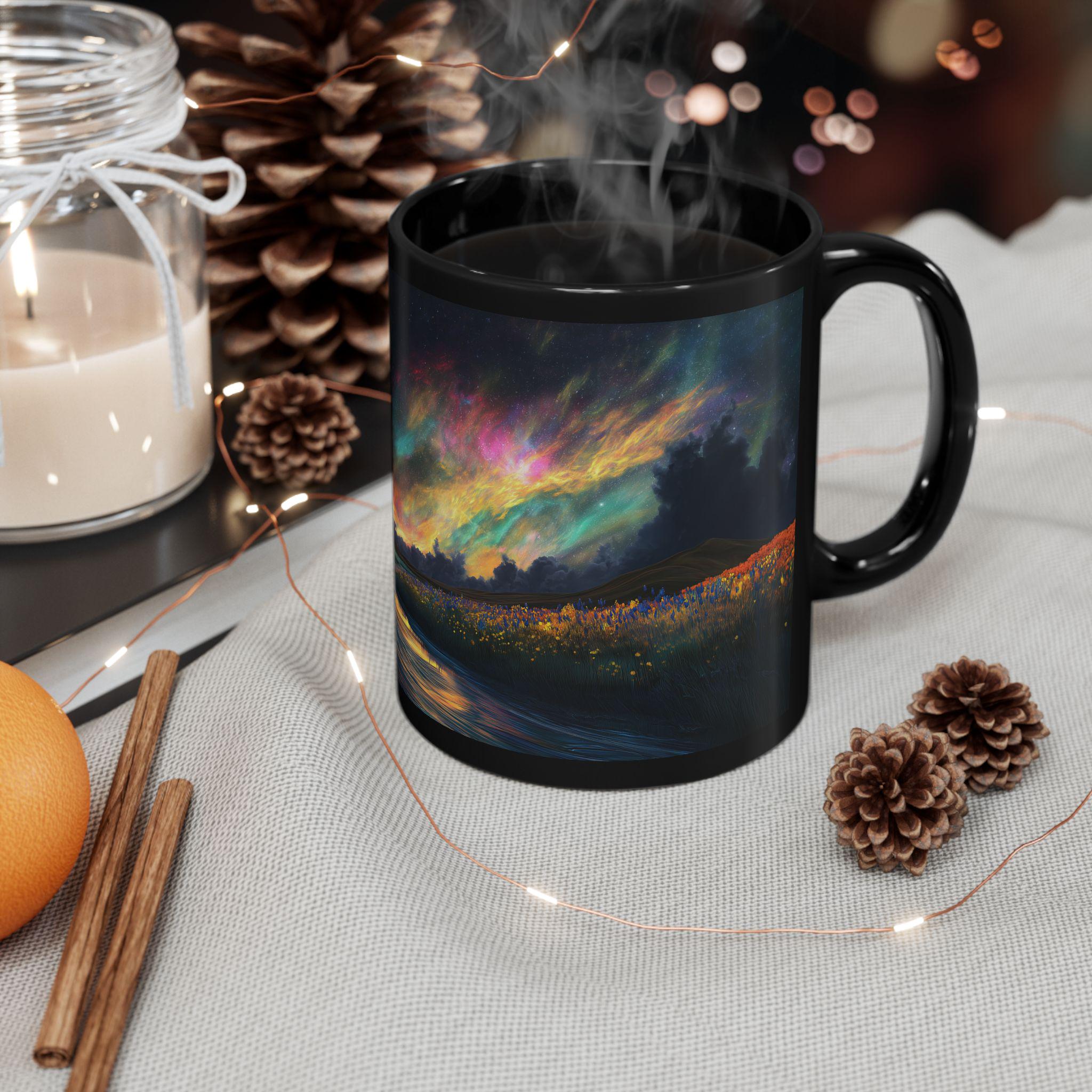 Aurora Dreams Mug features a stunning Northern Lights and Starry Sky design, perfect for those who love nature and dreamy landscapes. This mug is ideal for cozy nights at home or early mornings enjoying a hot beverage. It makes a great gift for astronomy enthusiasts, nature lovers, and anyone who appreciates beautiful art.