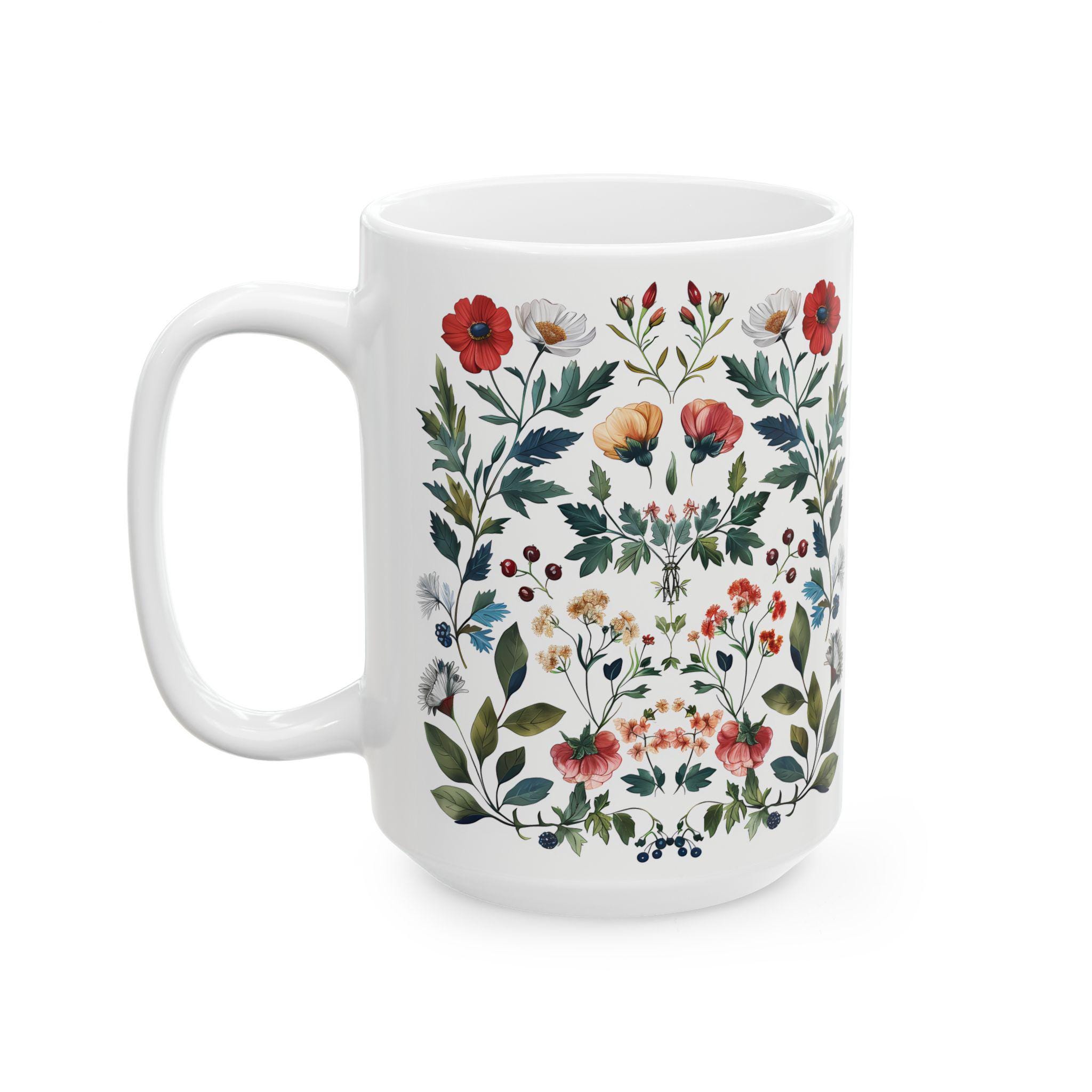 The Garden Symphony Mug features beautifully balanced flower and leaf patterns, creating a serene and harmonious vibe. Perfect for nature lovers and those who appreciate elegant designs, this mug is ideal for enjoying your favorite hot beverages. Great for gifting on Mother's Day, birthdays, or as a housewarming present.